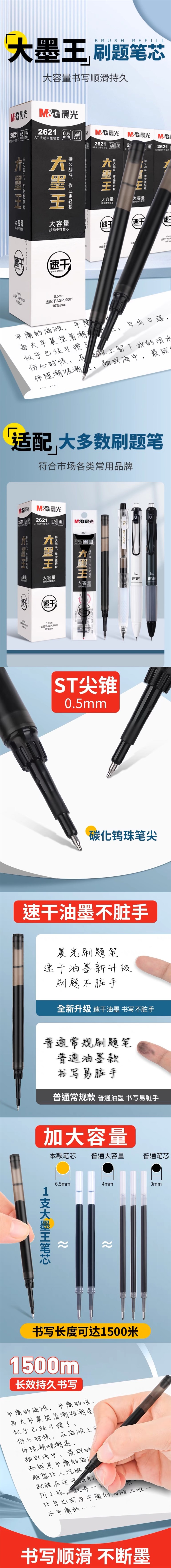 晨光大墨王笔芯 按动替芯ST头速干中性笔笔芯 2621签字笔0.5黑J9001考试用 1支