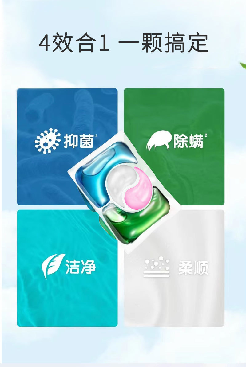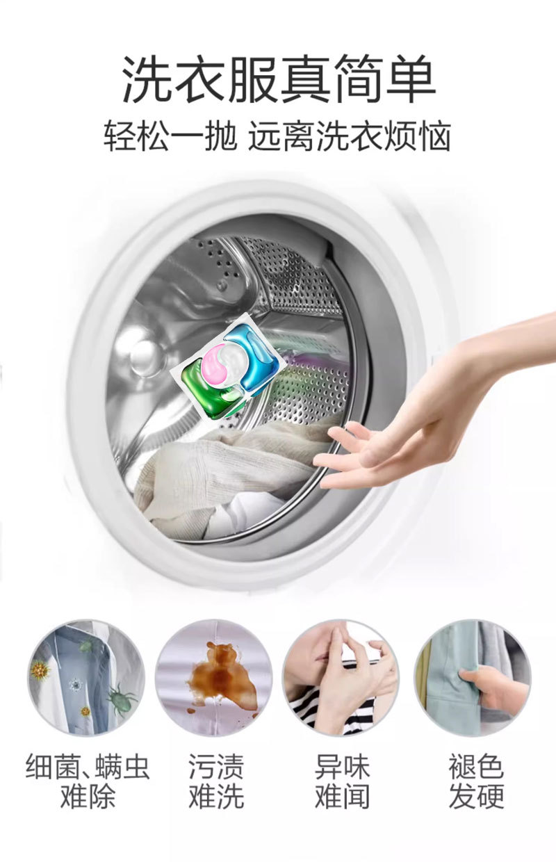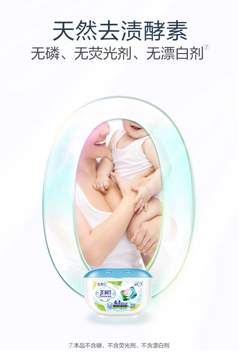 【AIBICHEN 茶树精华洗衣凝珠】4效合一 30S速溶 专业配方 快速分解去污渍 抑菌 除螨 柔顺 护色 柔软 持久留香
