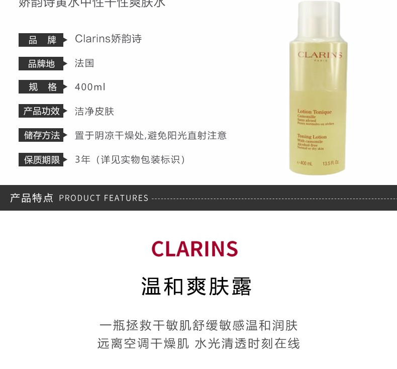CLARINS娇韵诗 温和爽肤水黄水 中/干性肤质 400ML 法国
