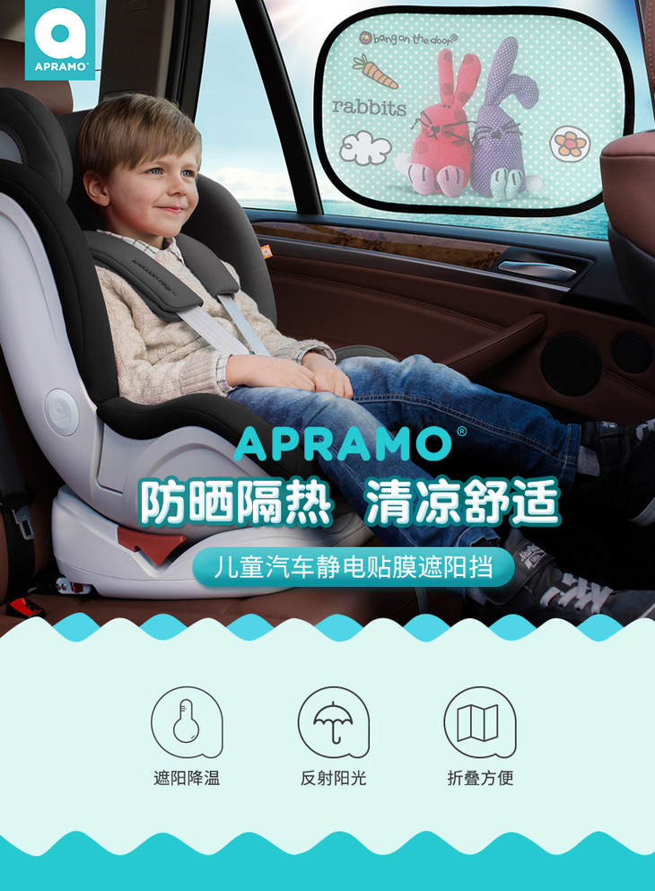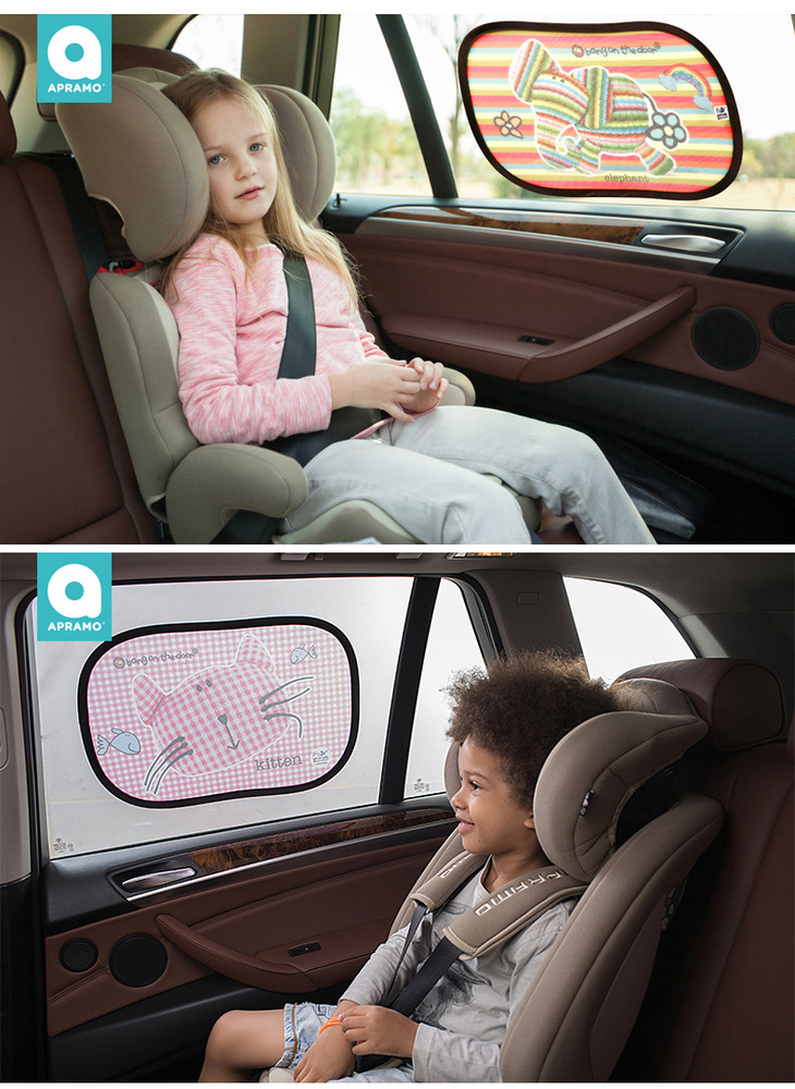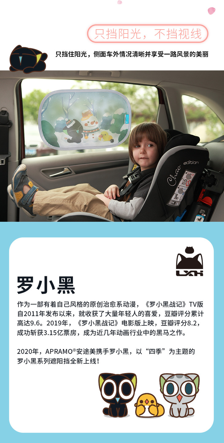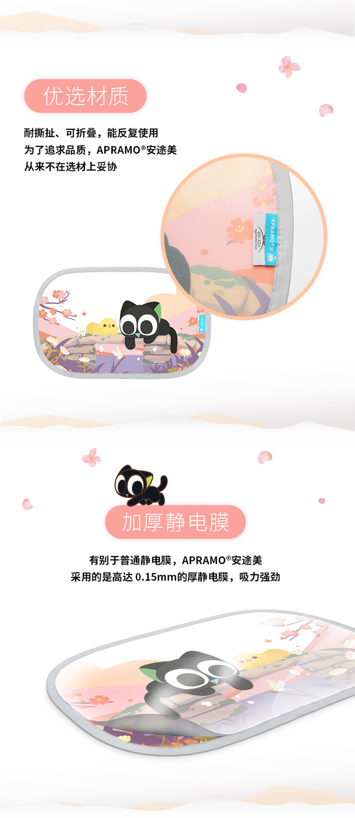 【防晒隔热,清凉舒适】英国APRAMO安途美罗小黑合作款联名款卡通无痕静电贴膜吸附遮阳挡板避光2片装一对婴儿童夏季汽车载侧窗垫挡板男女孩中小学生宝宝降温可折叠避光防紫外线