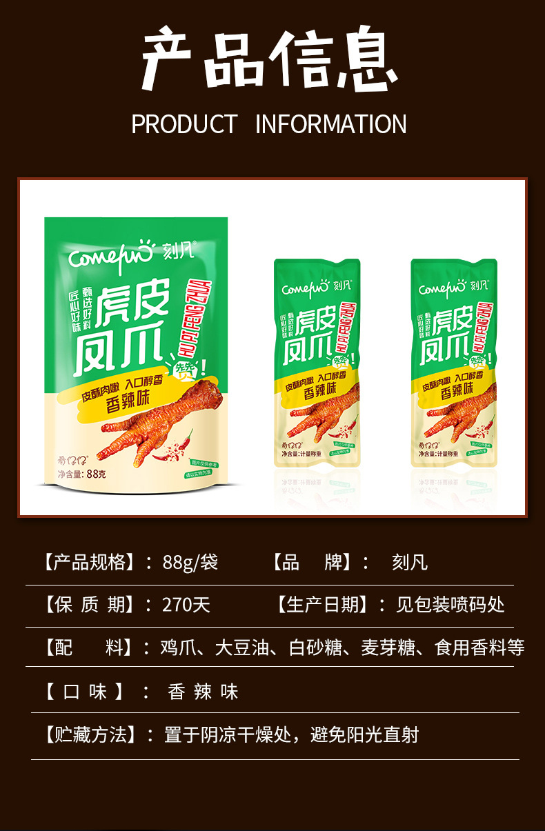 刻凡虎皮凤爪88g 小吃休闲零食即食辣卤味熟食真空