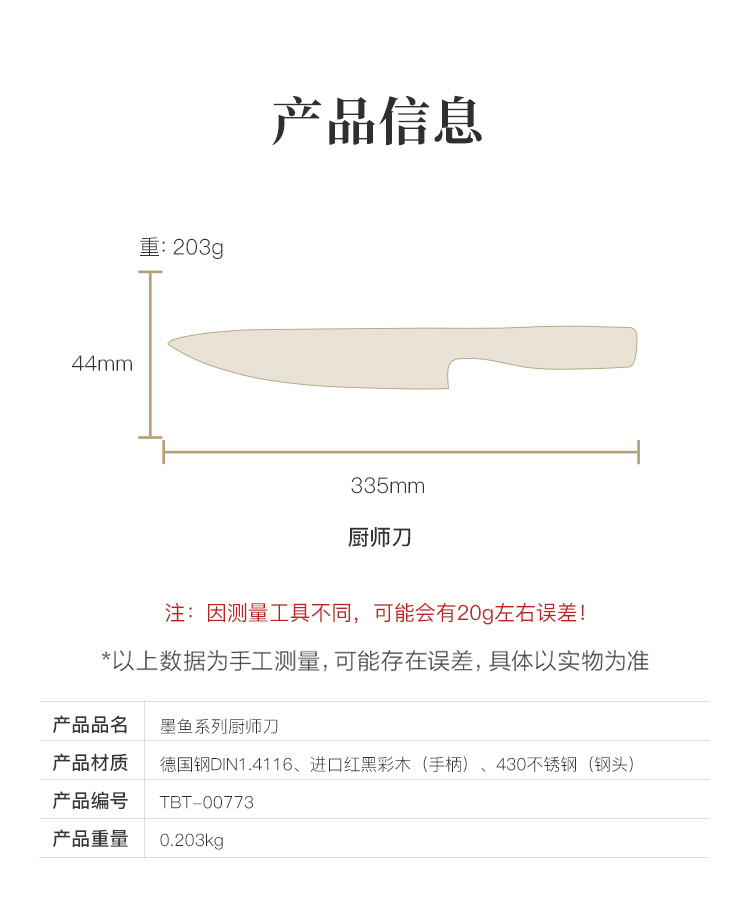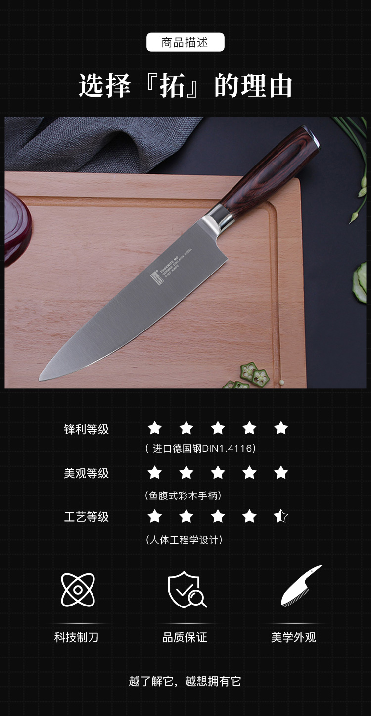 拓 墨鱼系列厨师刀德国进口钢材切片刀多功能刀