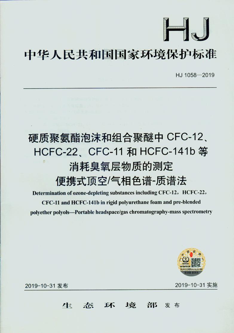 HJ 1058-2019 硬质聚氨酯泡沫和组合聚醚中CFC-12、HCFC-22、CFC-11和HCFC-141b等消耗臭氧层物质的测定135111793