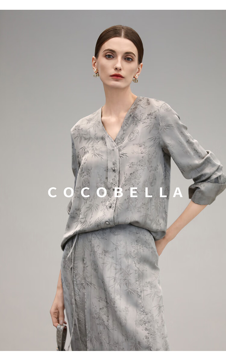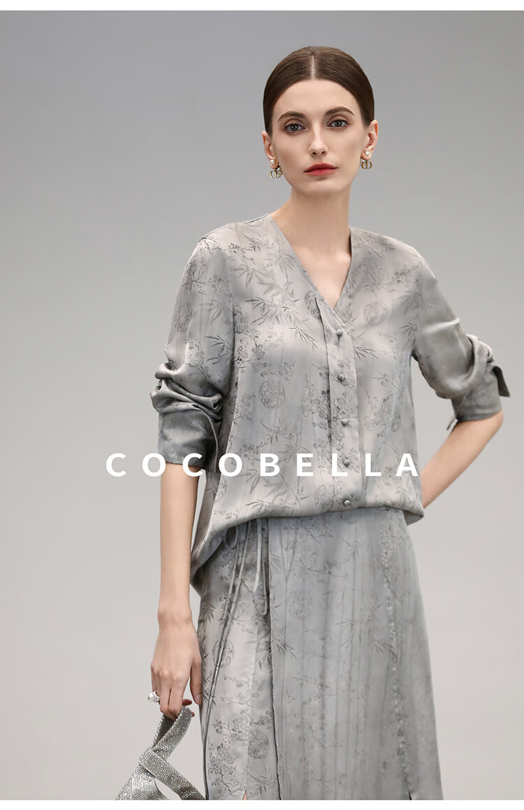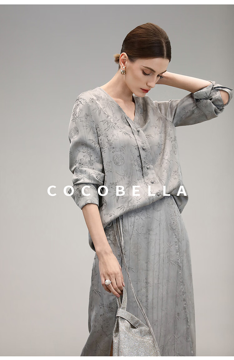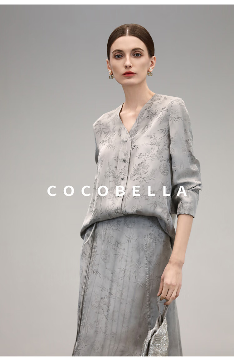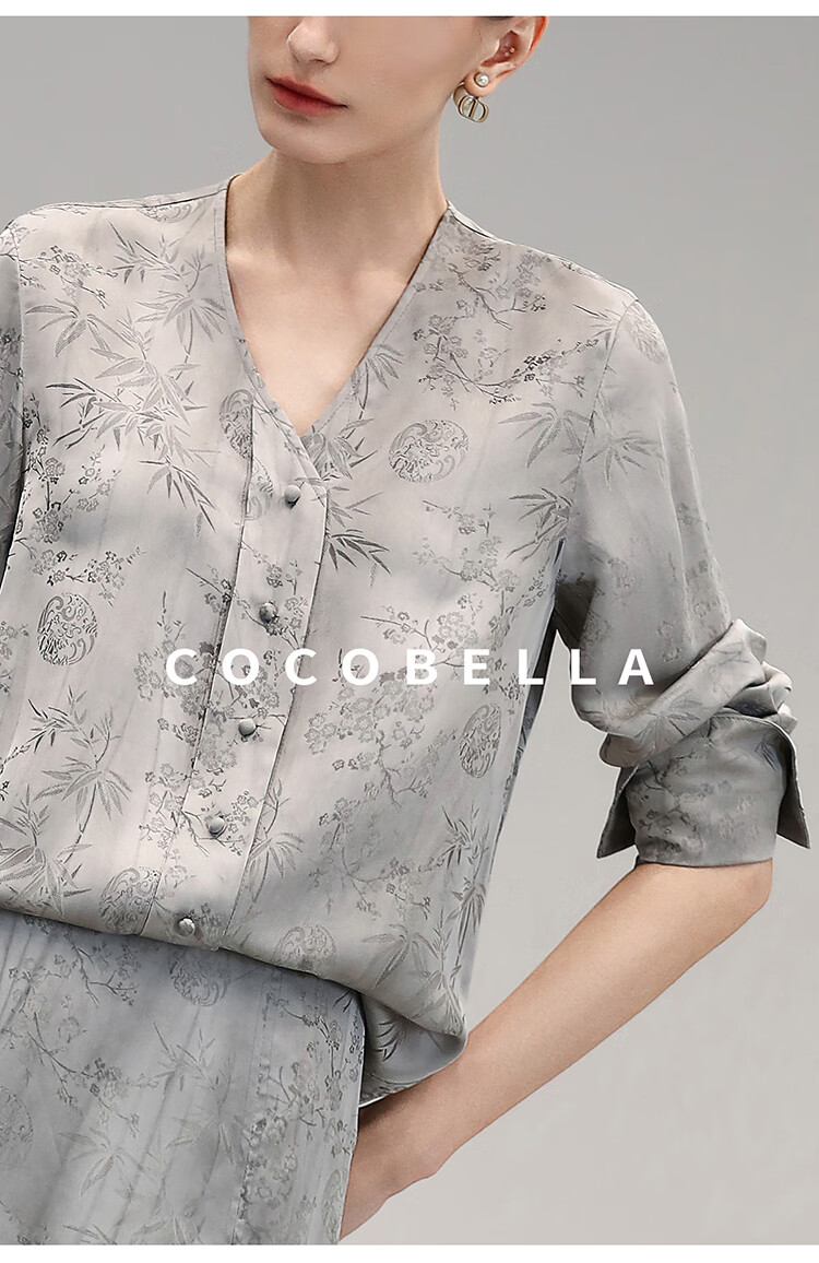 COCOBELLA新中式人丝提花炒色衬衫女丝光质感国风衬衣SR0028-2