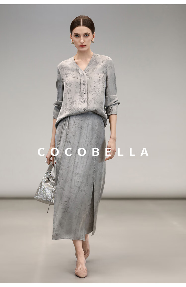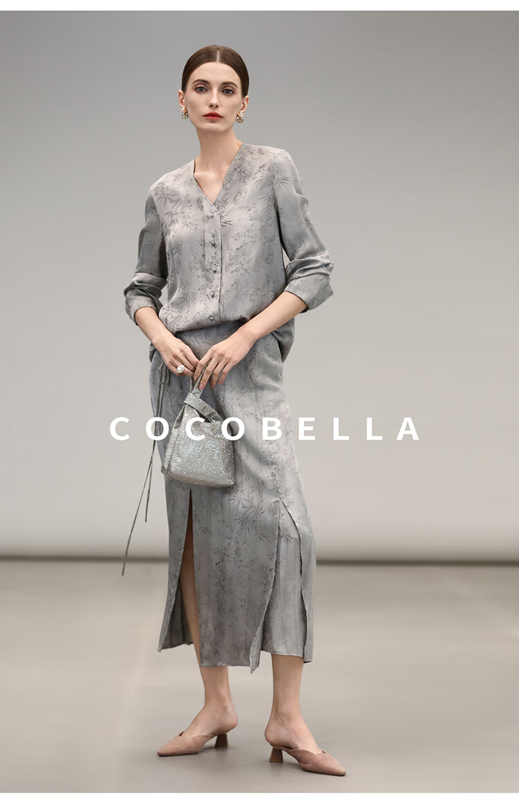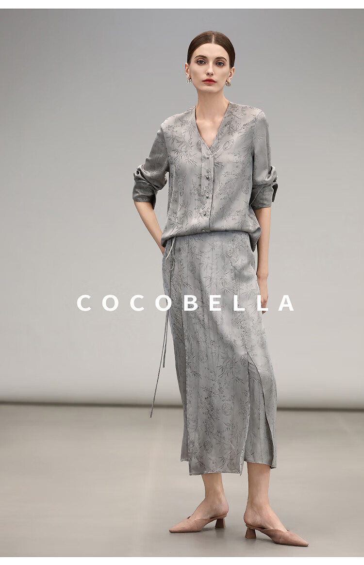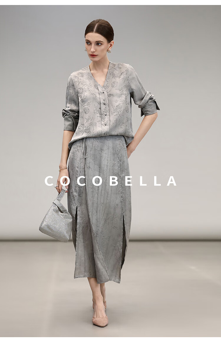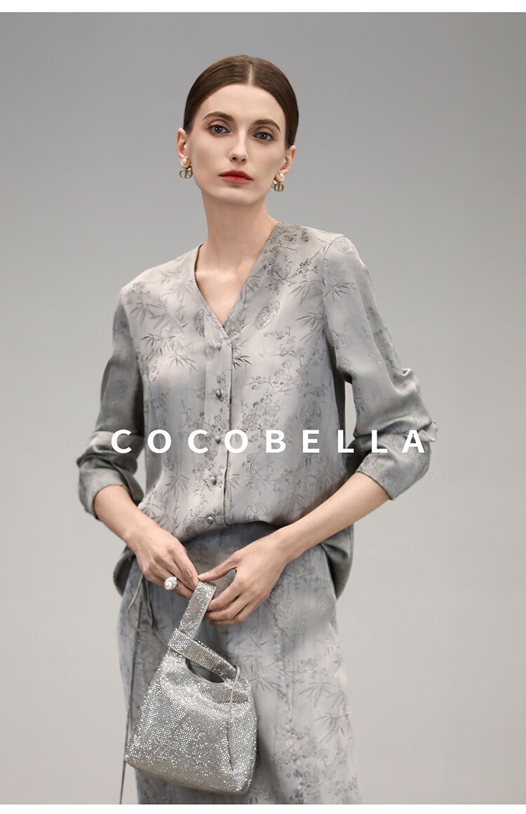 COCOBELLA新中式人丝提花炒色衬衫女丝光质感国风衬衣SR0028-2