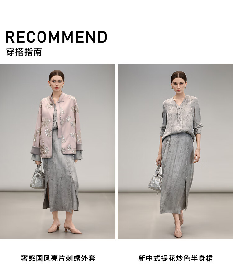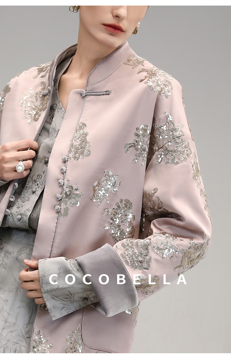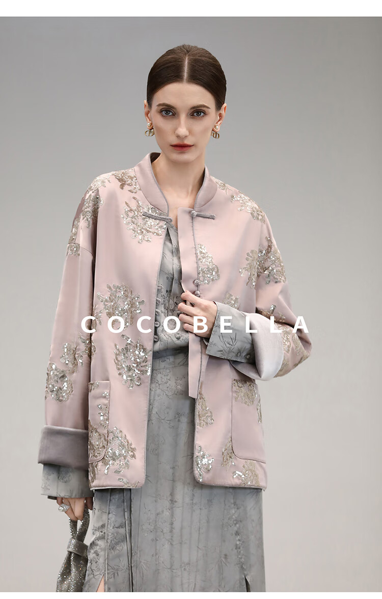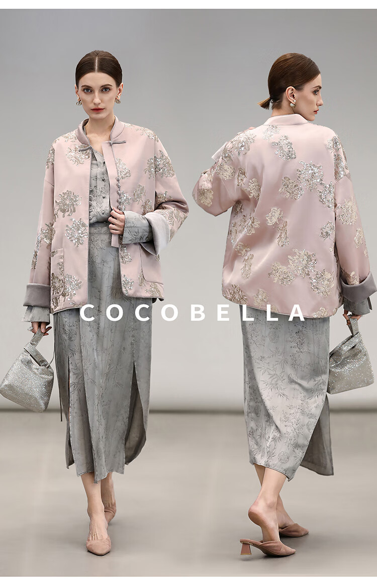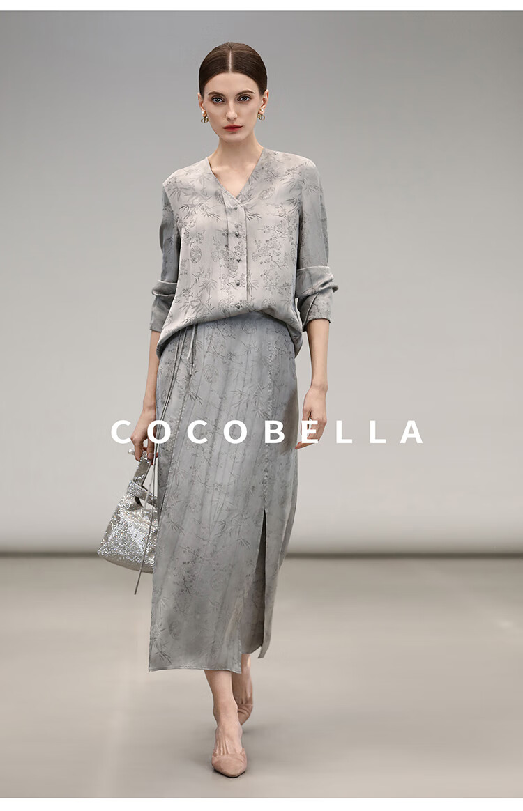 COCOBELLA新中式人丝提花炒色衬衫女丝光质感国风衬衣SR0028-2