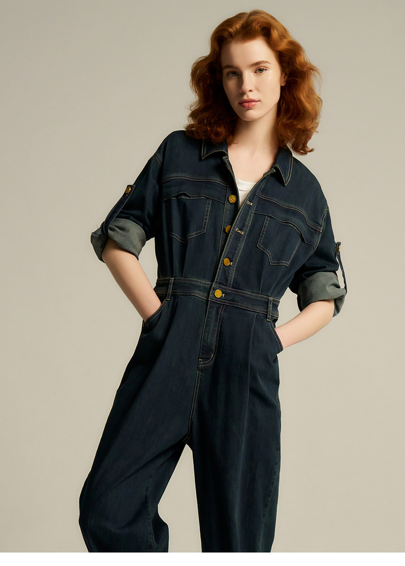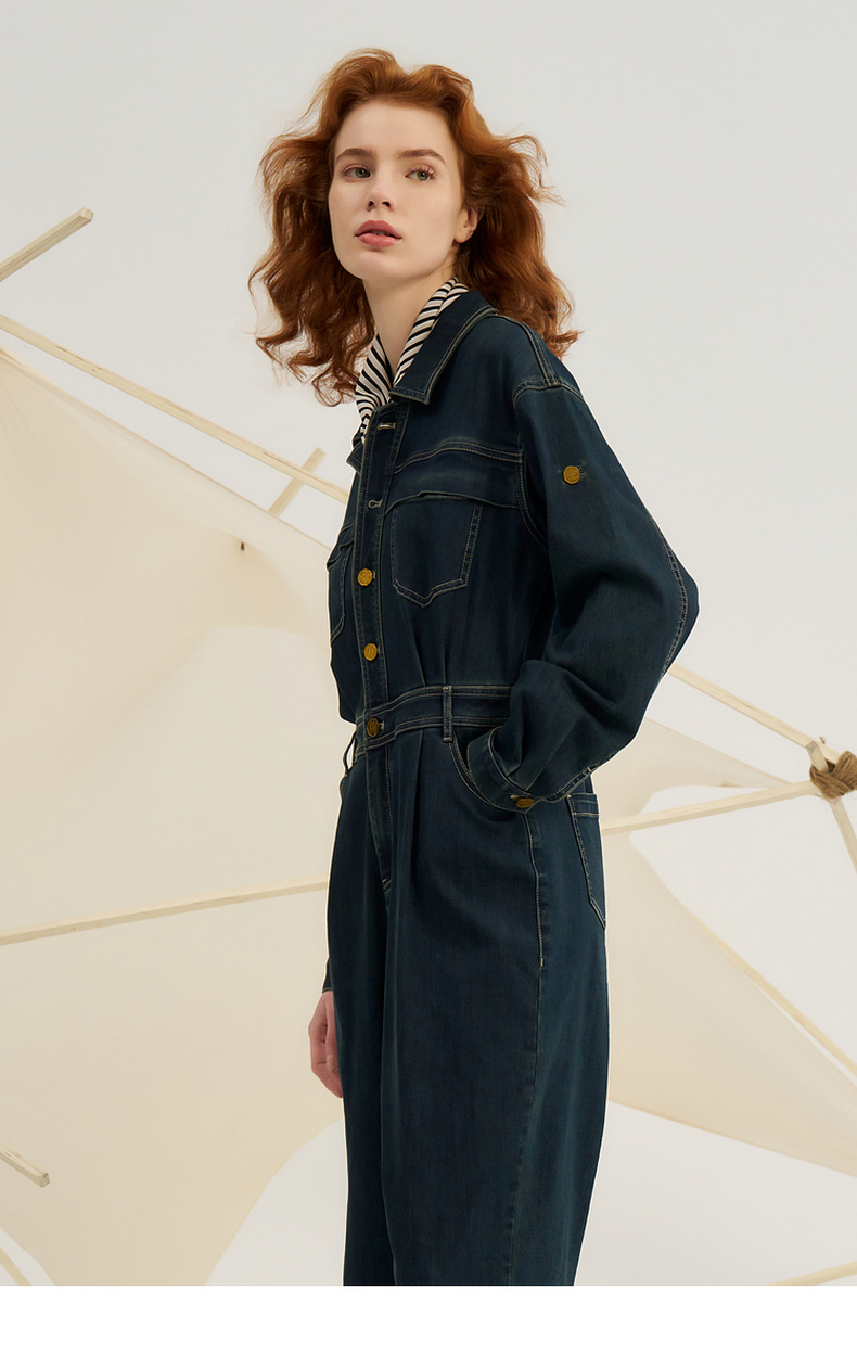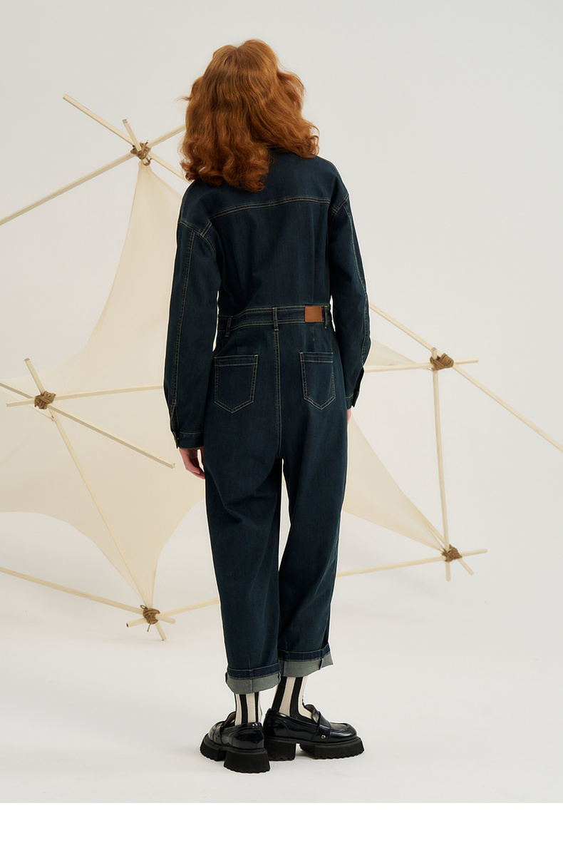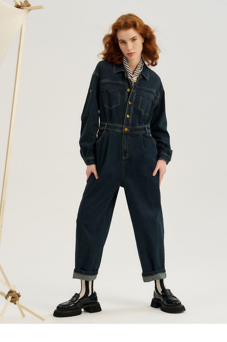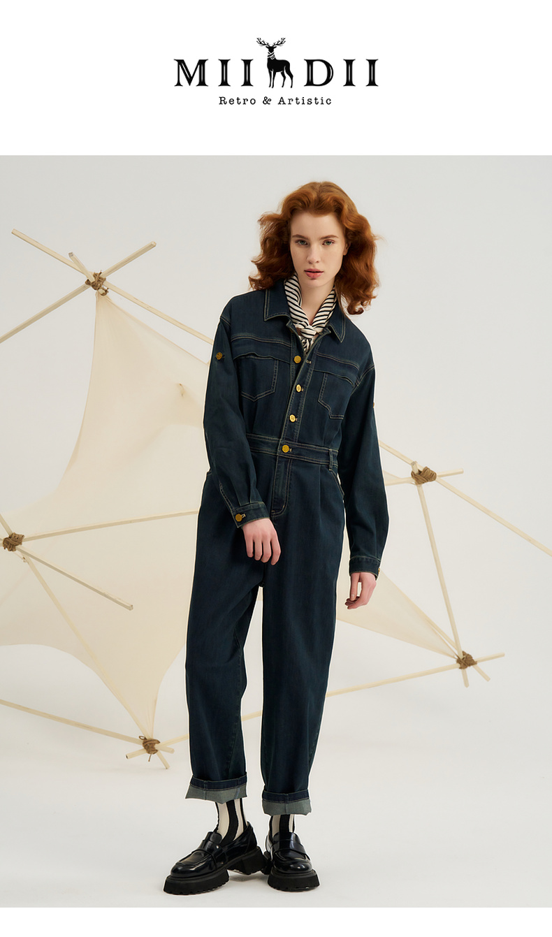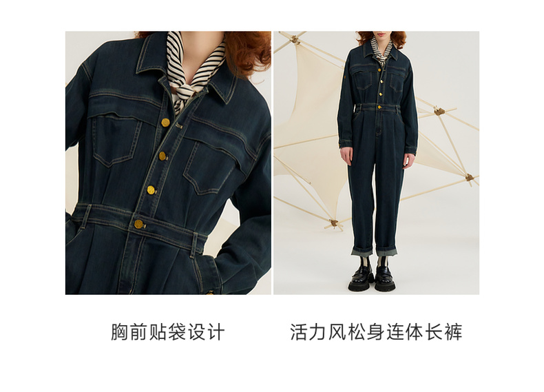 谜底牛仔连体裤女2024秋季新品复古风时髦宽松直筒长裤243MK1113