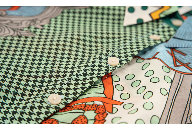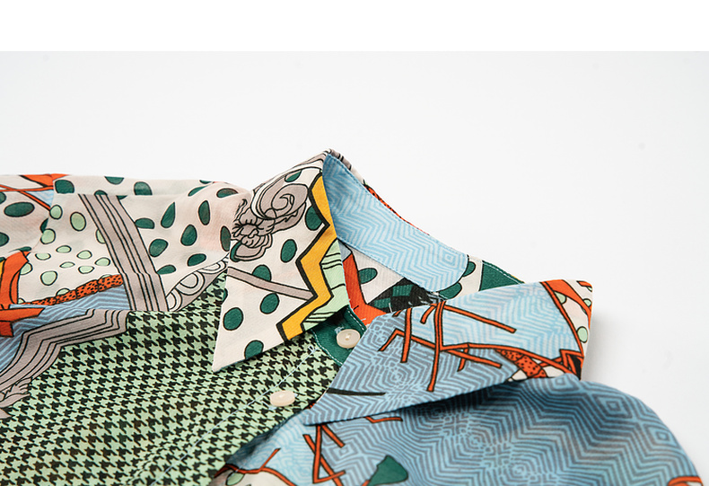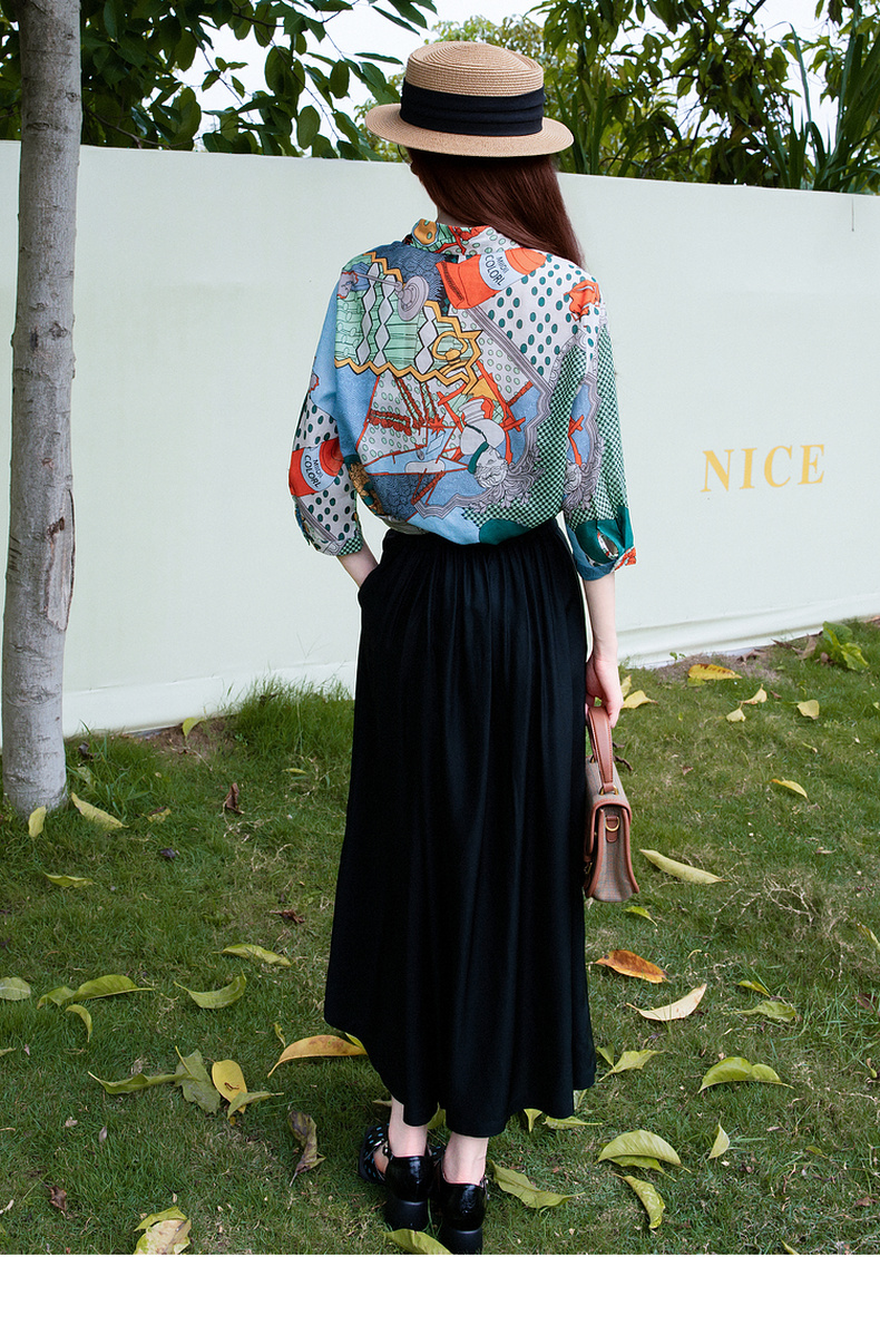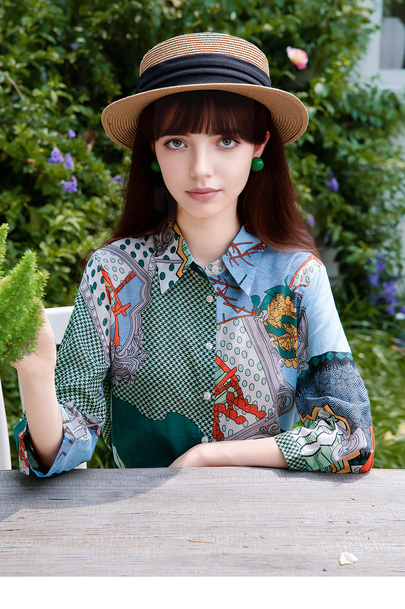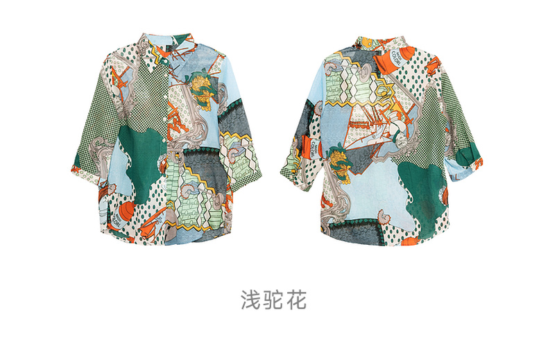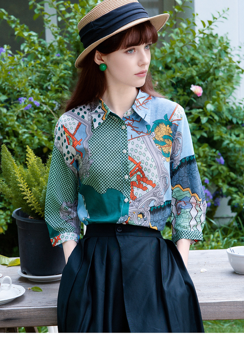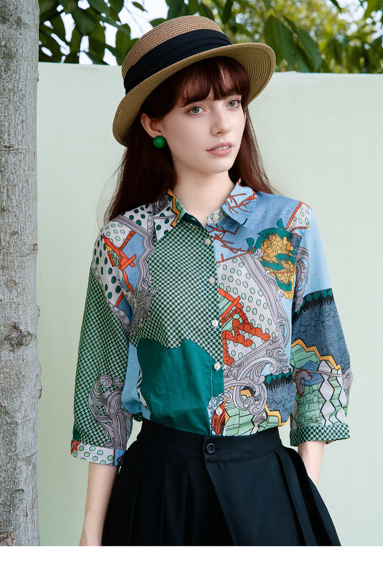 谜底花色衬衫七分袖女2025夏季新款复古风印花合体衬衣257MC7728