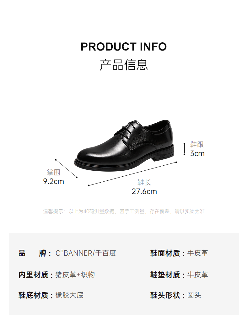 千百度男鞋英伦风大头皮鞋黑色男士休闲商务正装皮鞋A25121671