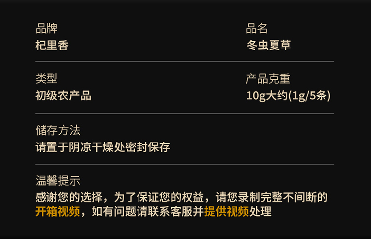 【杞里香礼盒装冬虫夏草10g】冬虫夏草虫草茶干货礼盒装