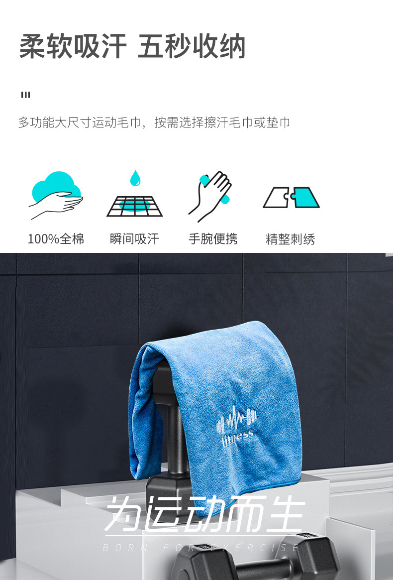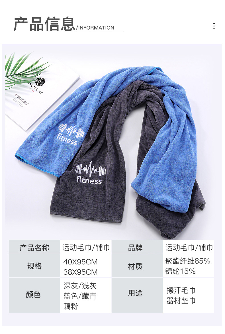 健身运动毛巾男女吸汗健身房垫巾篮球速干巾跑步加大擦汗巾q0067