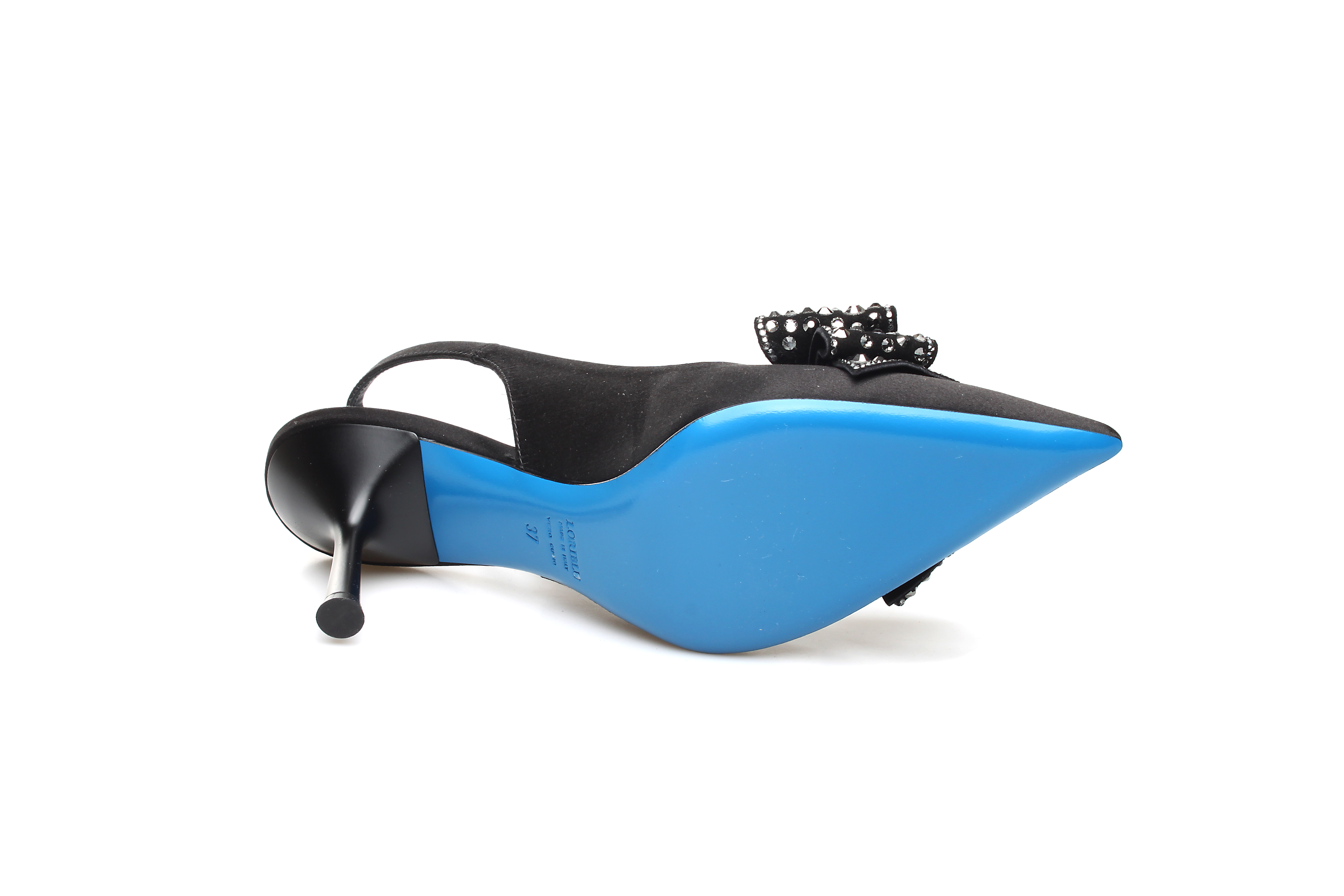 豪麟名鞋奥莱LORIBLU女鞋半凉鞋丝绸+施华洛世奇LR05261B黑色 原价5660元