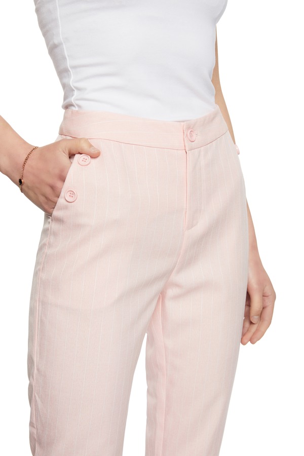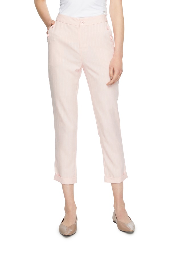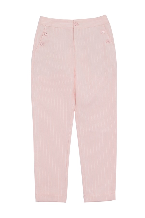 TONGRI曈日 条纹卷边粉色高腰裤 5154