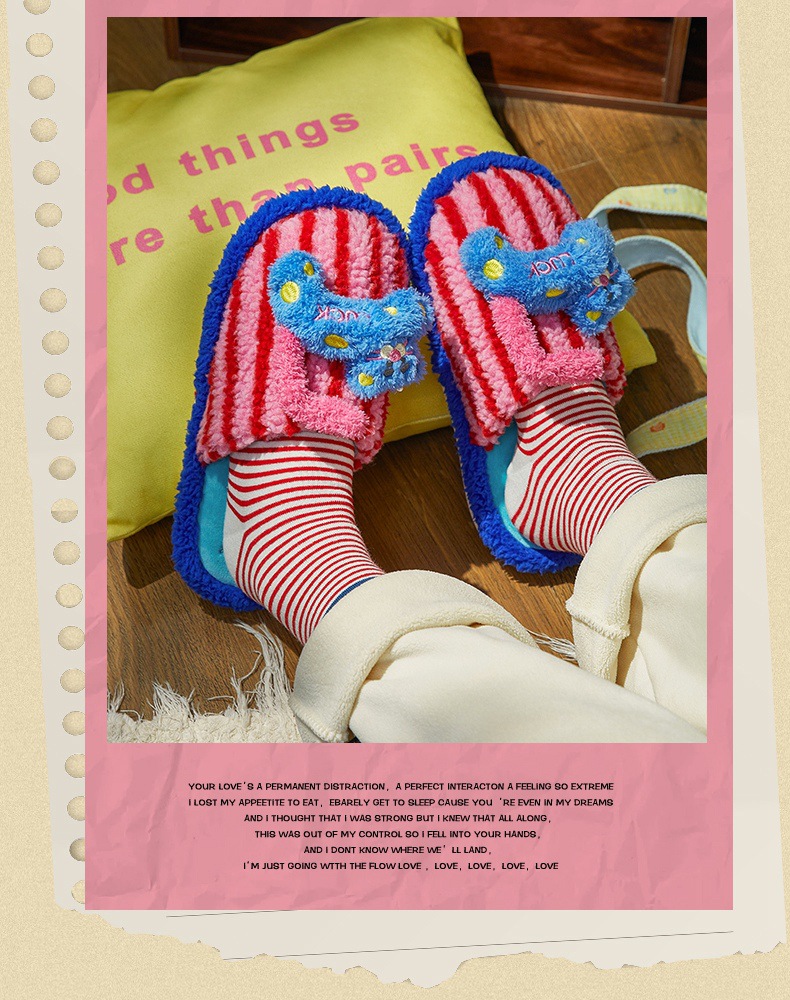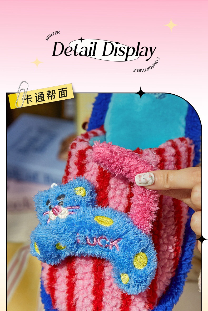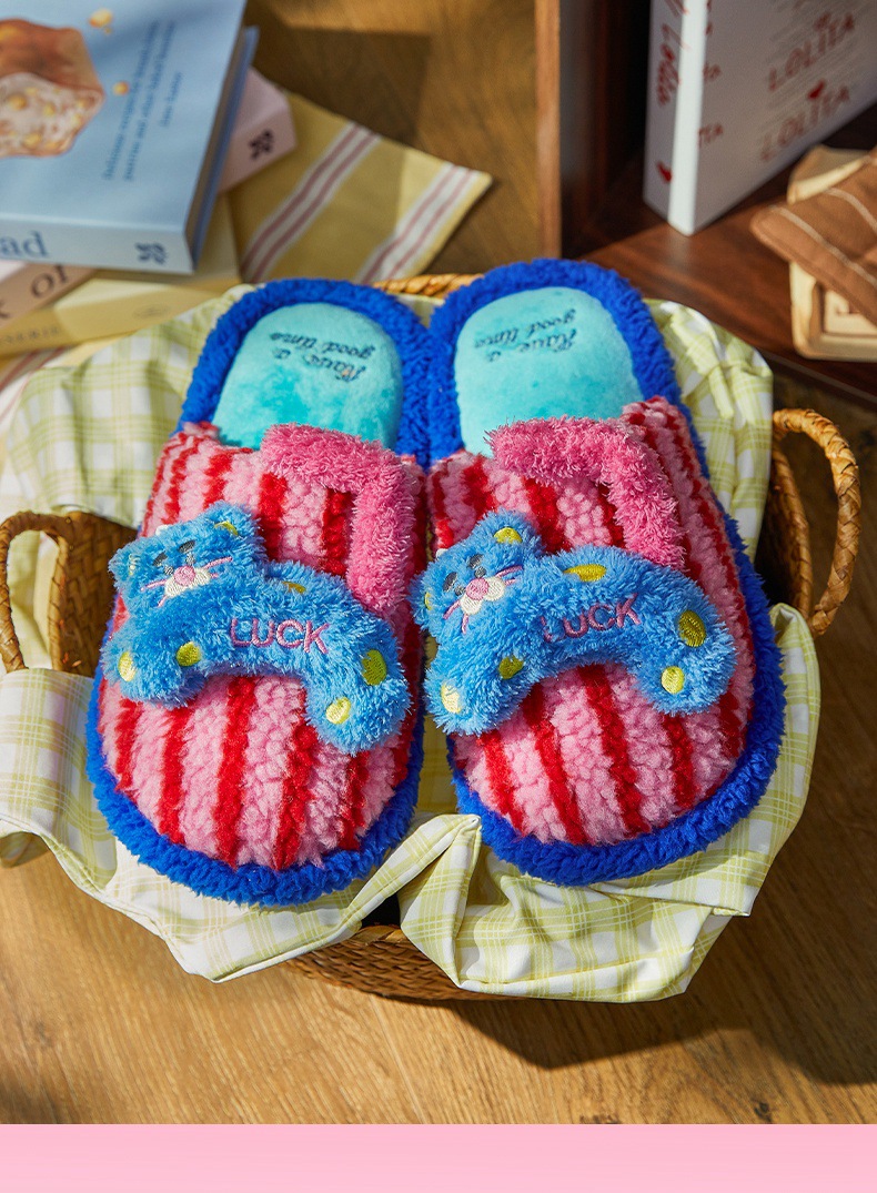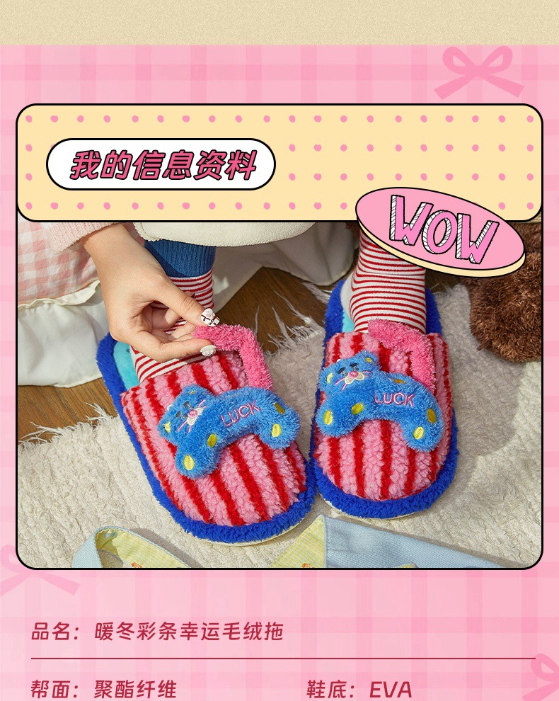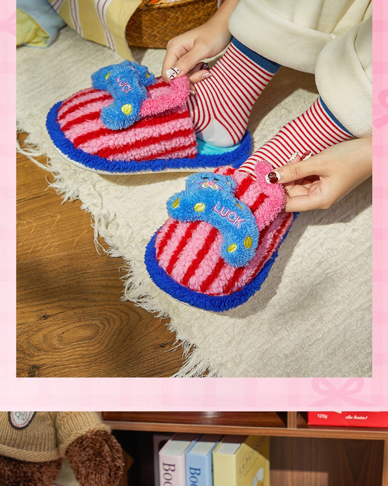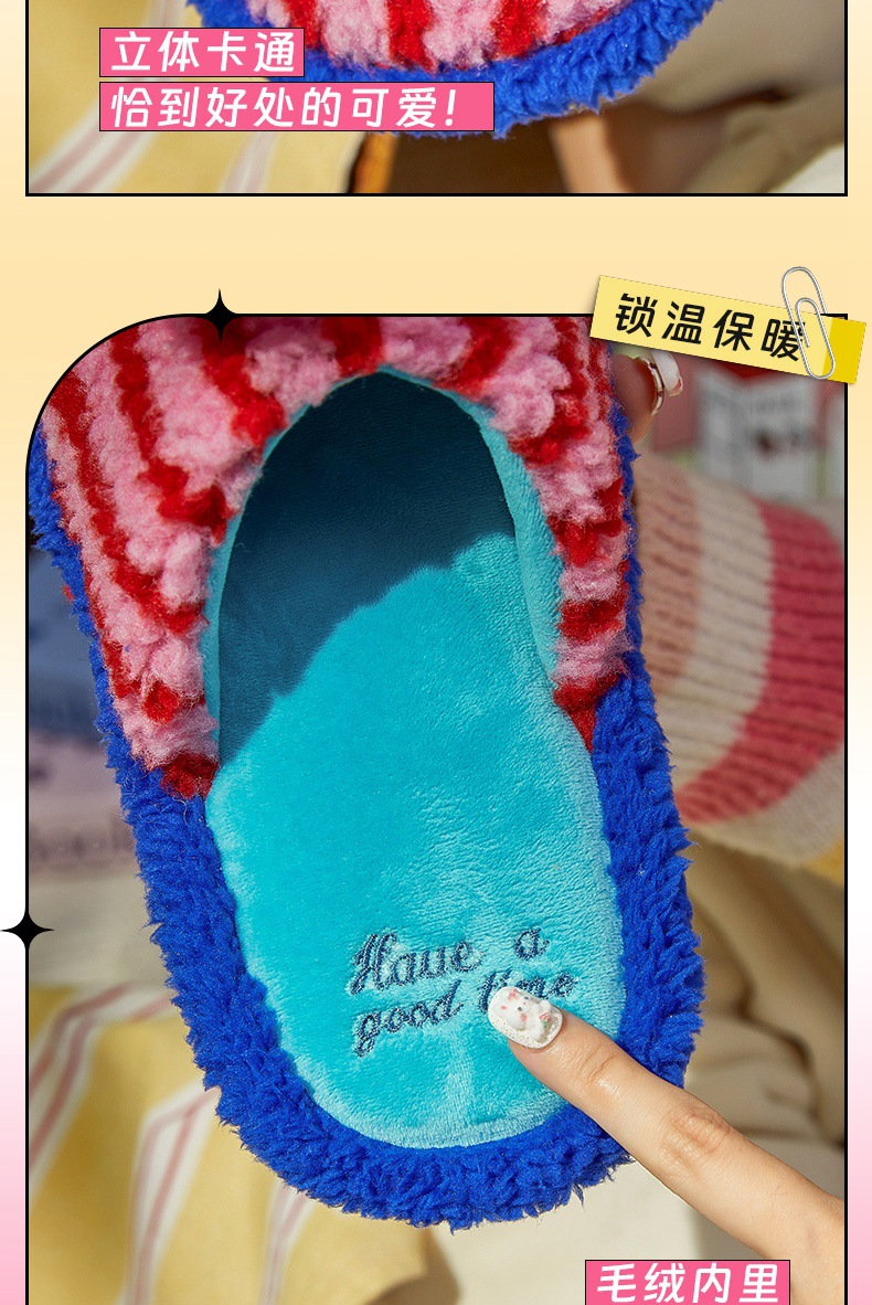 【36-40码】女士冬季新款暖冬彩条幸运毛绒居家室内女款棉拖鞋保暖撞色拖鞋【9912】