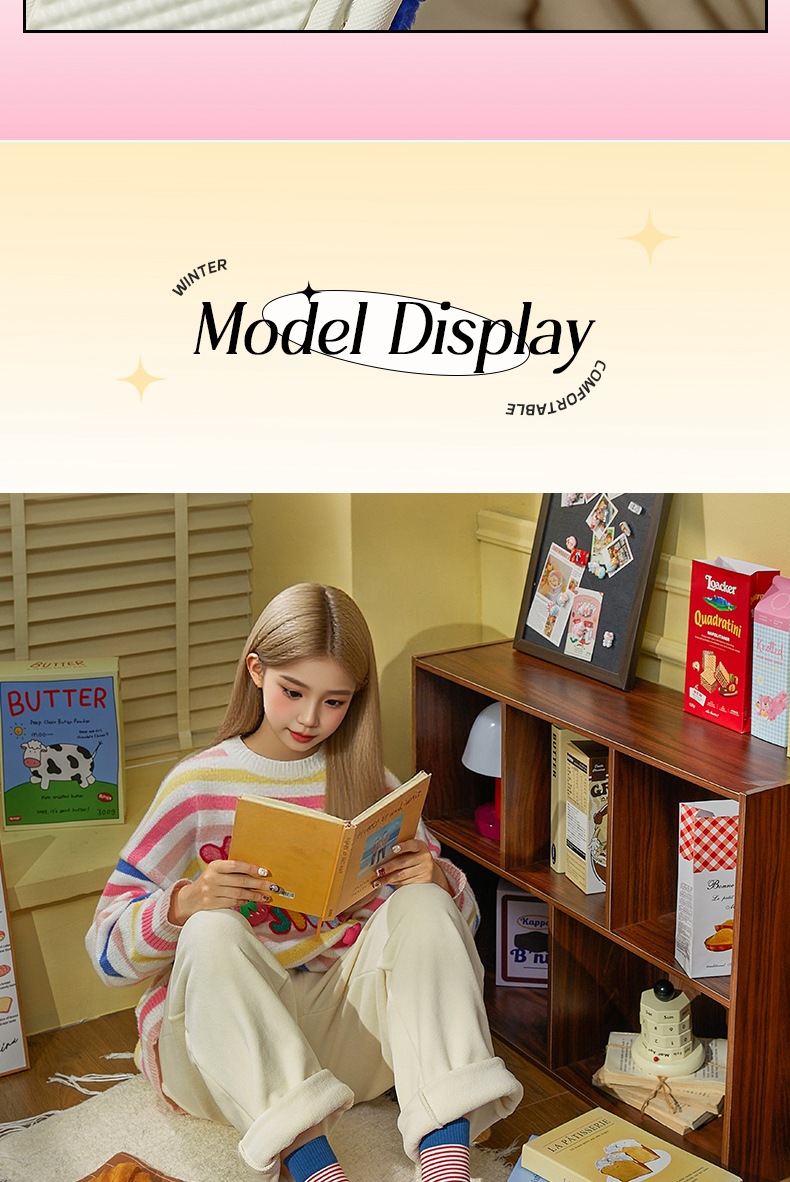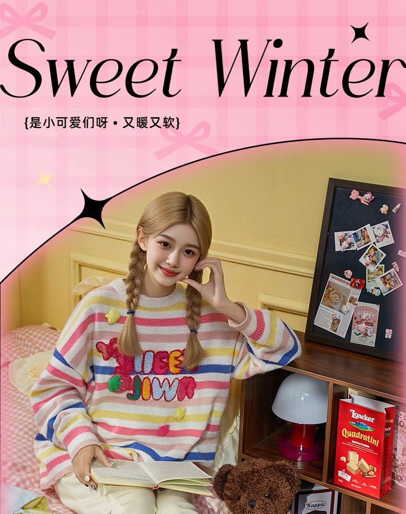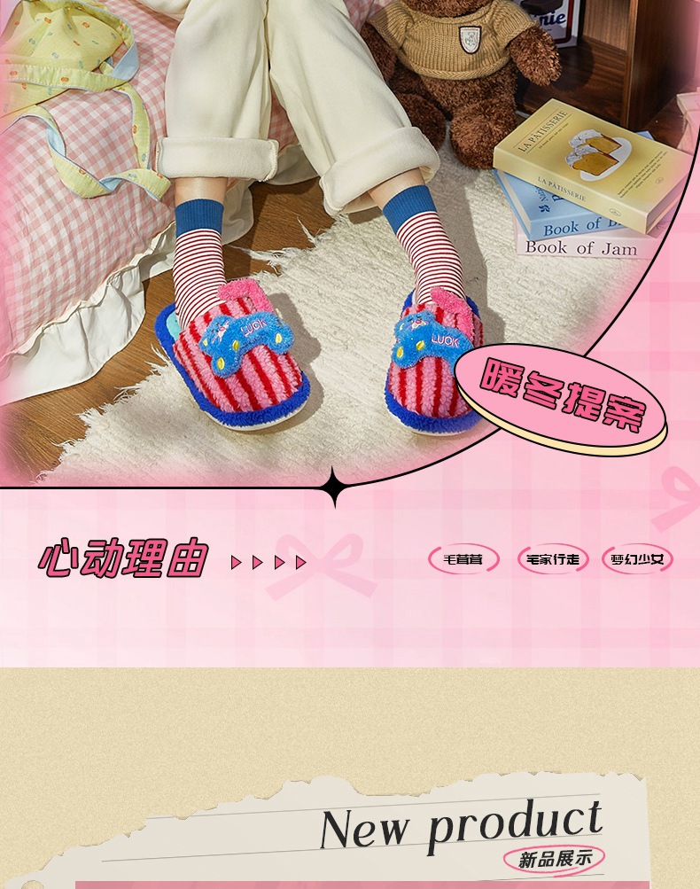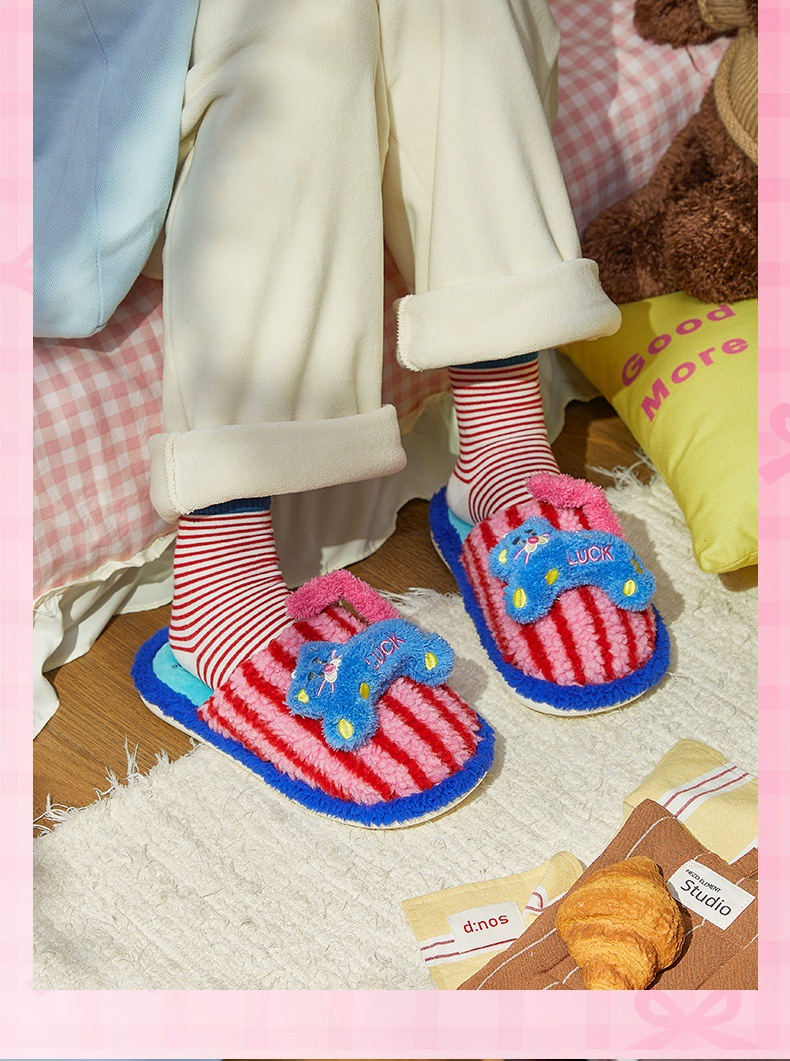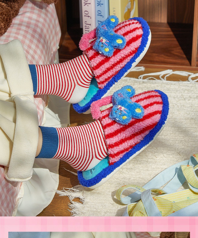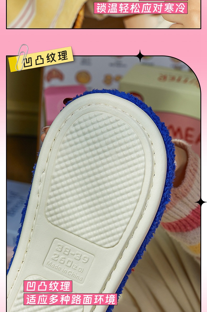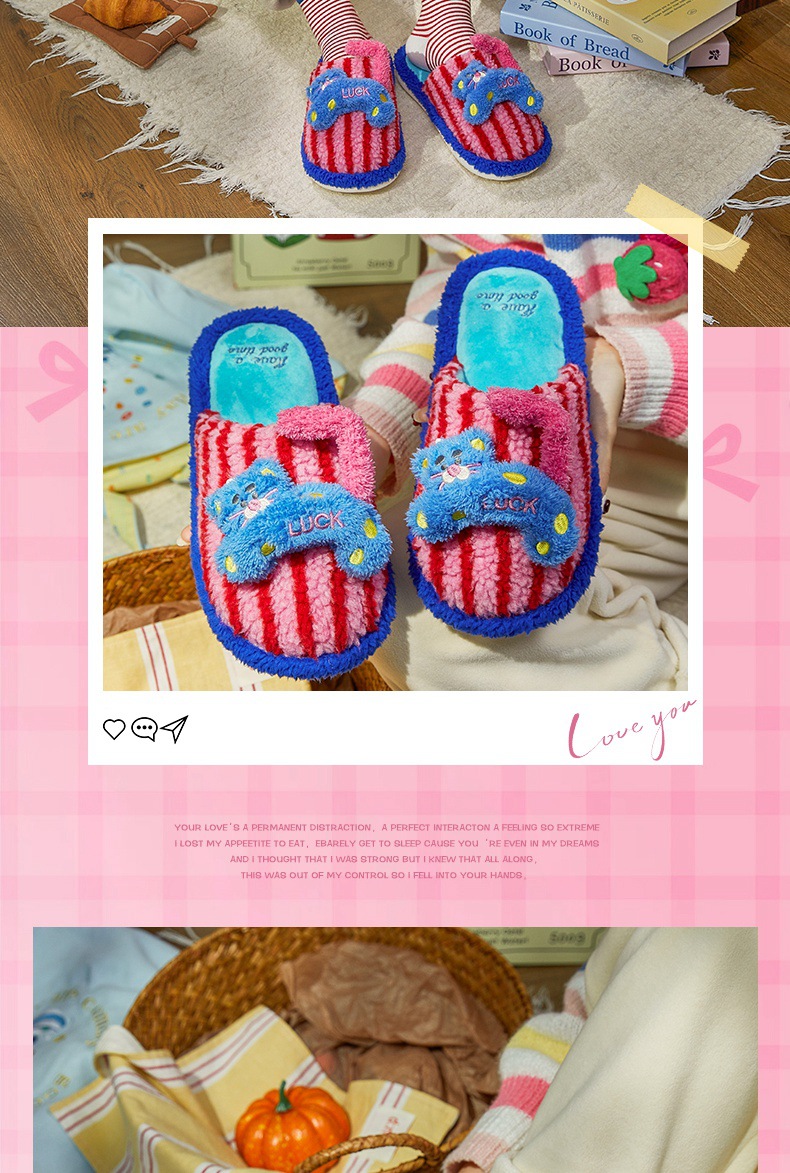 【36-40码】女士冬季新款暖冬彩条幸运毛绒居家室内女款棉拖鞋保暖撞色拖鞋【9912】