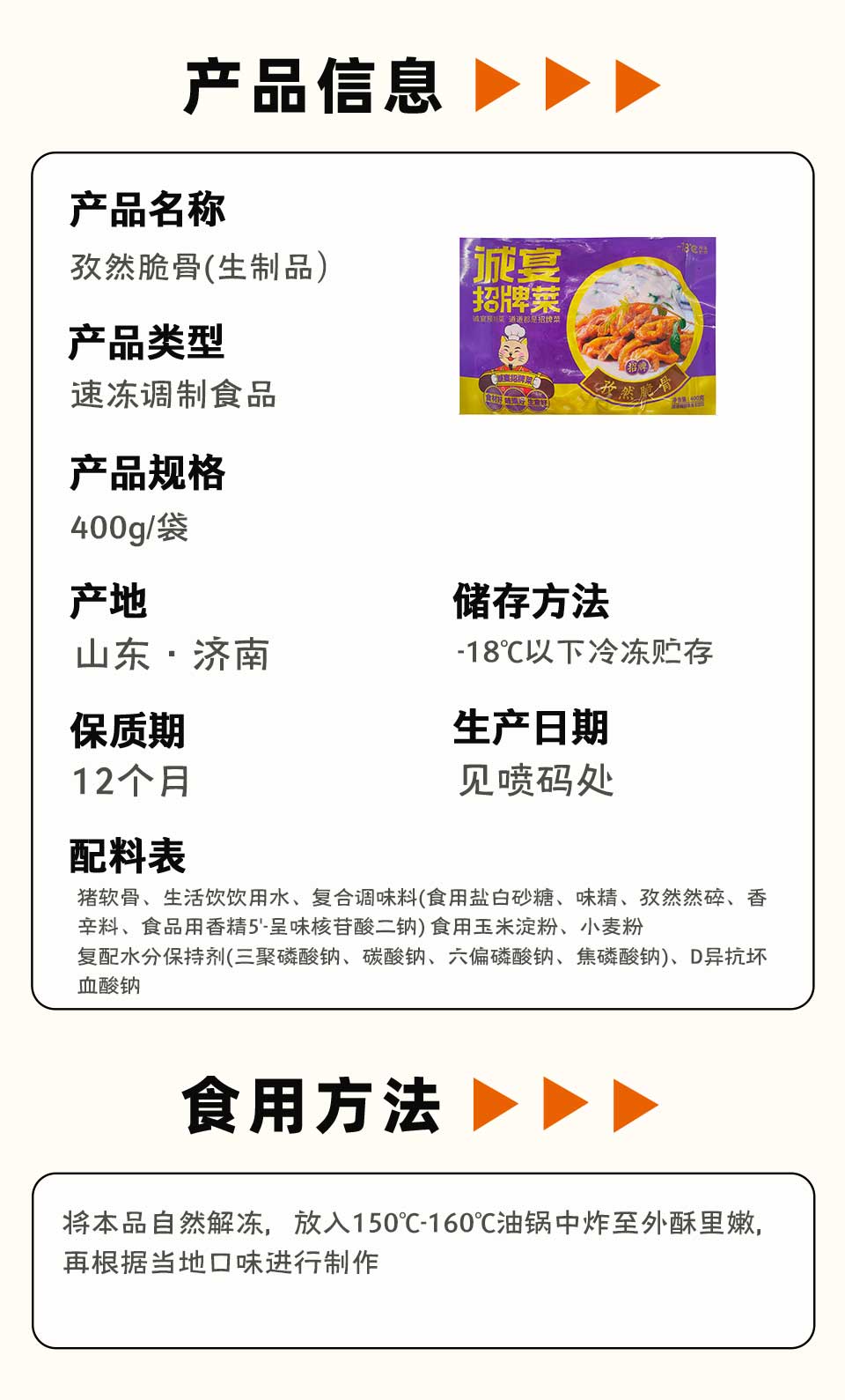 25I【预制菜】诚宴食品孜然脆骨400g/袋 25袋/件