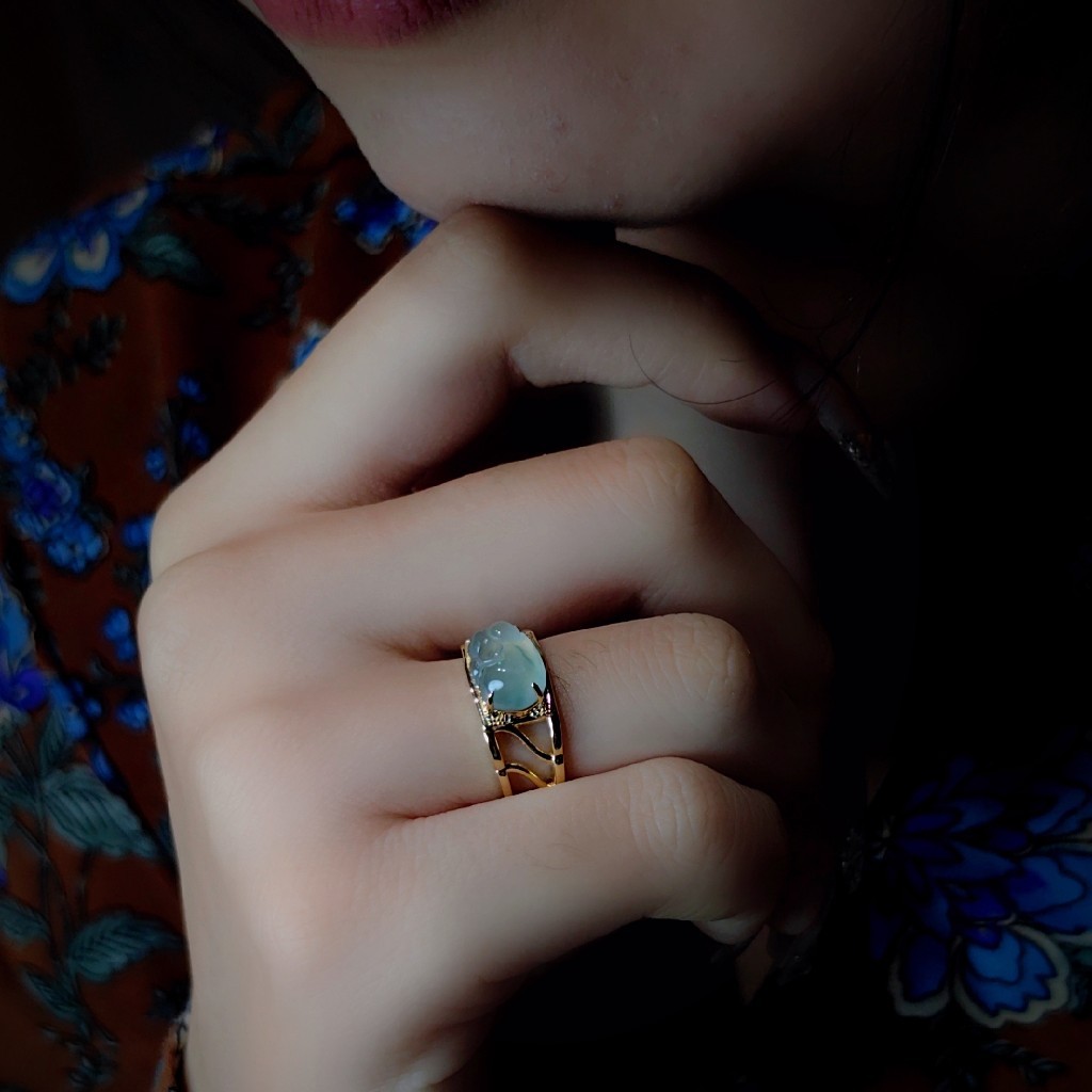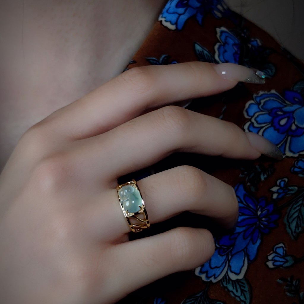 于是设计成一枚翡翠戒指,让喜爱可以日常佩戴!