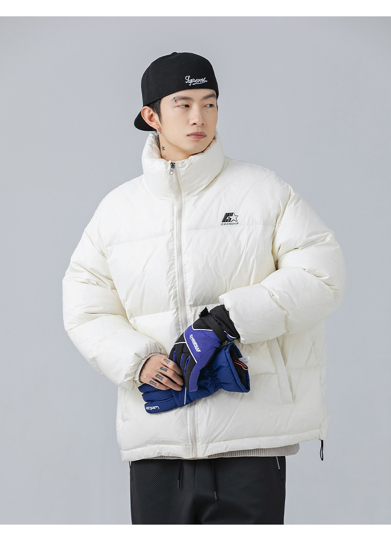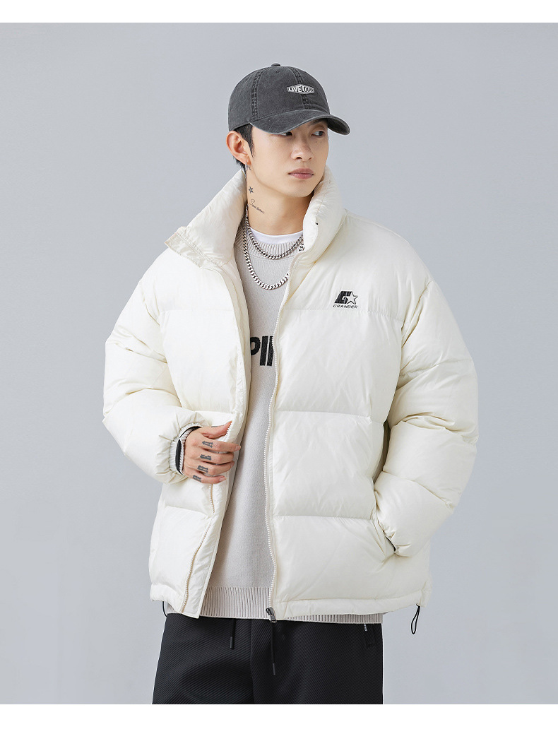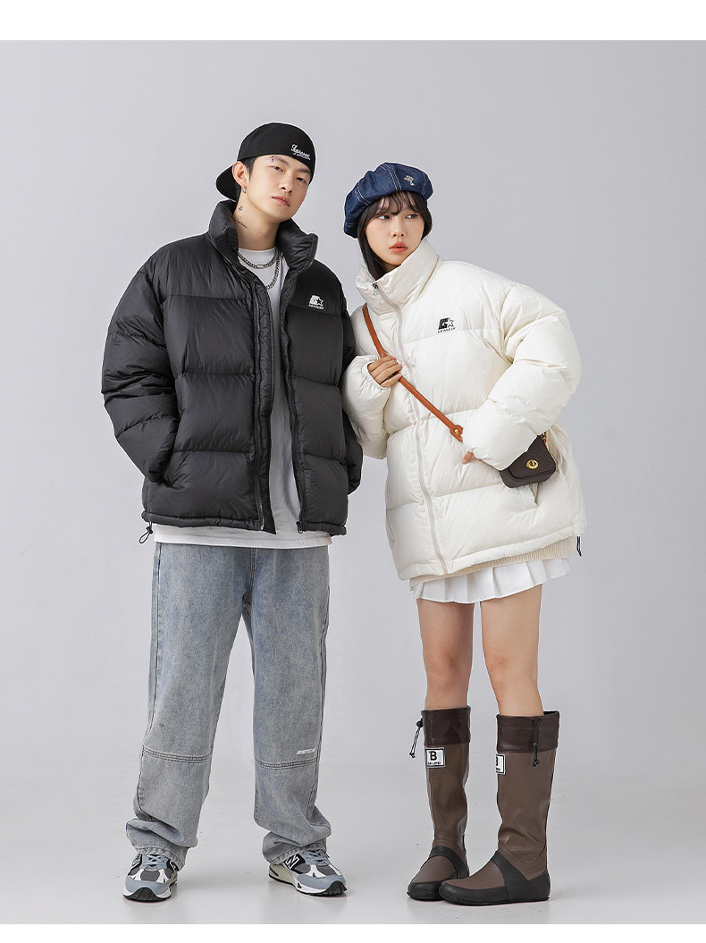 「黑白两色!新款立领羽绒服」韩路日系男装 冬季新款羽绒服男女情侣装潮牌印花加厚面包服外套上衣