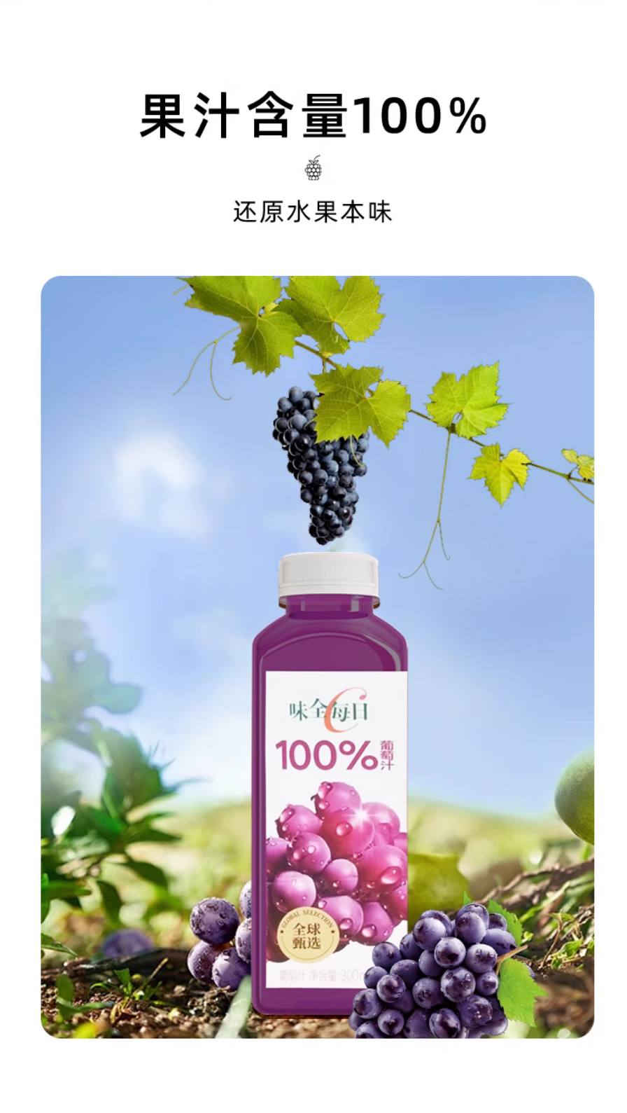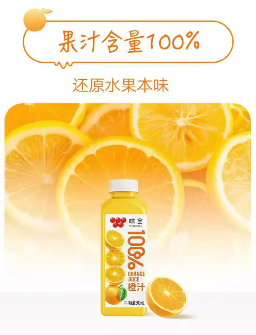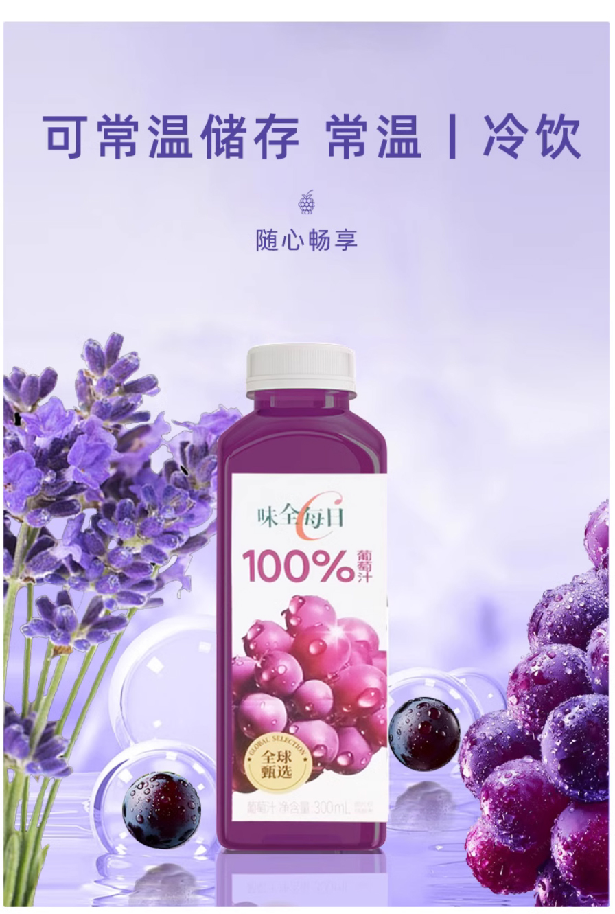 【11.3积分当钱花】味全100%常温橙汁300ml*6(限2024年12月)/100%常温葡萄汁300ML*6(限2025年1月)