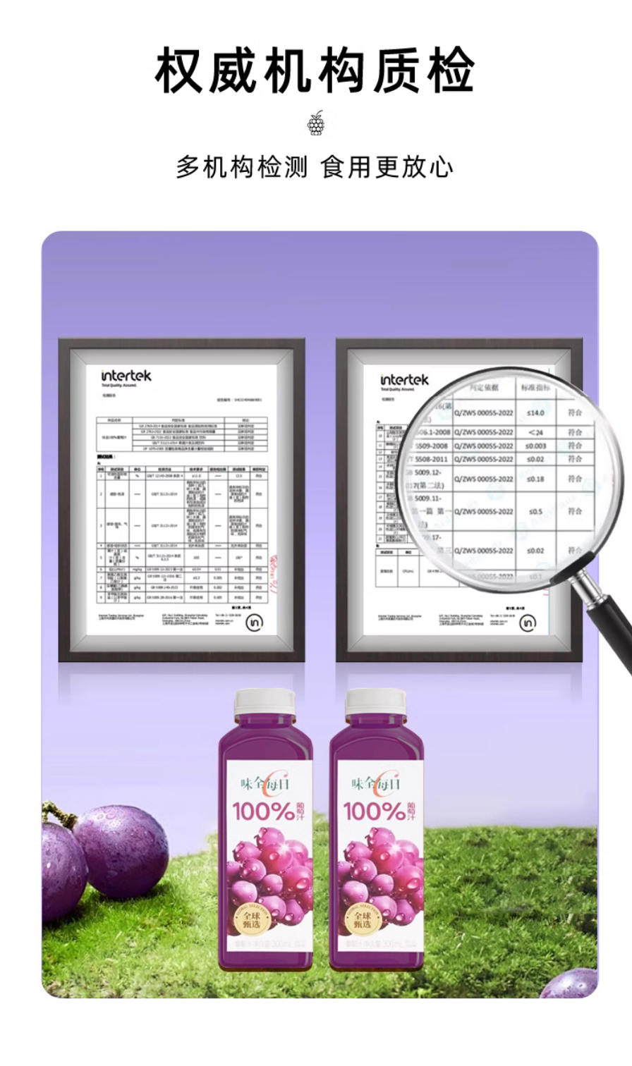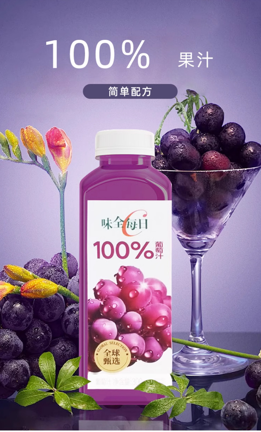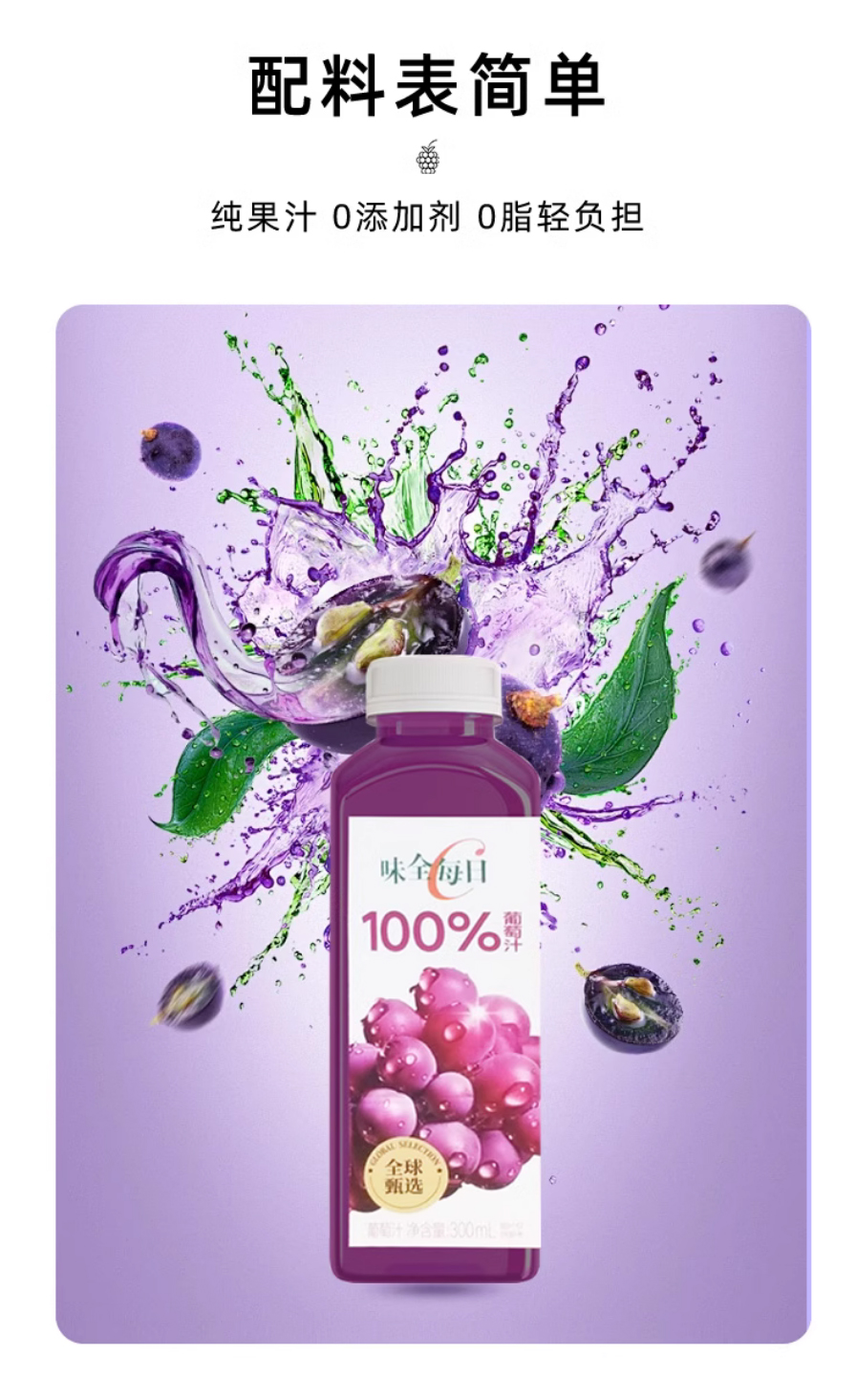 【11.3积分当钱花】味全100%常温橙汁300ml*6(限2024年12月)/100%常温葡萄汁300ML*6(限2025年1月)