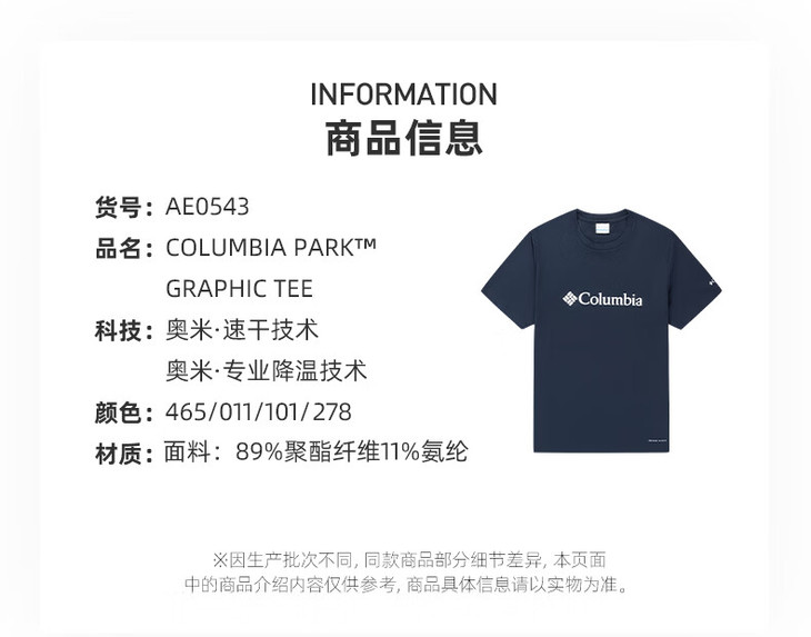 哥伦比亚男式LOGO款冰感速干短袖T恤AE0543