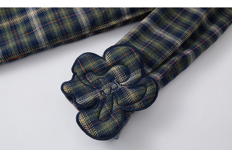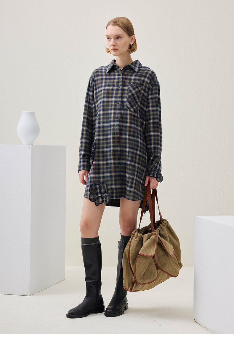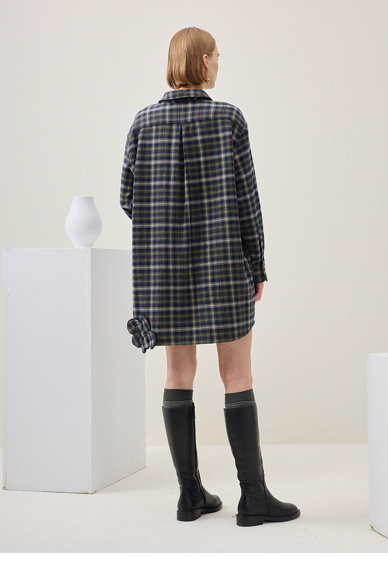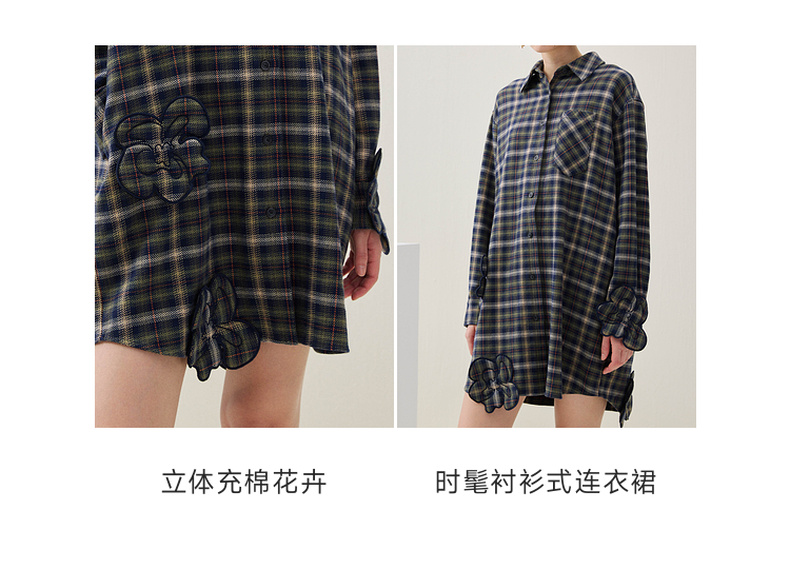 谜底格子连衣裙长袖2025年冬季新品复古立体花卉宽松女254ML1696