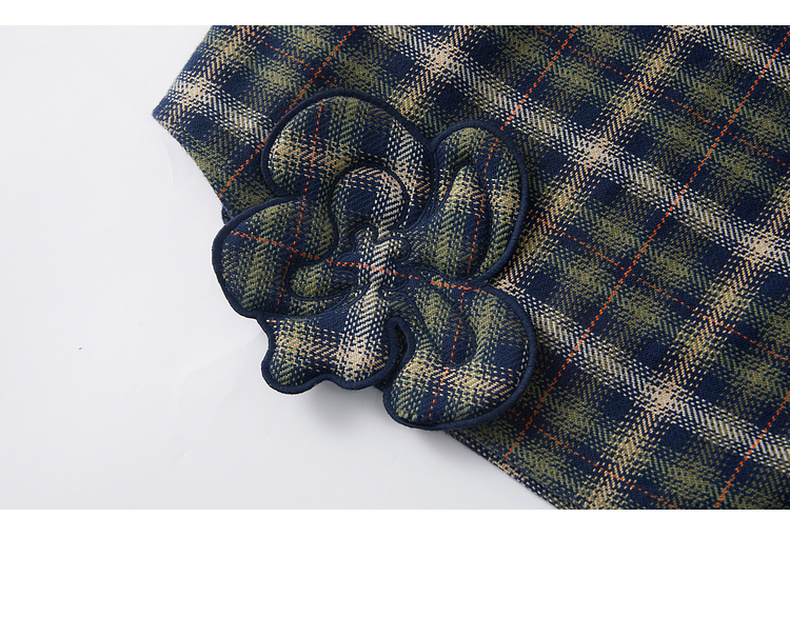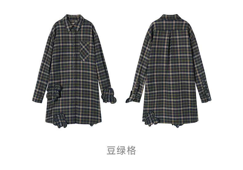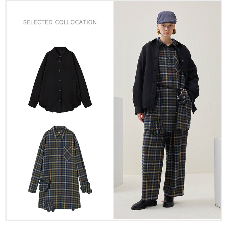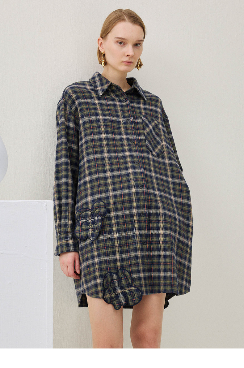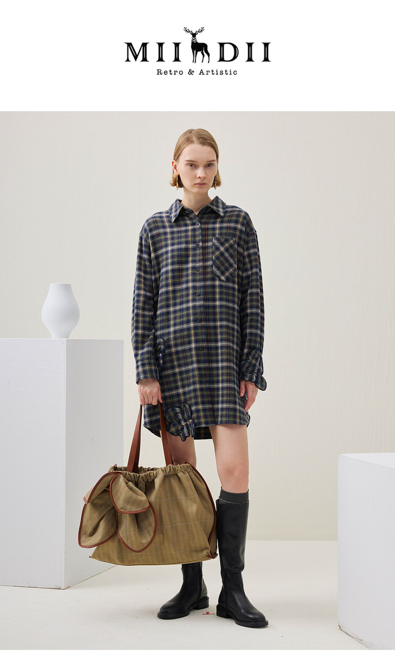 谜底格子连衣裙长袖2025年冬季新品复古立体花卉宽松女254ML1696