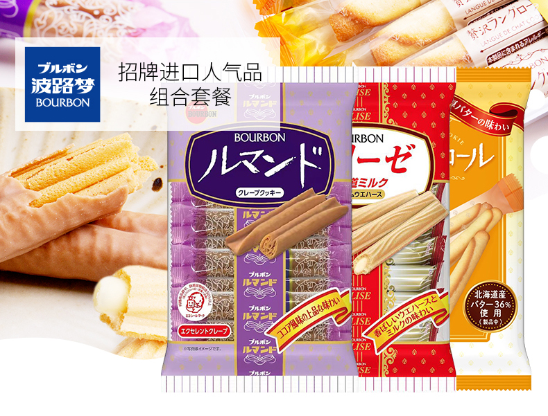 波路梦牛奶味夹心威化饼干棒/浪漫多可可奶油味曲奇饼干棒