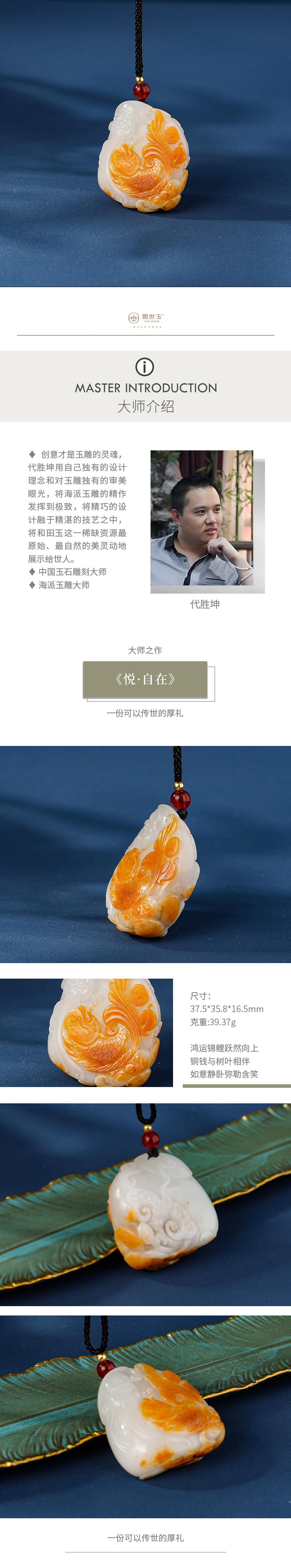 新疆国玉盟世玉和田玉挂件 代胜坤老师作品 悦·自在