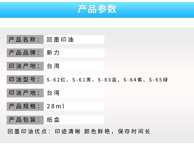 新力回墨章专用印油s-61~s-65红蓝黑绿紫色28ml