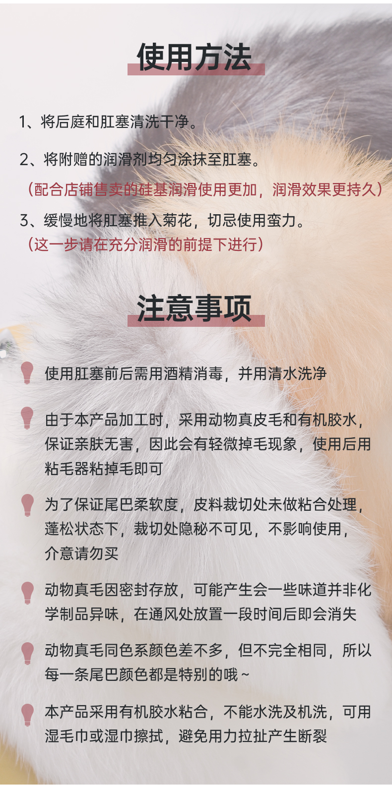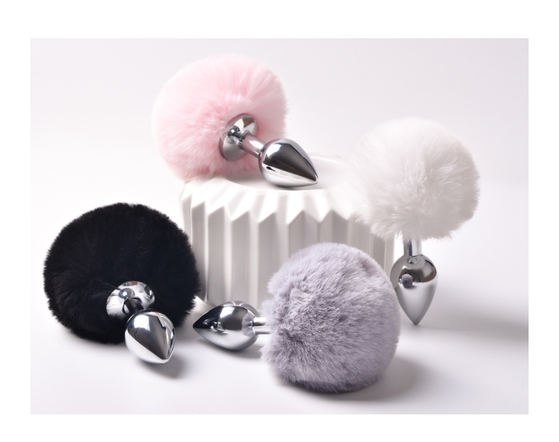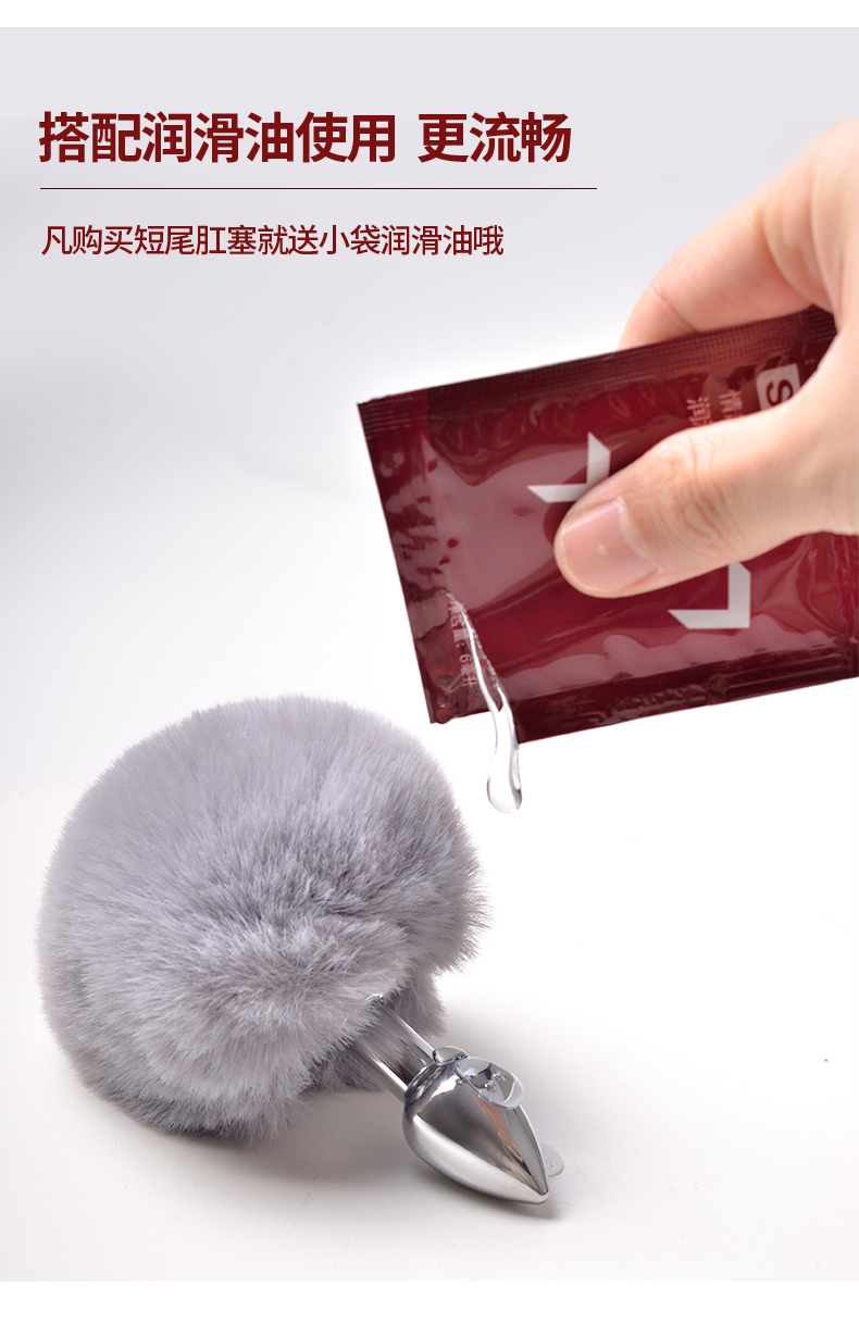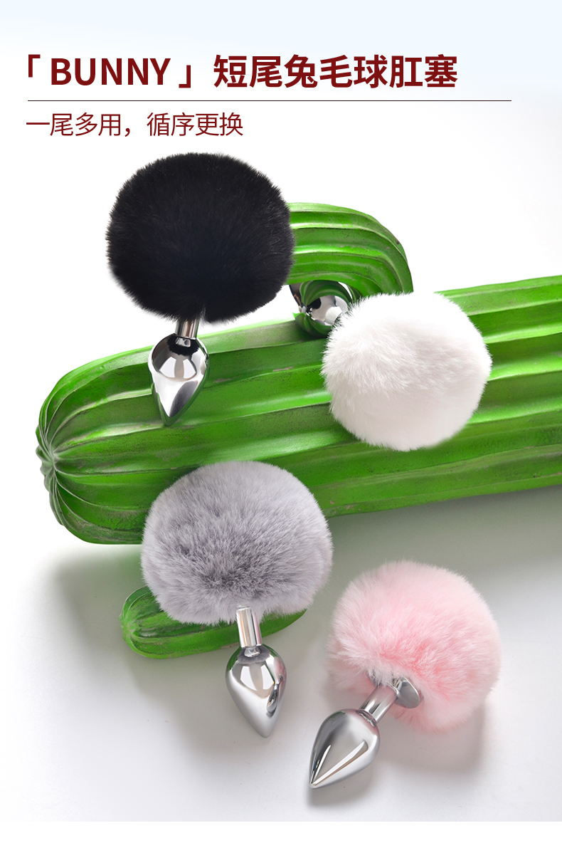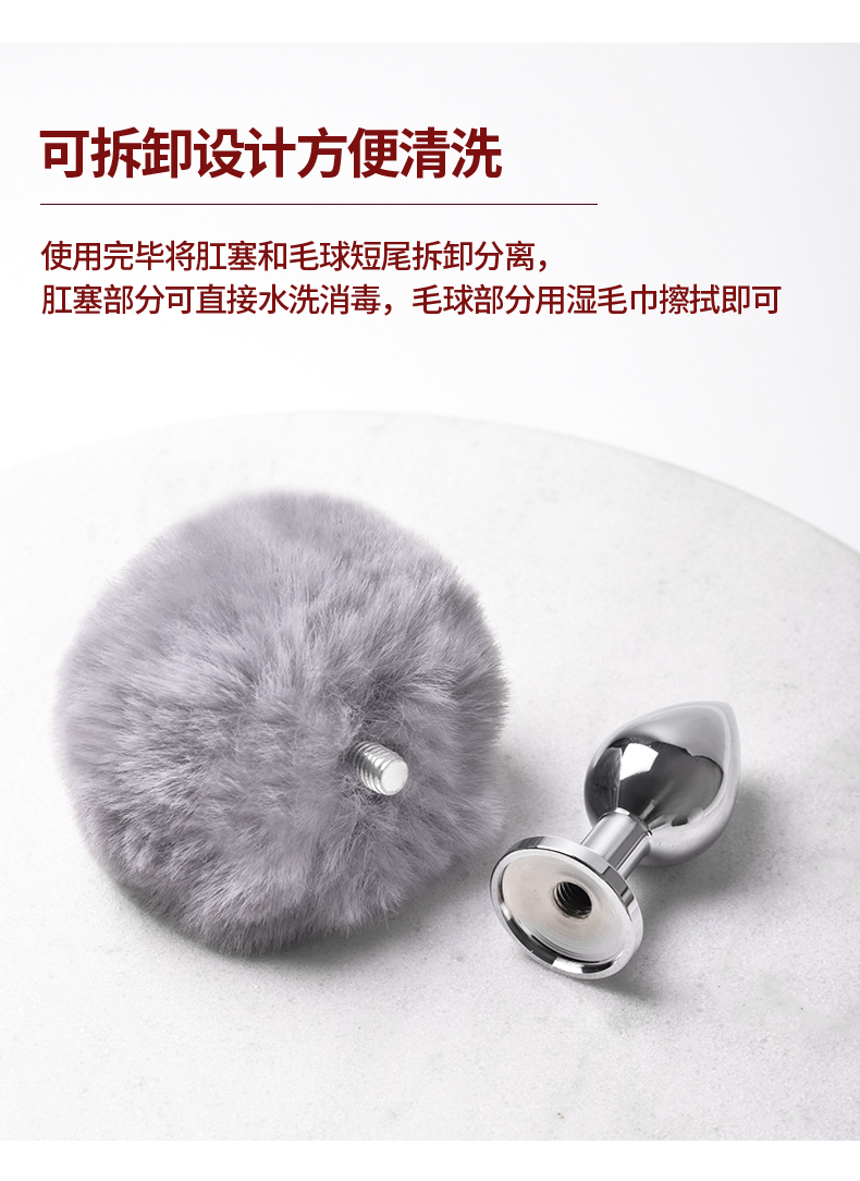 短尾兔毛球肛塞 一尾多用 可拆卸循序更换