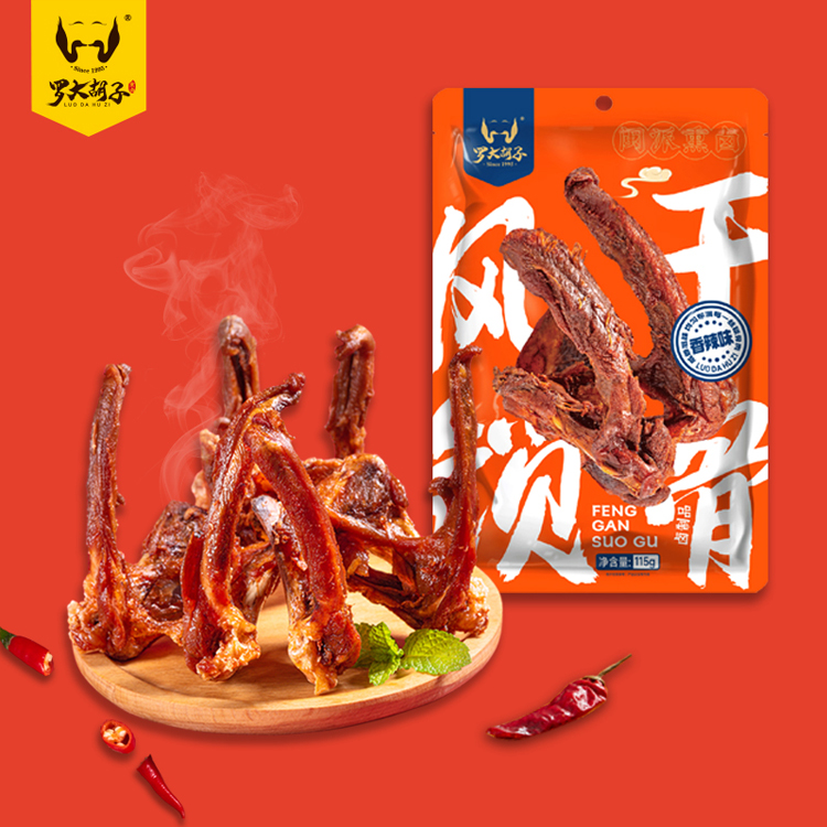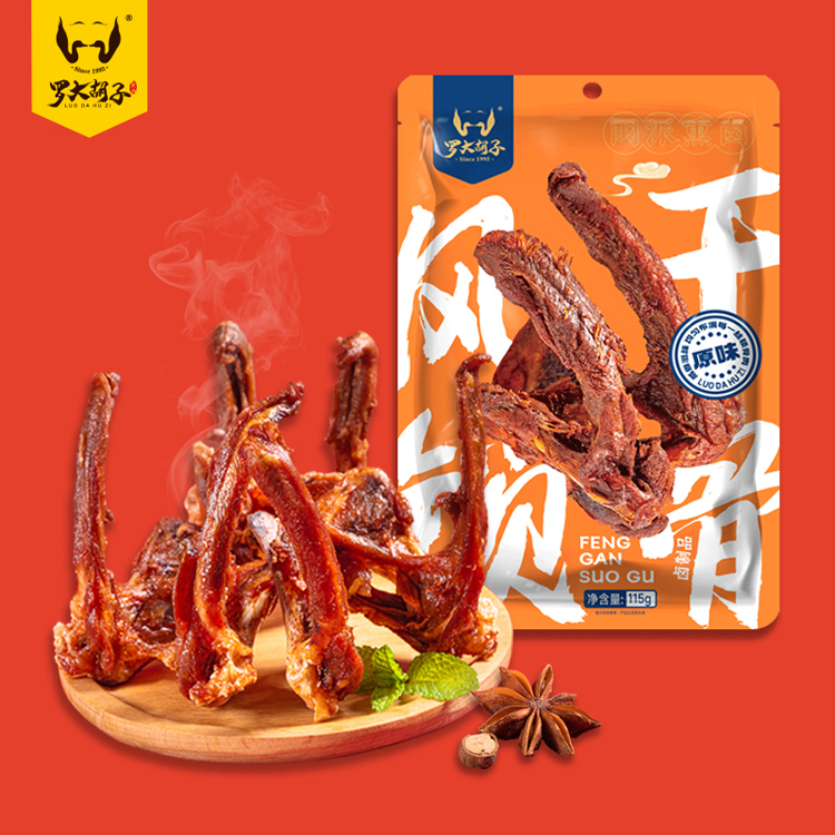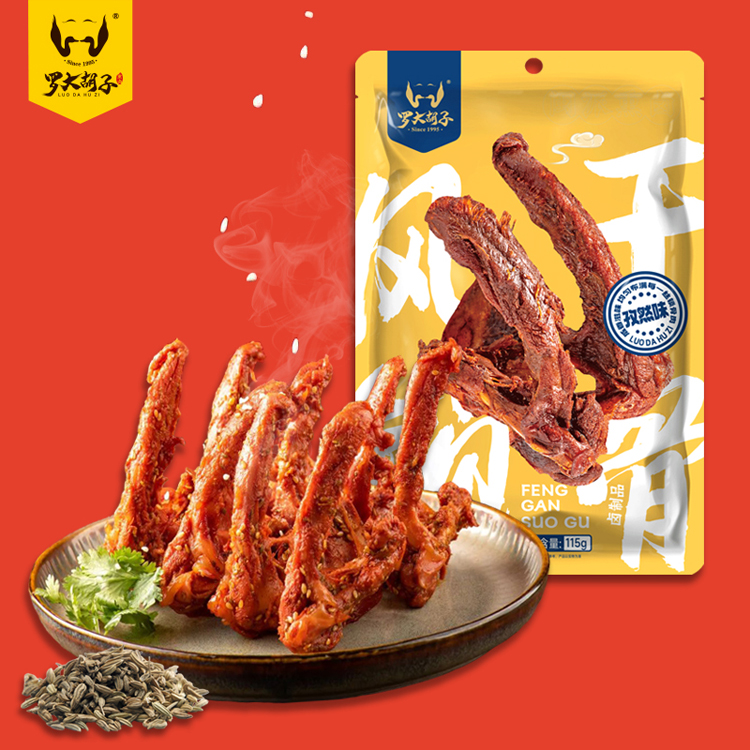 罗大胡子风干鸭锁骨 零食香辣鸭架熟食网红休闲小吃