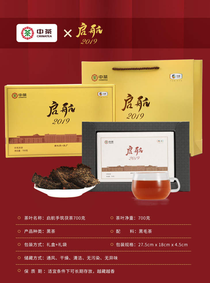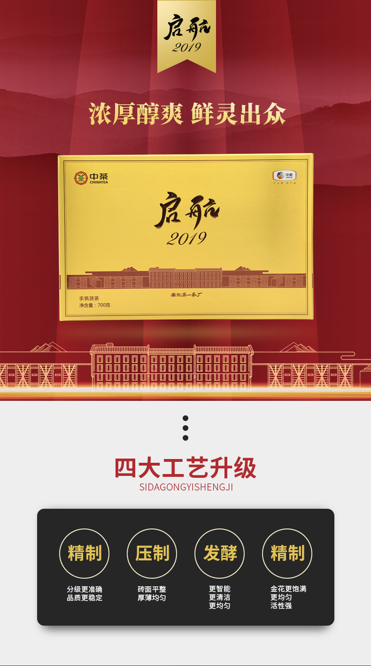 中粮-中茶2019年湖南安化黑茶( 启航 )手筑茯茶 700g/金花饱满/原产地直发