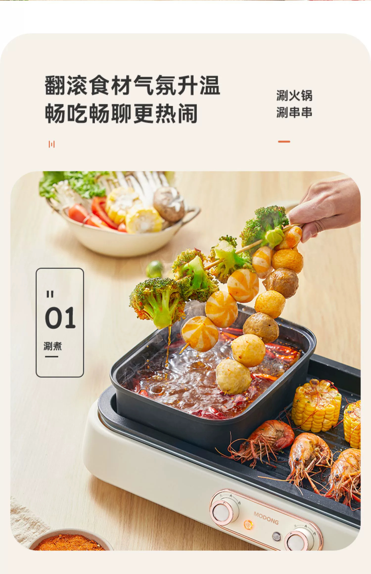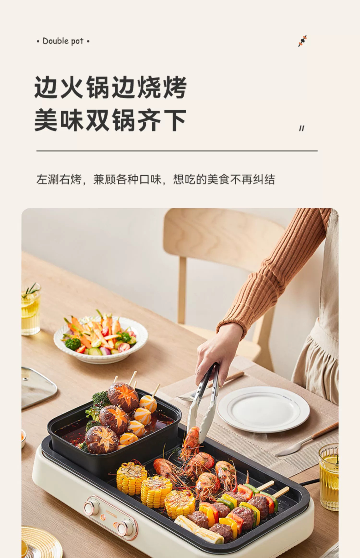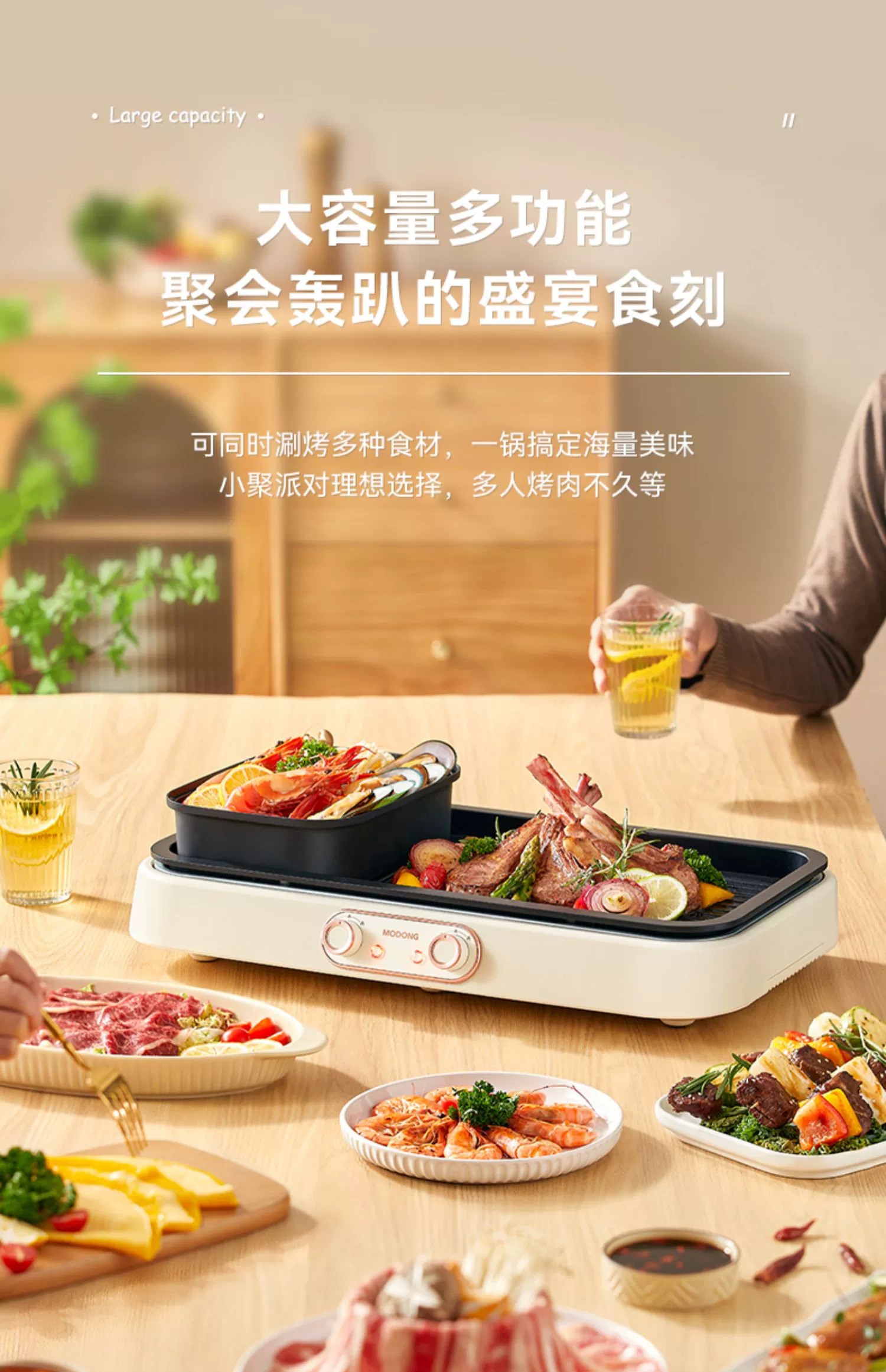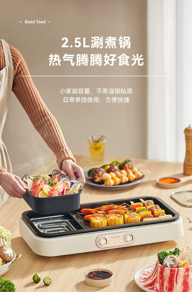 摩动电烧烤炉煎烤涮一体锅盘家用露营烤肉串火锅料理多功能烤肉锅