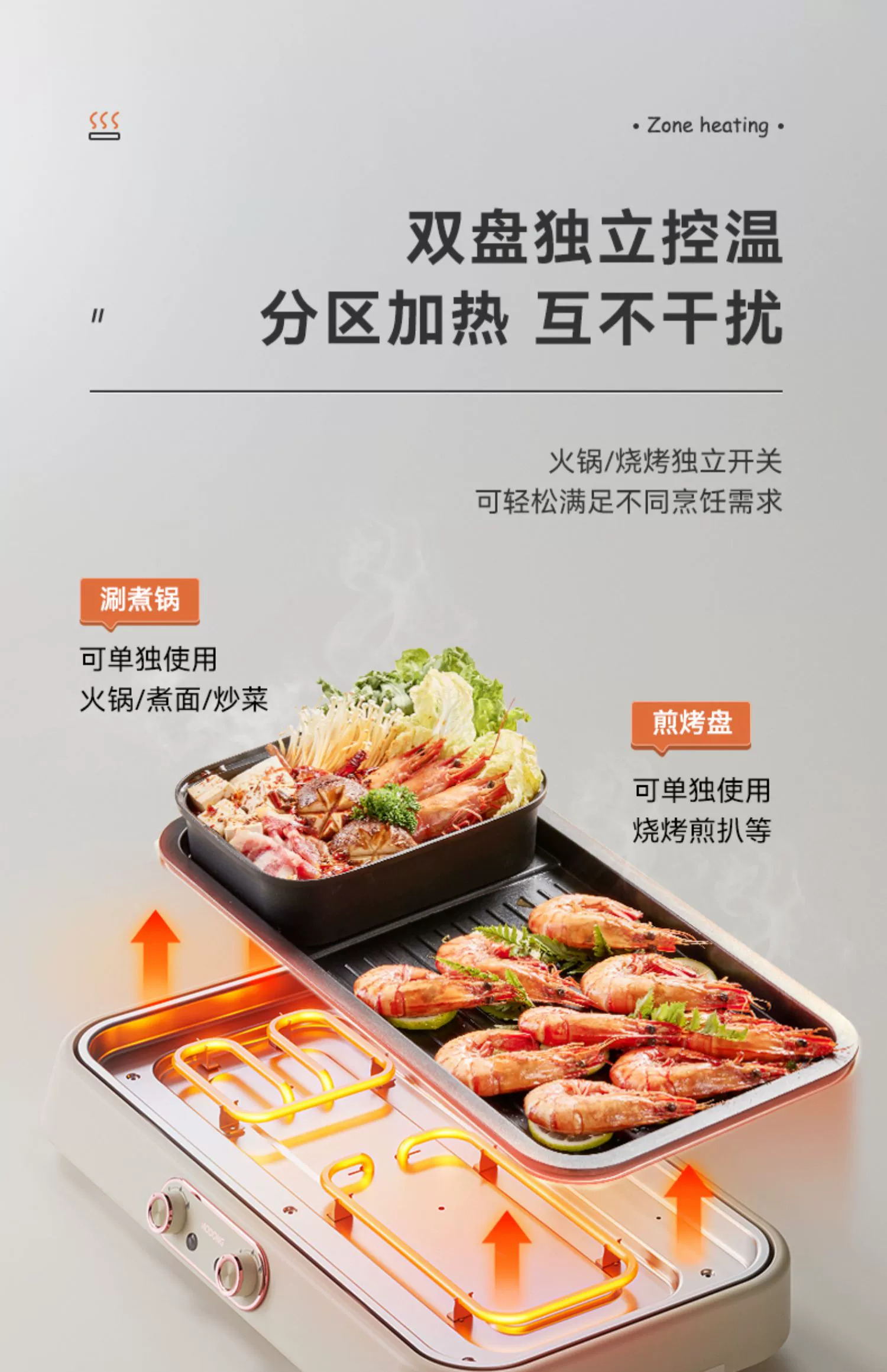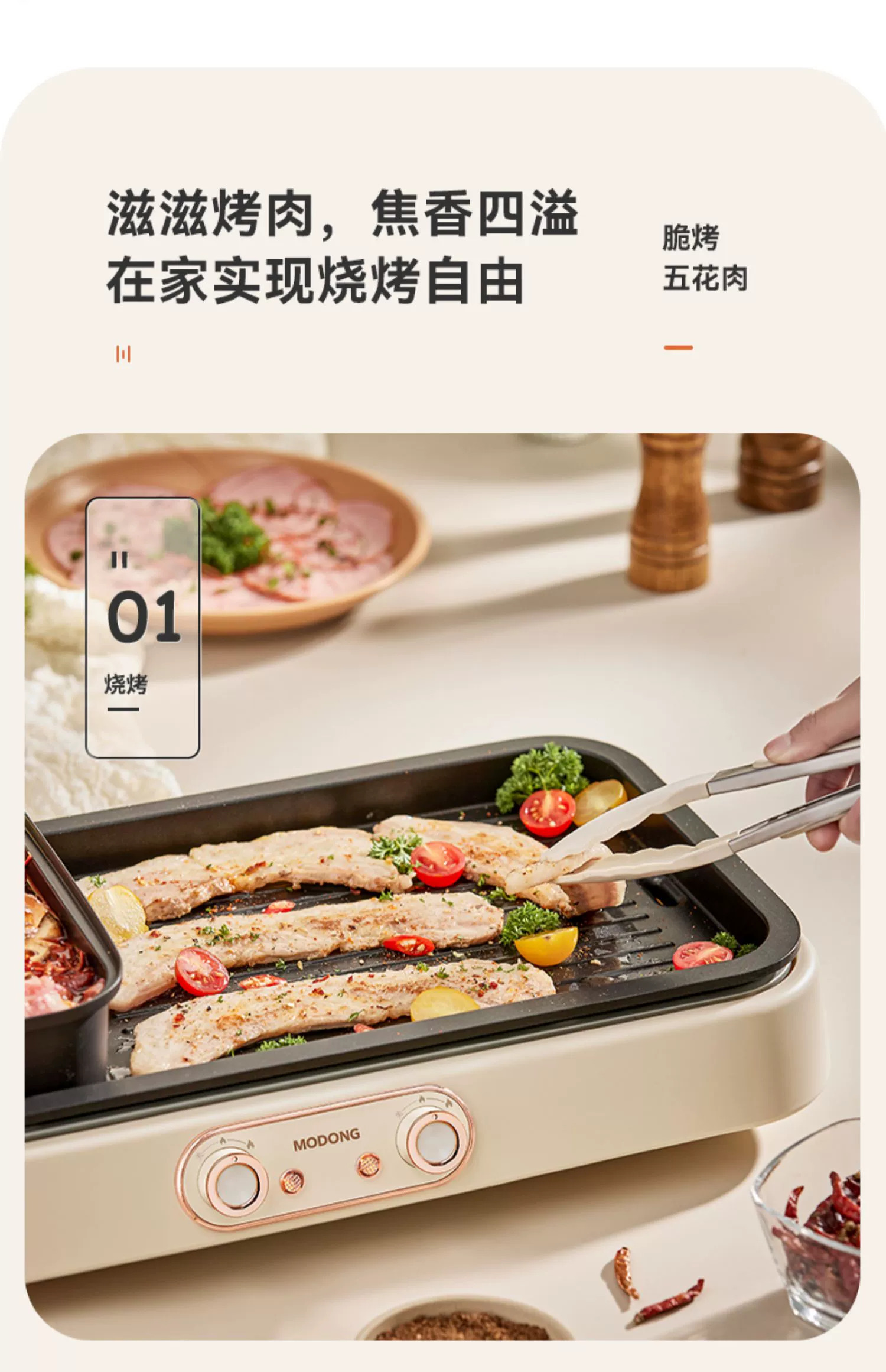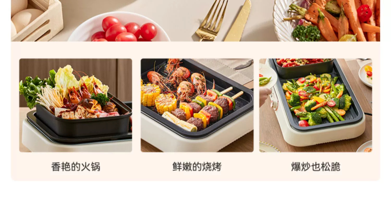 摩动电烧烤炉煎烤涮一体锅盘家用露营烤肉串火锅料理多功能烤肉锅