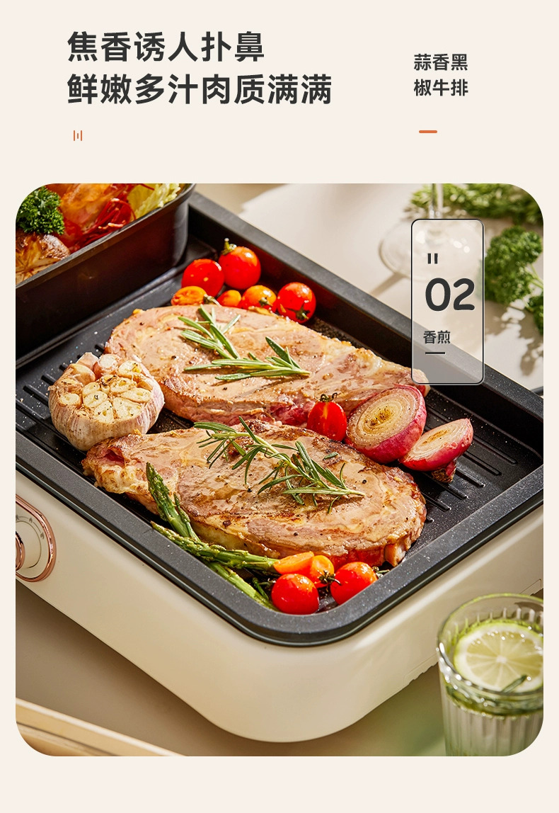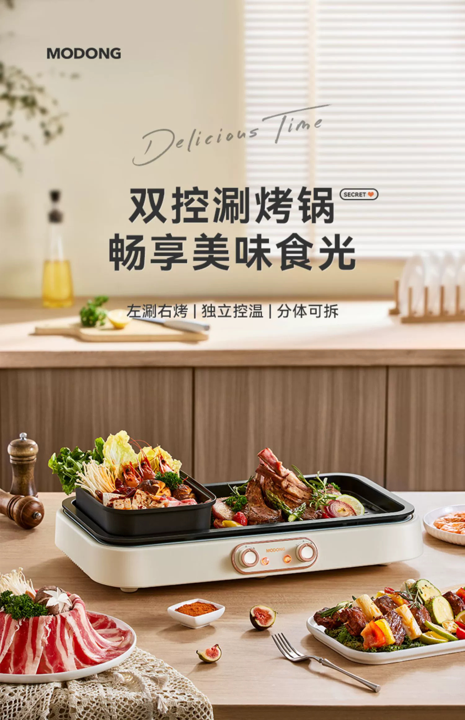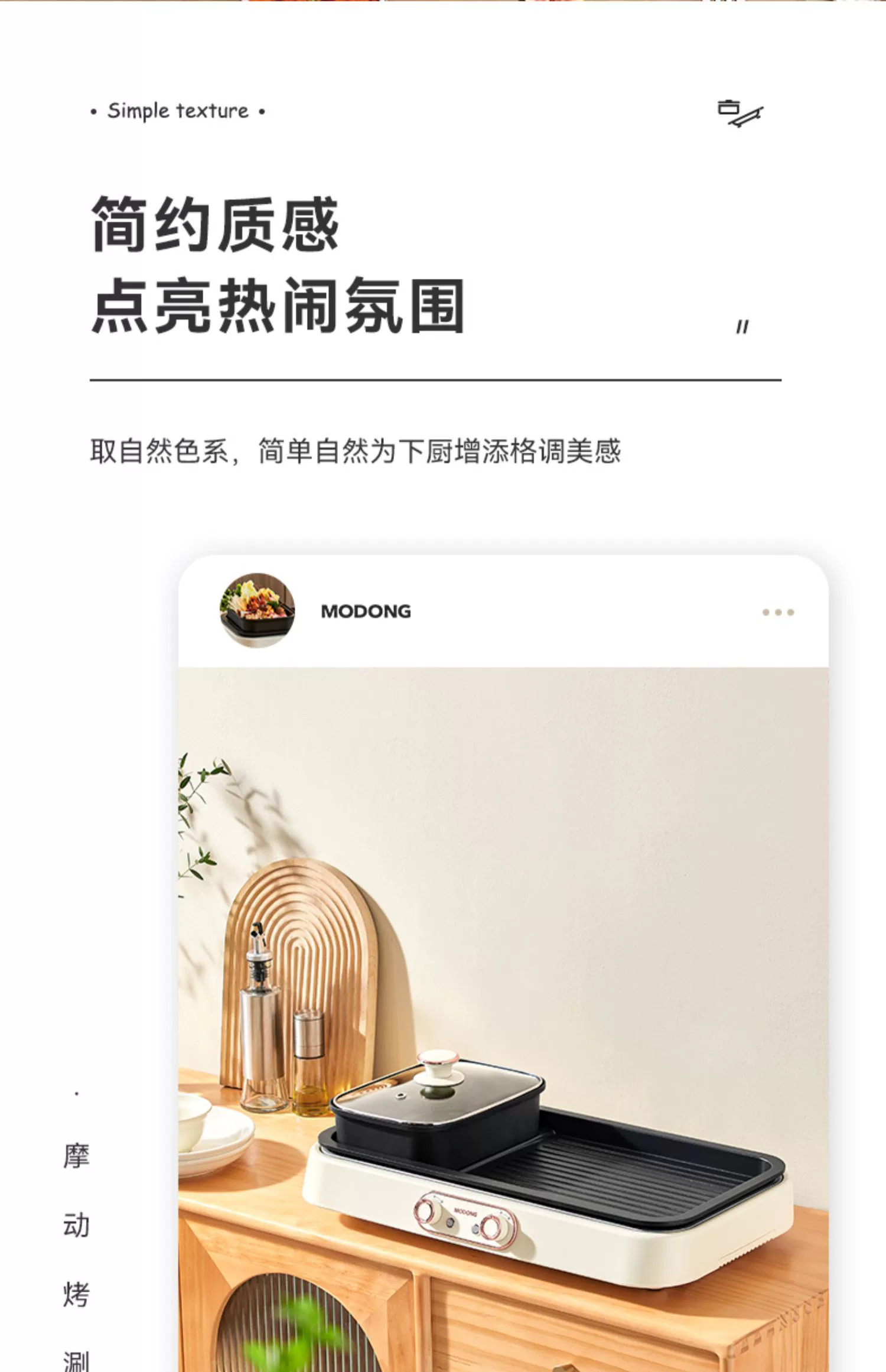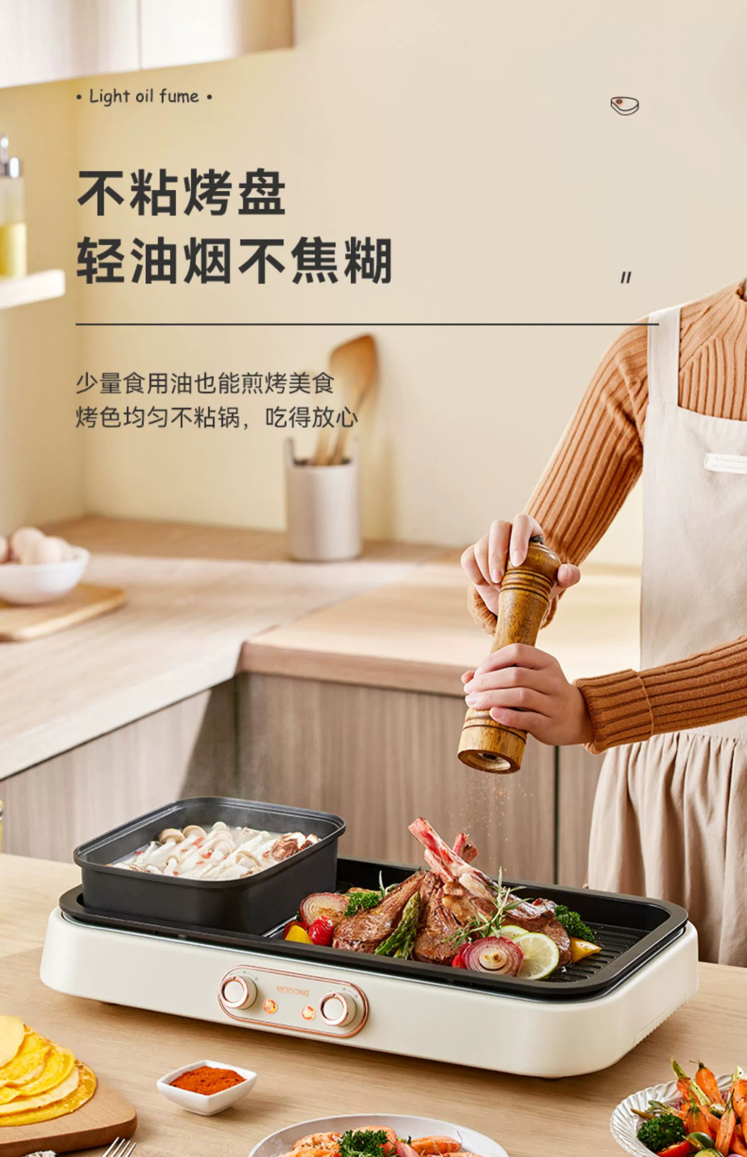 摩动电烧烤炉煎烤涮一体锅盘家用露营烤肉串火锅料理多功能烤肉锅