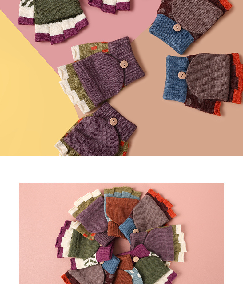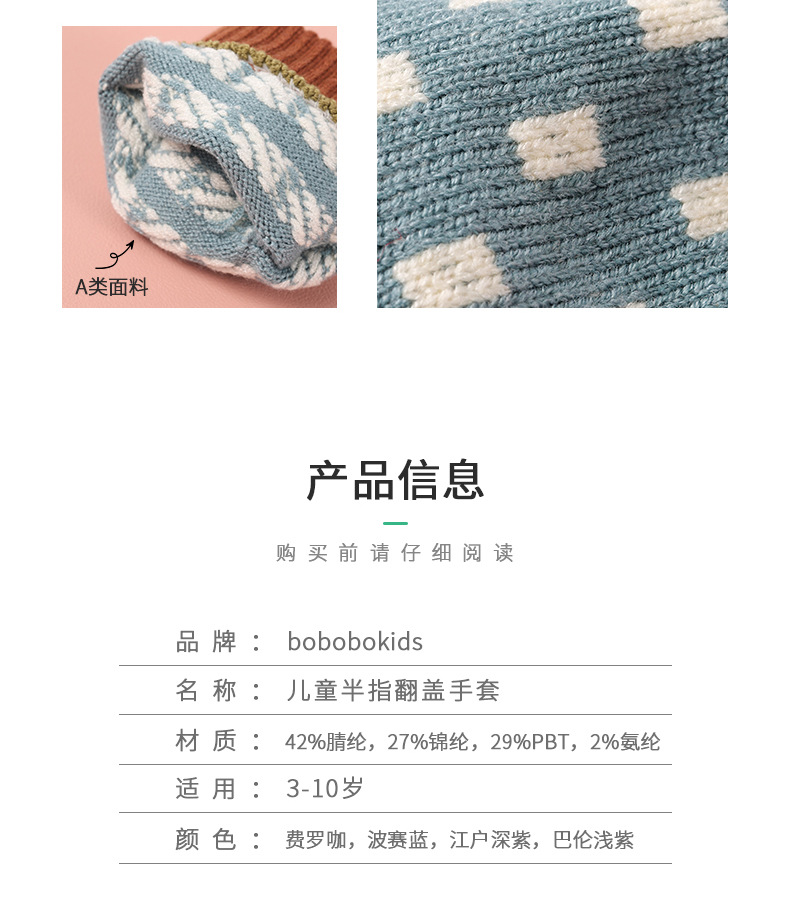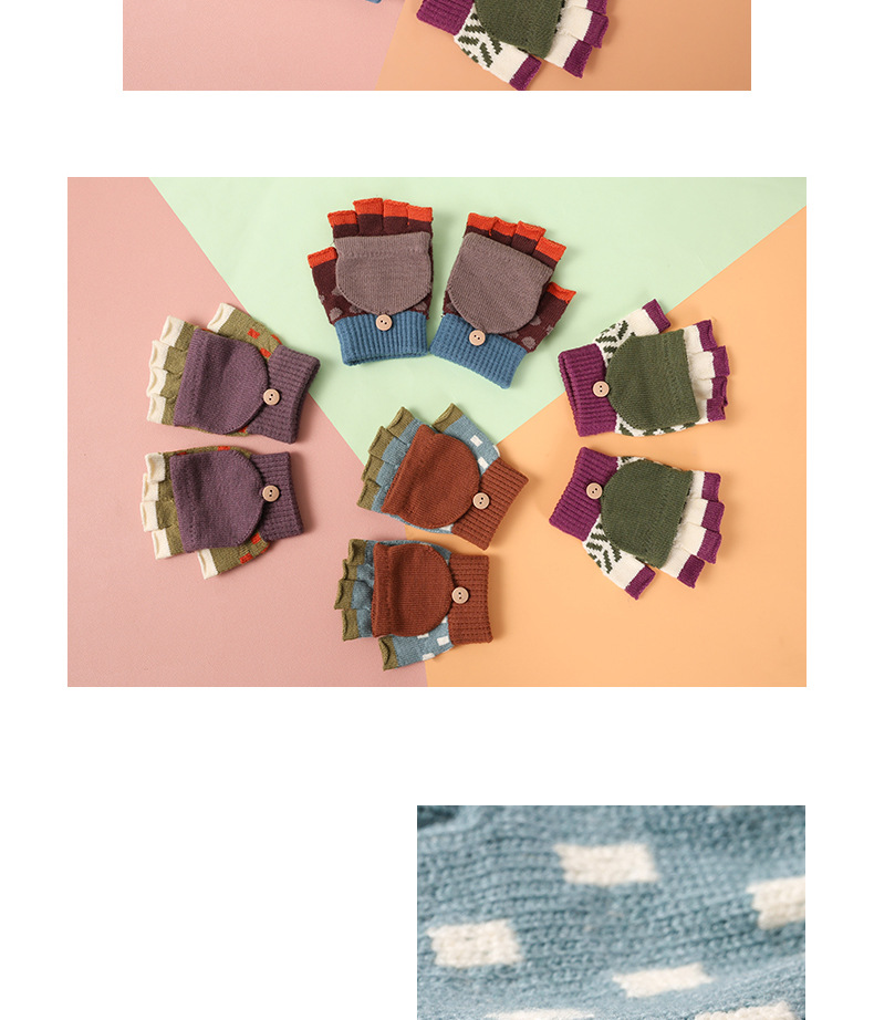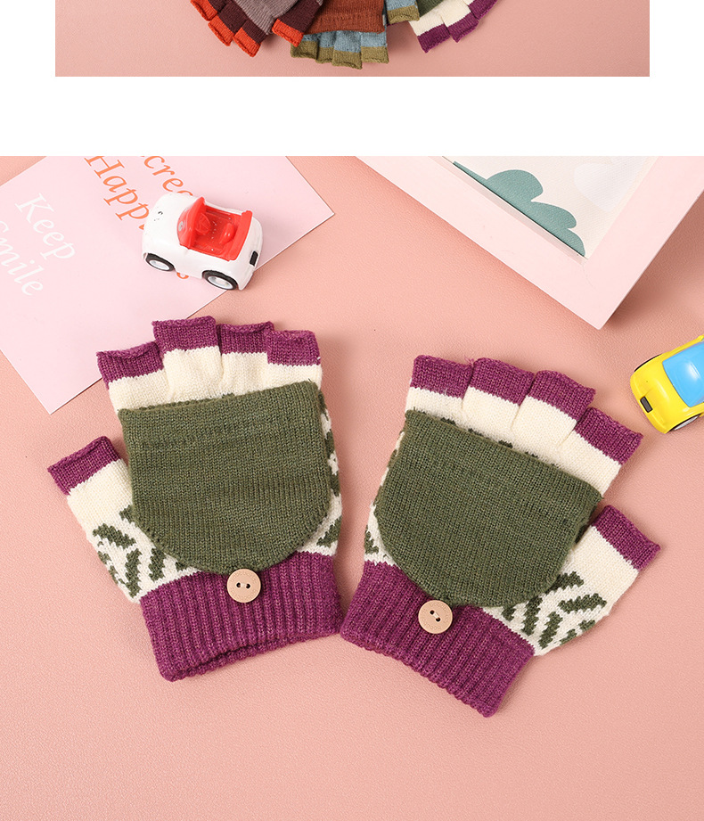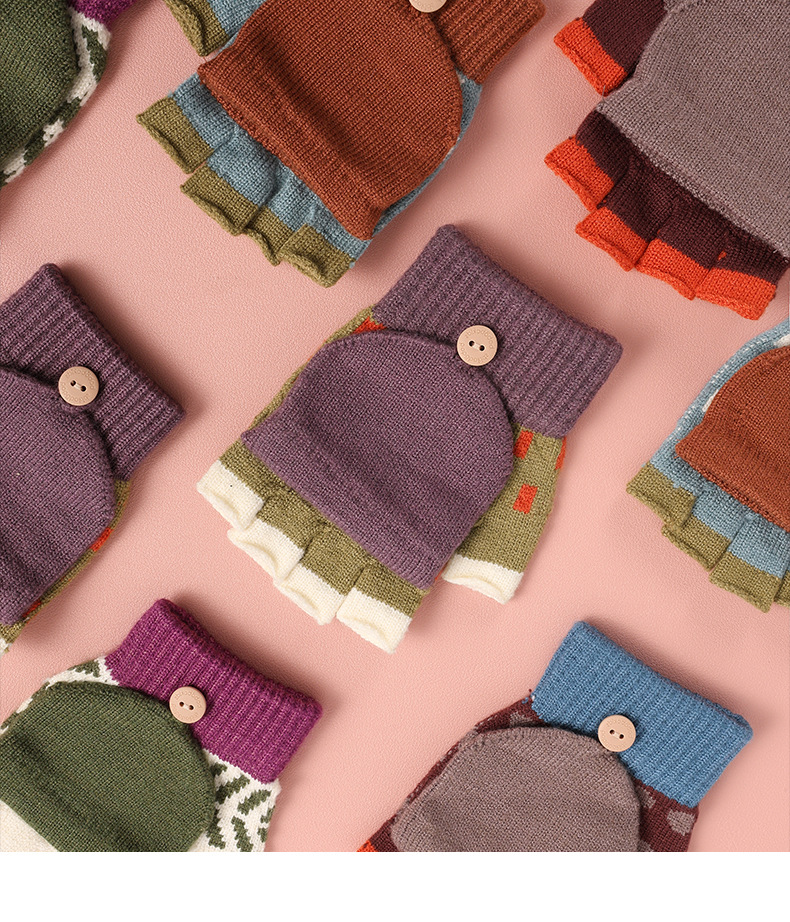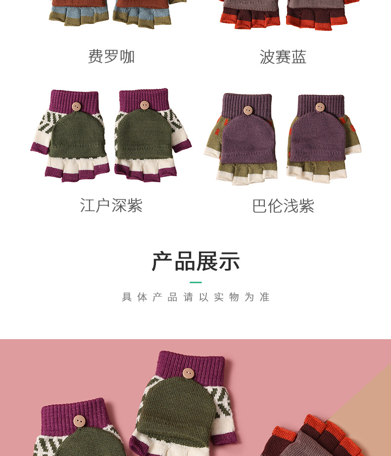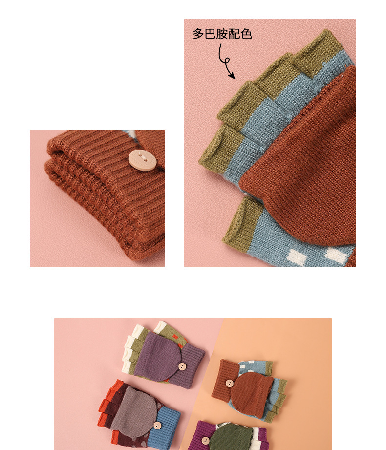 【特价!儿童半指翻盖两用手套】 3-10岁幼儿园小学生写字保暖手套 秋冬季保暖毛线针织