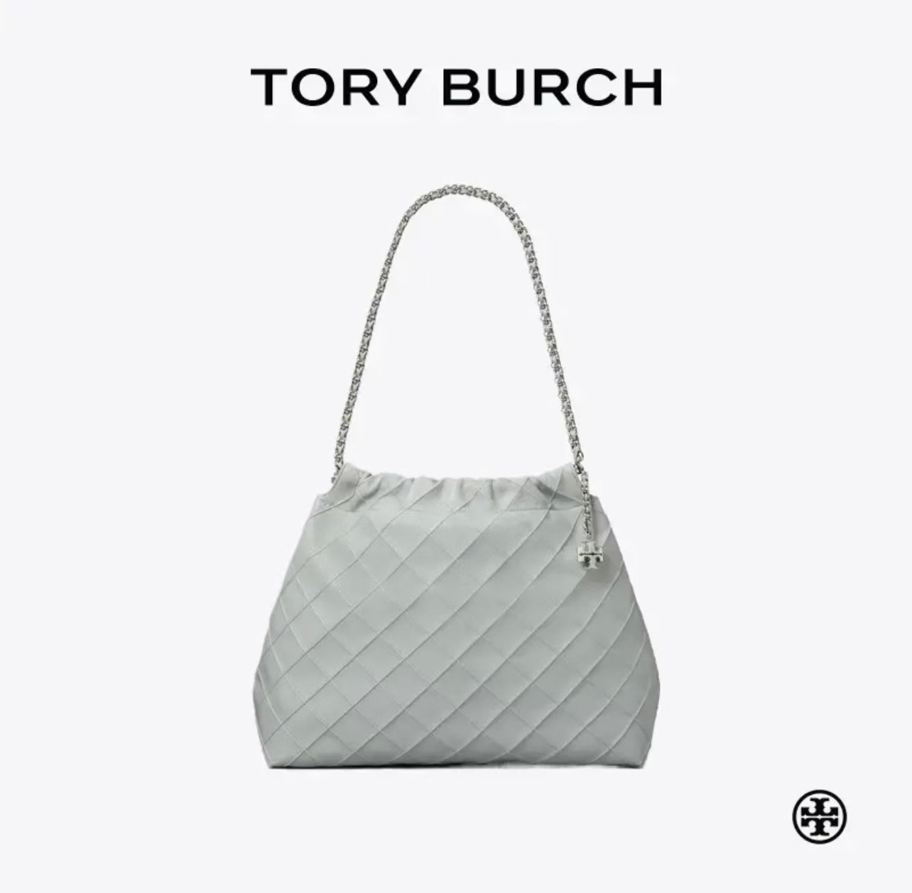 TORY BURCH 汤丽柏琦 FLEMING HOBO链条单肩包162450,魅力隽永。Fleming抽绳包,质地柔软,容量实用,融入菱格形褶饰,搭配编织链条背带,更显精致与时尚。