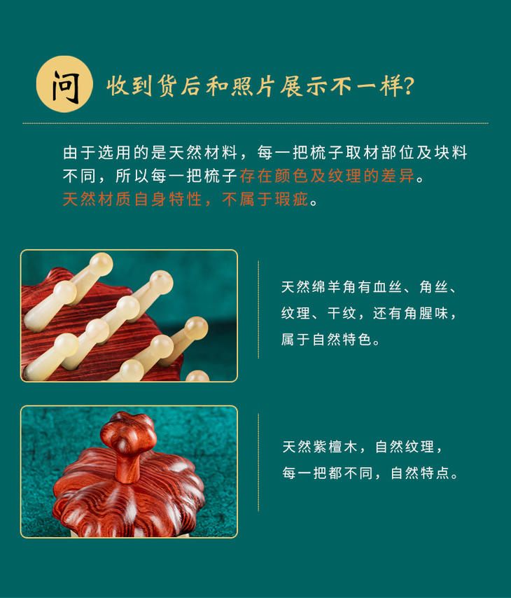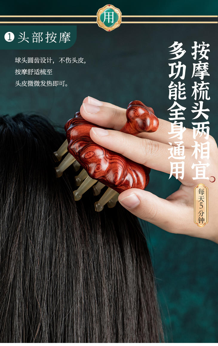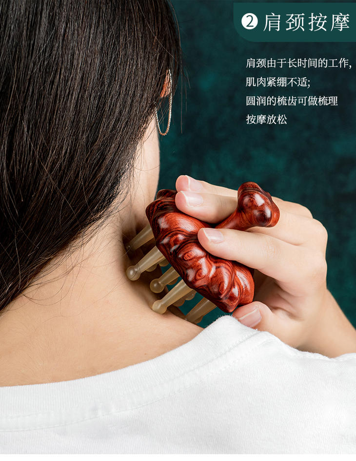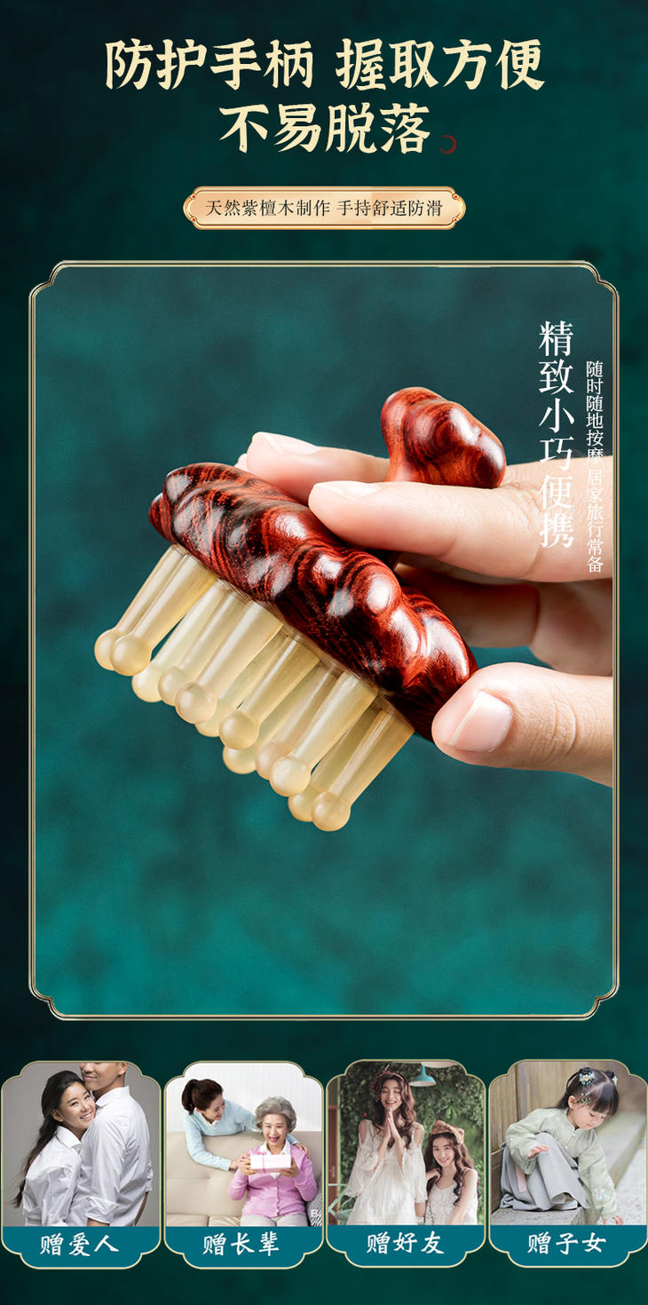 【常州非遗梳】紫檀木材质+绵羊角 经络按摩木 梳养发头疗