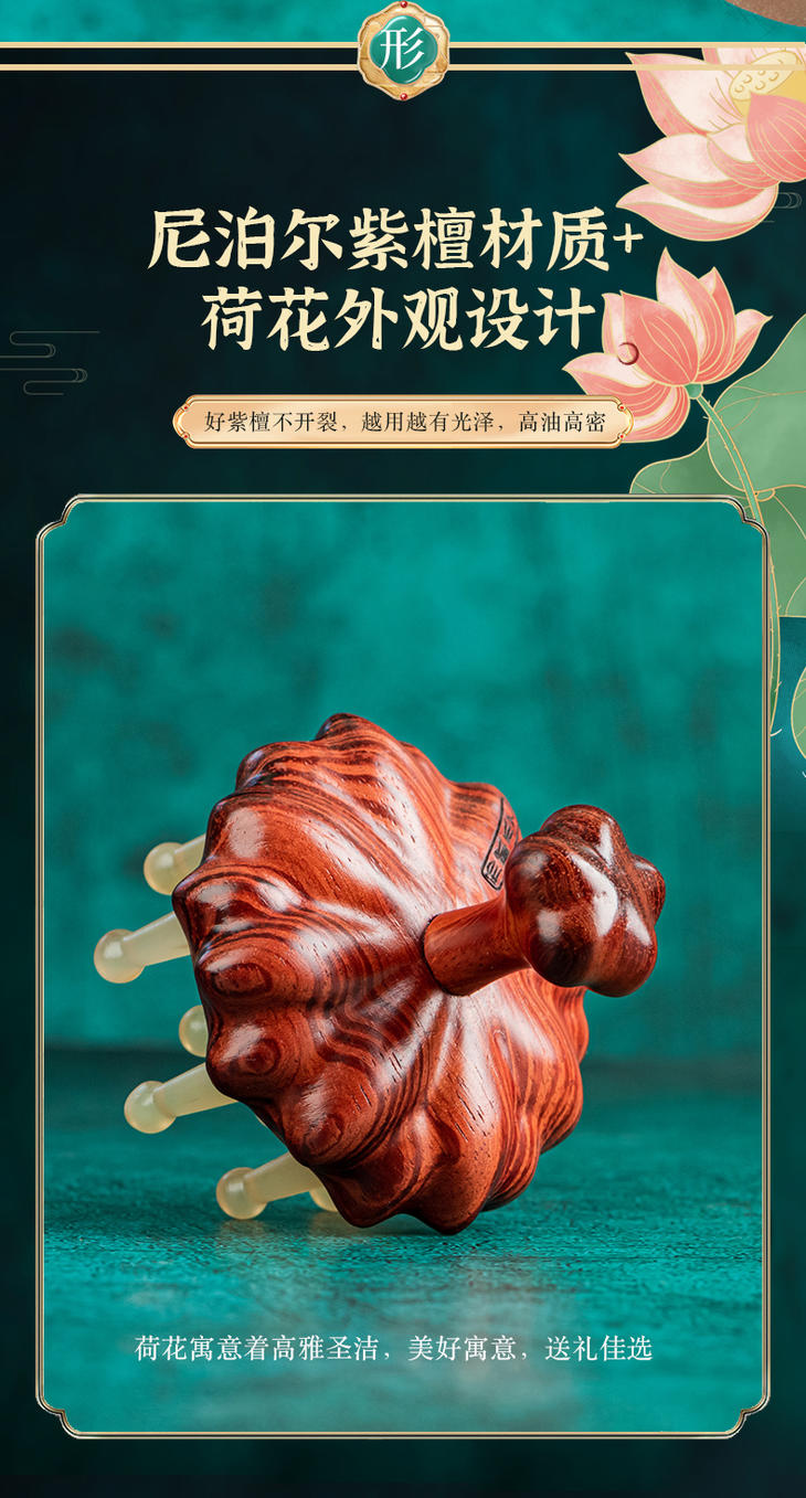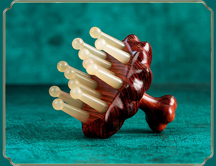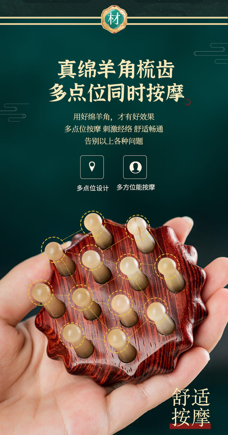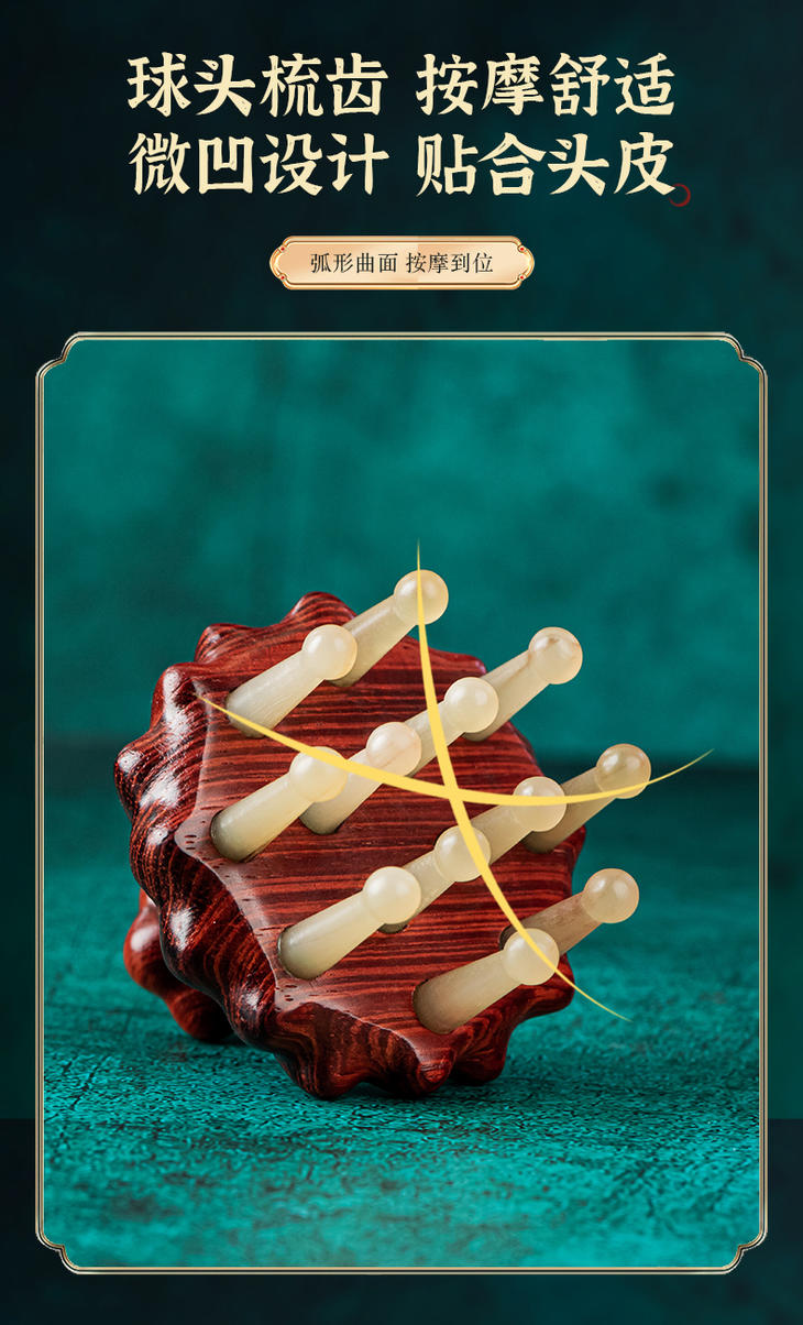 【常州非遗梳】紫檀木材质+绵羊角 经络按摩木 梳养发头疗