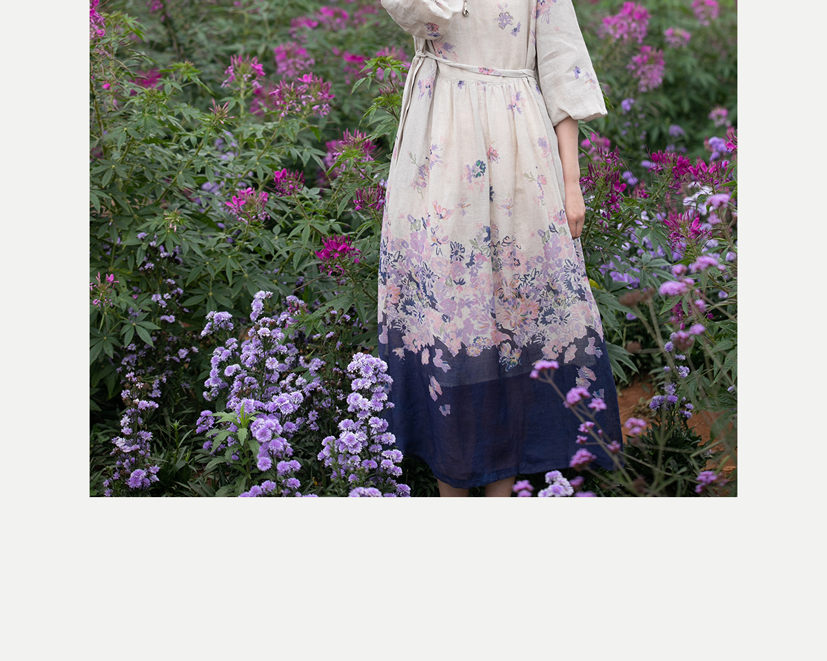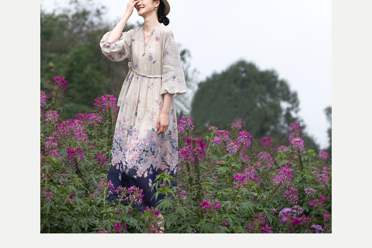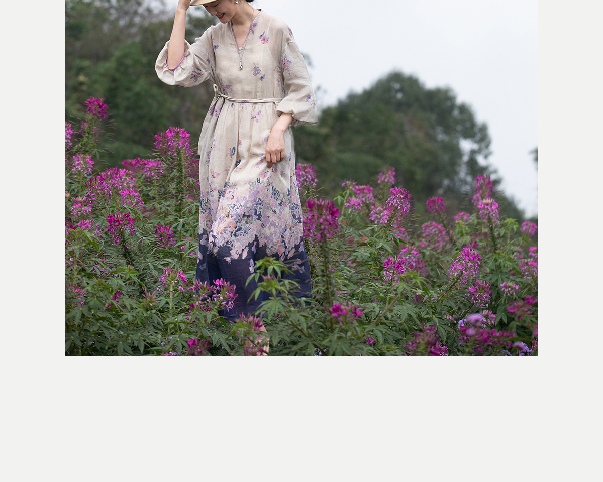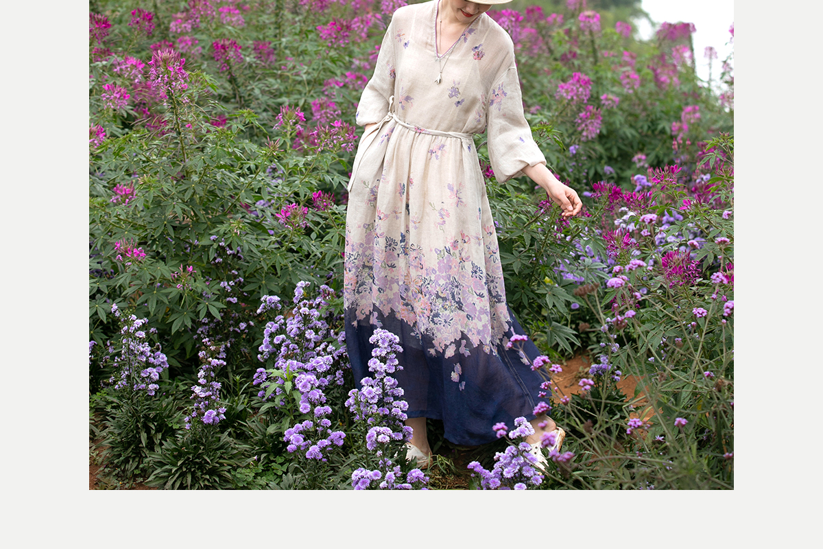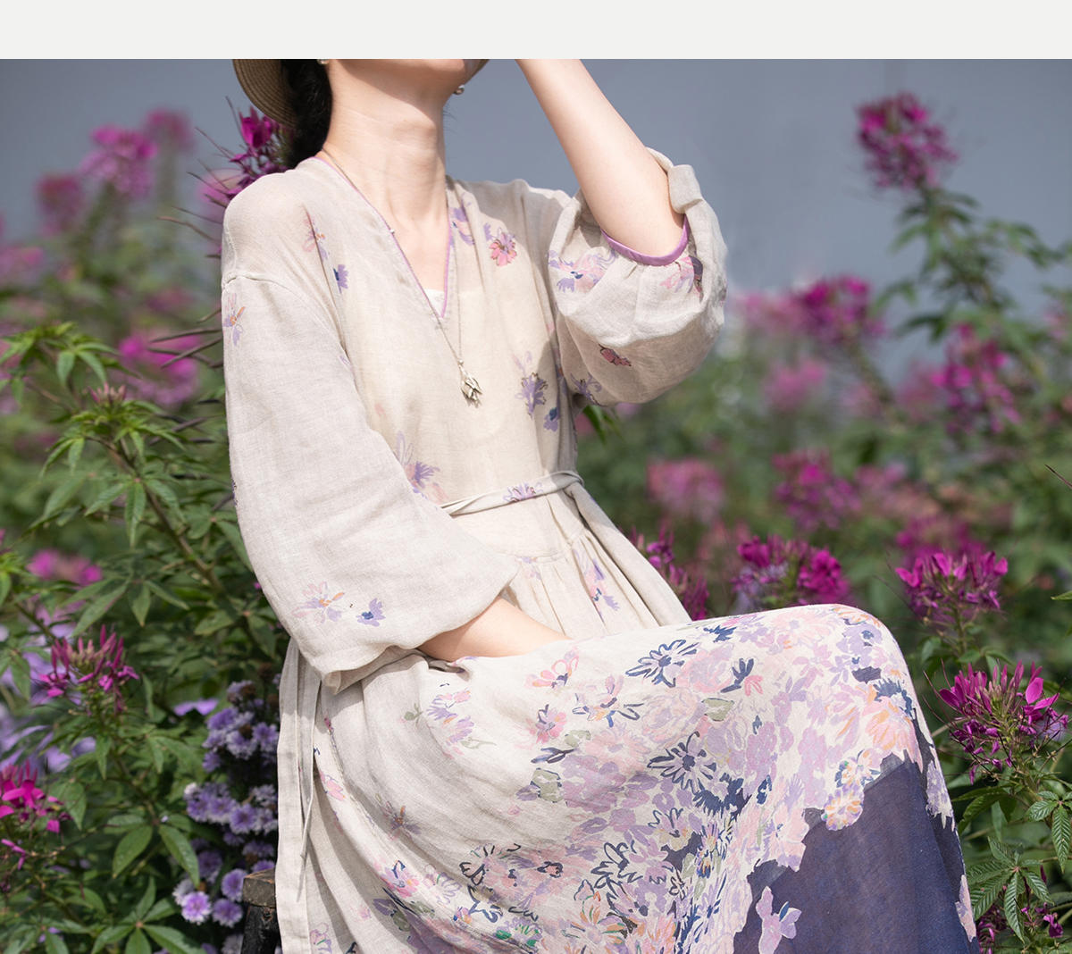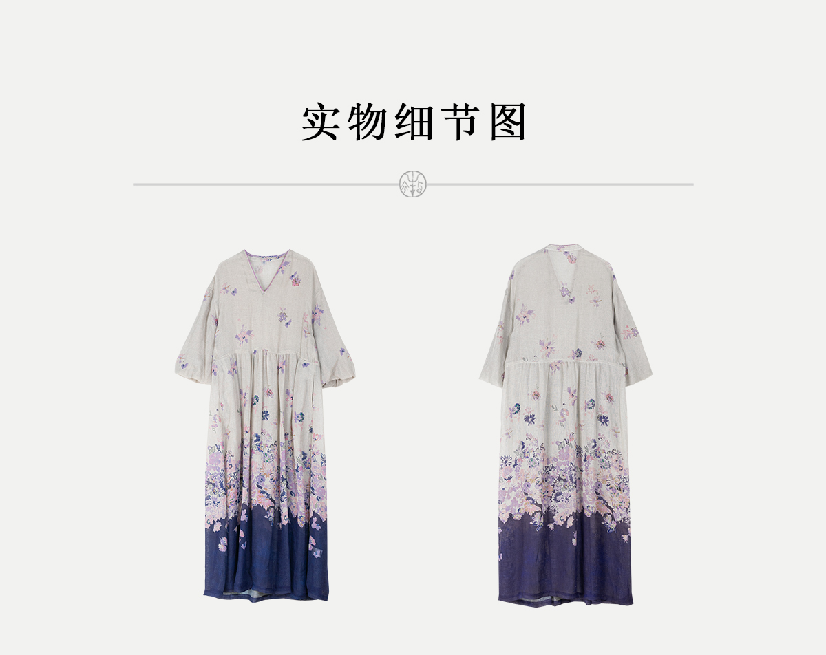 牧衣游原创 印花进口麻连衣裙女新款别致小众设计感长裙气质 树间