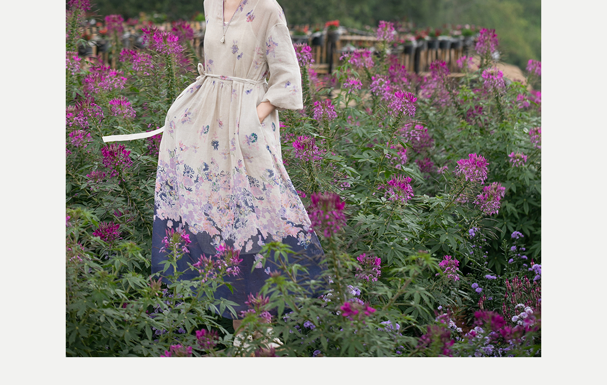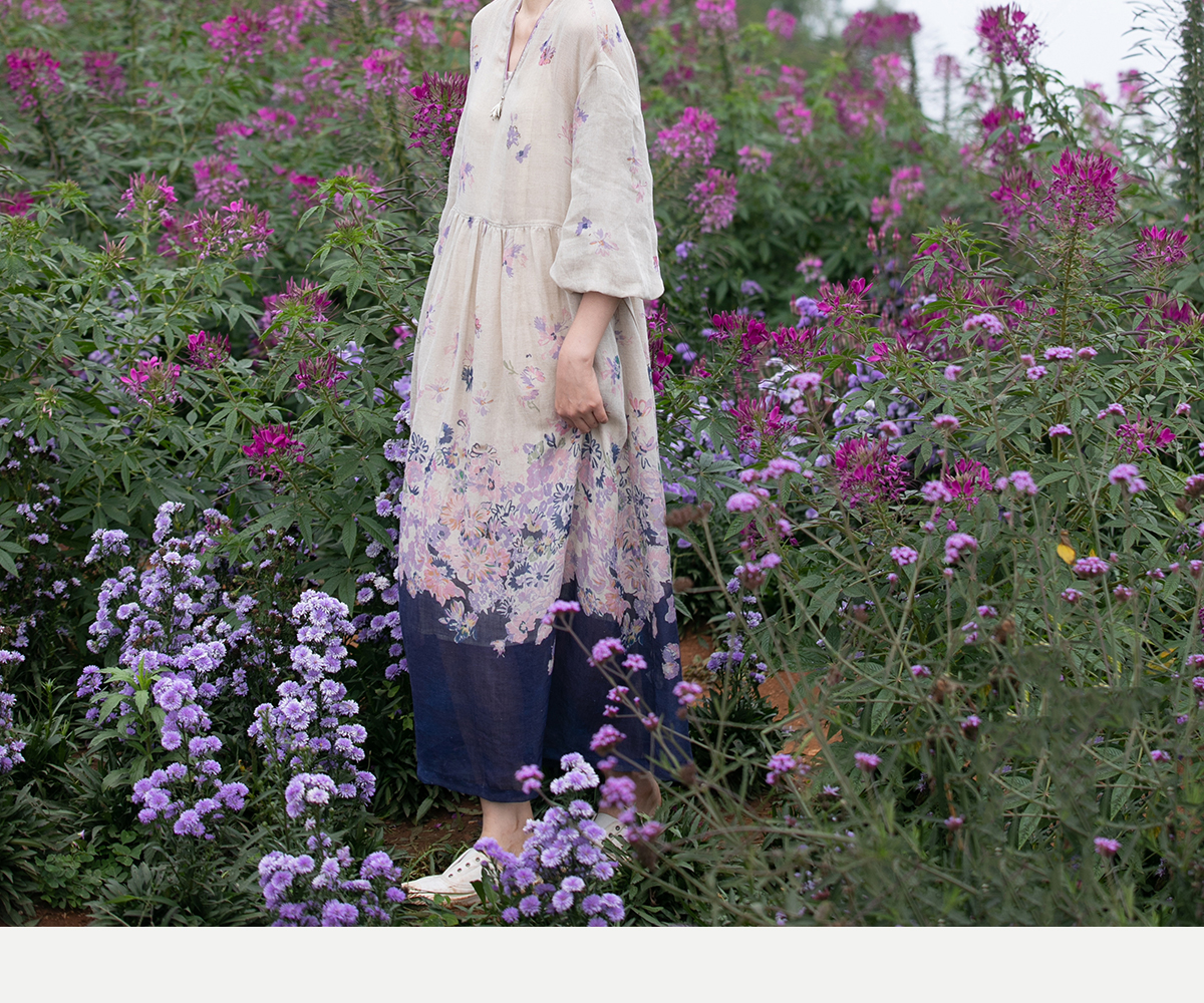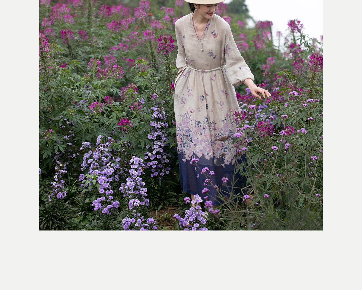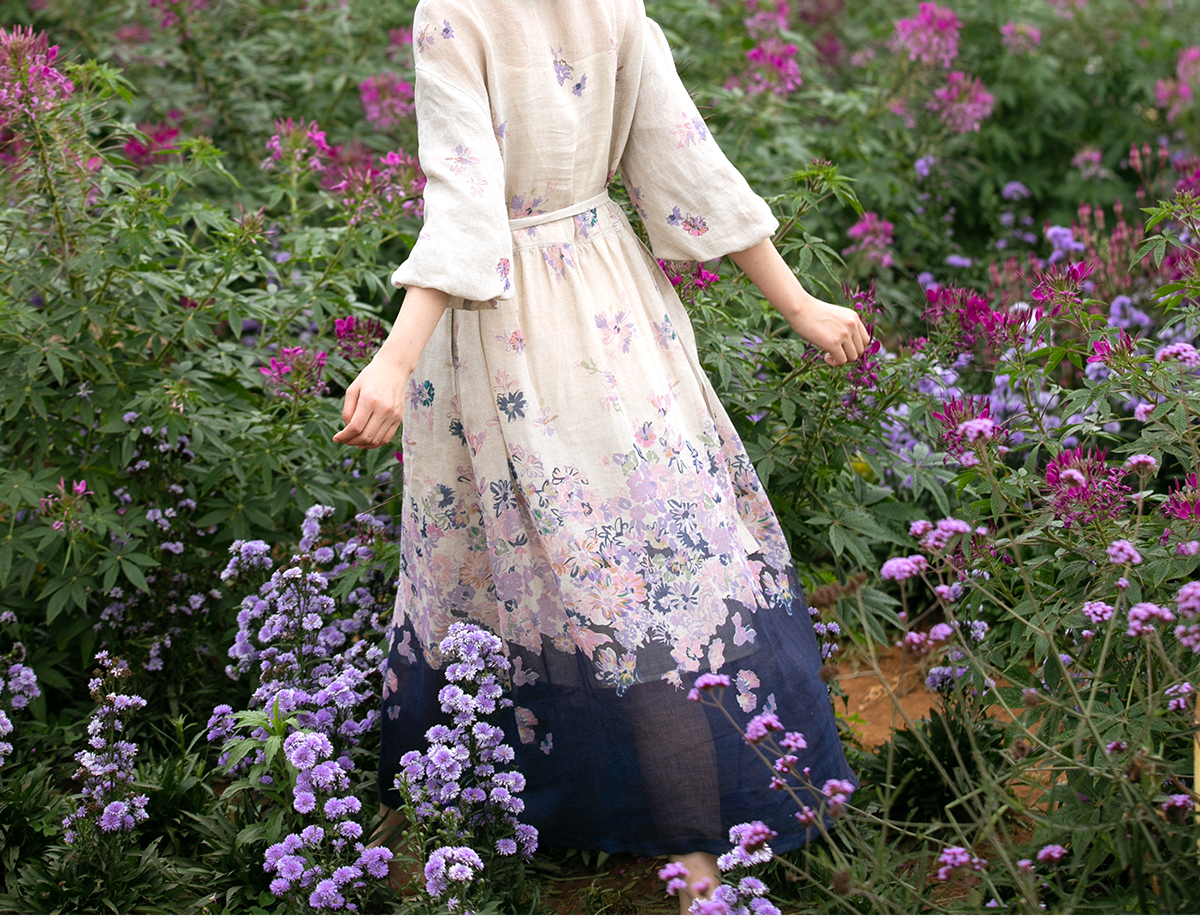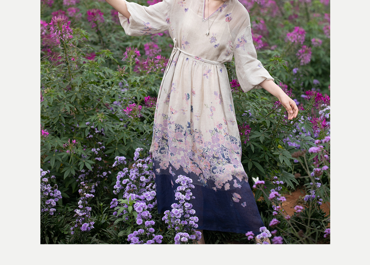牧衣游原创 印花进口麻连衣裙女新款别致小众设计感长裙气质 树间