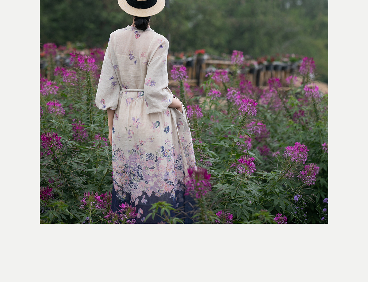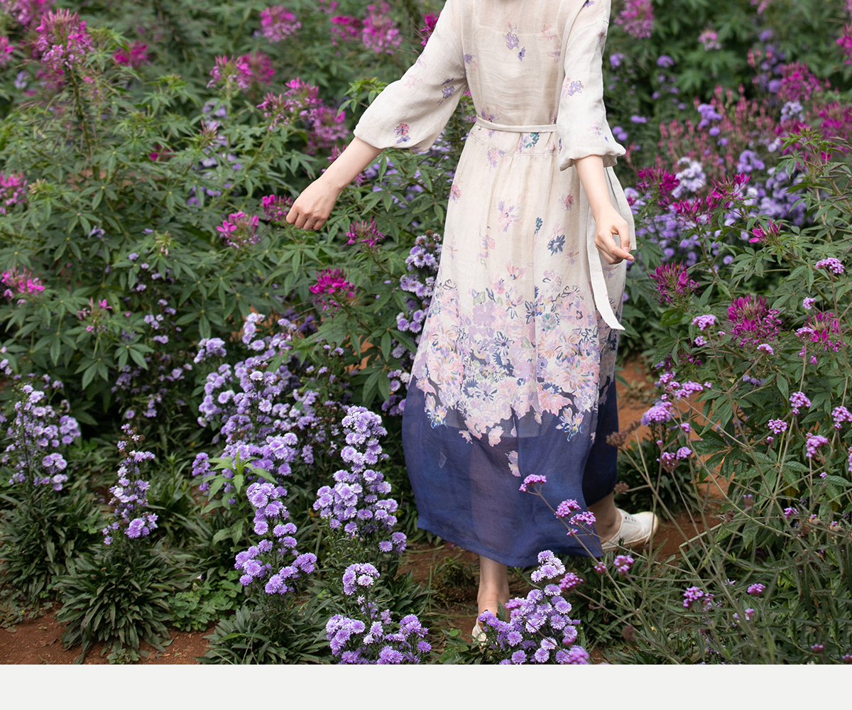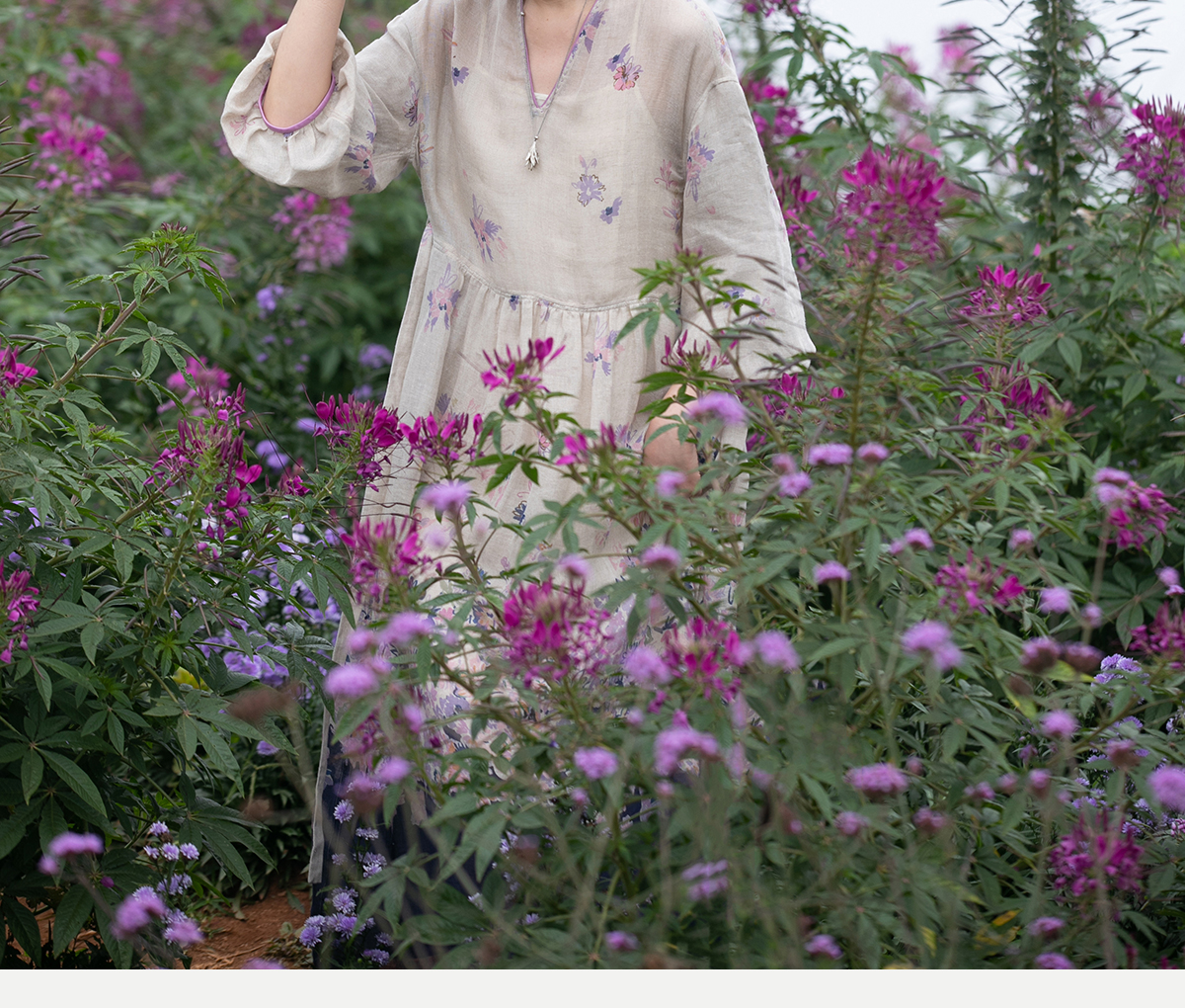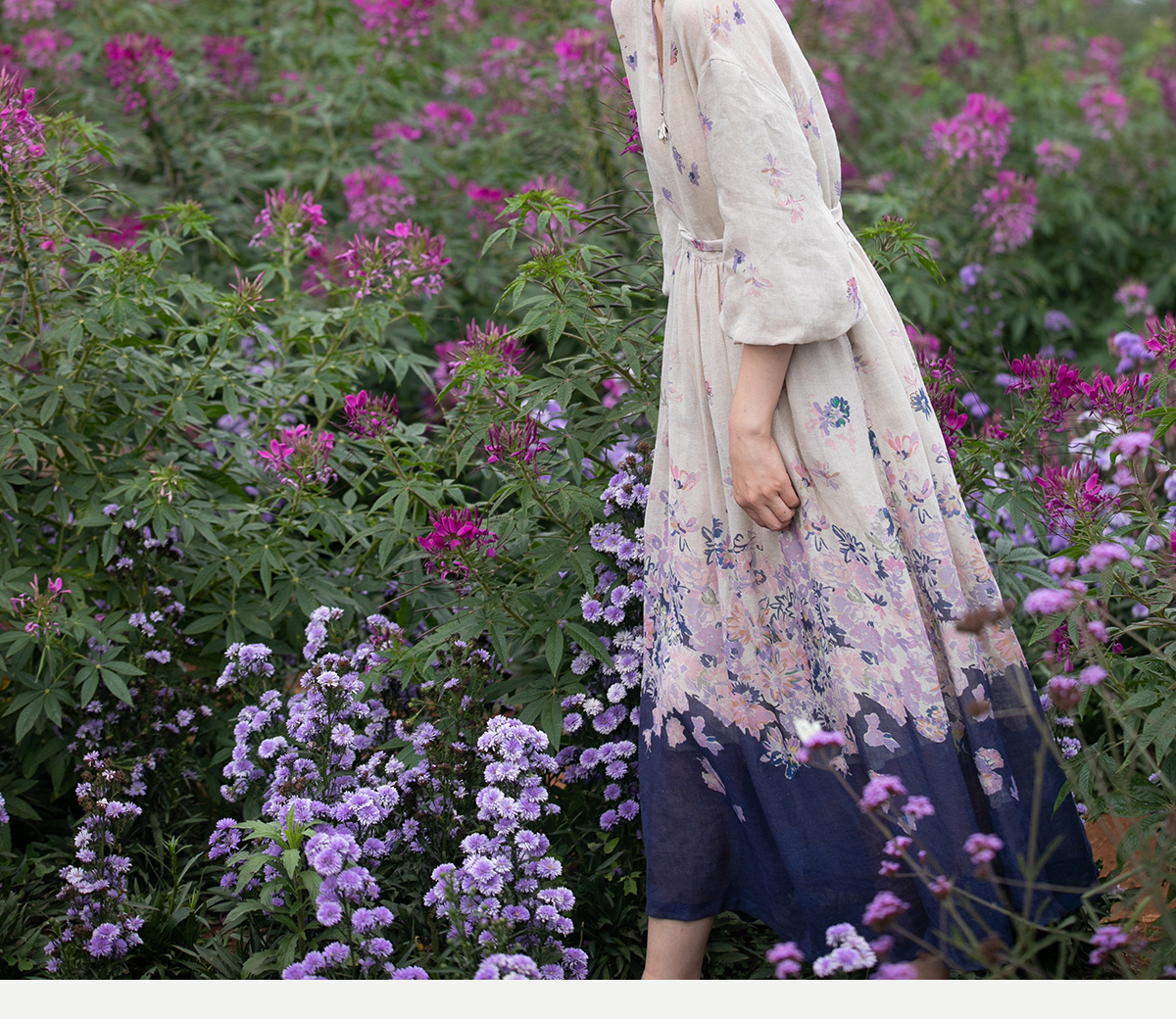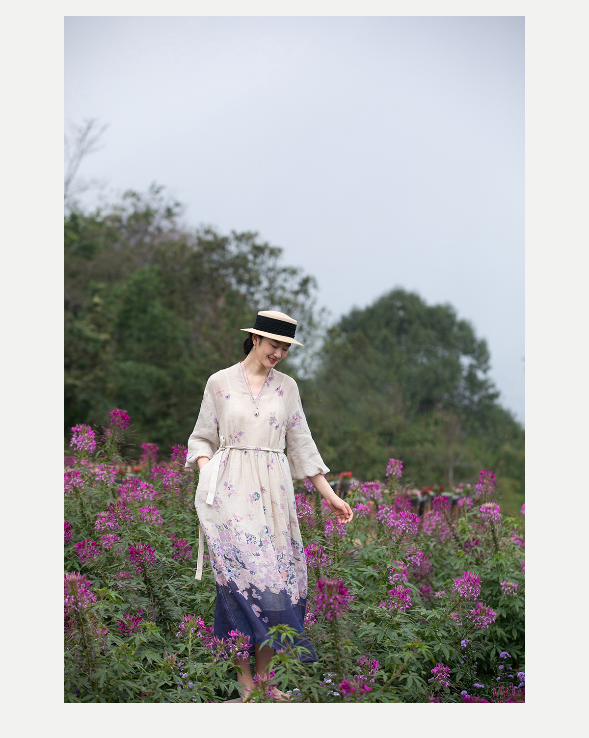 牧衣游原创 印花进口麻连衣裙女新款别致小众设计感长裙气质 树间