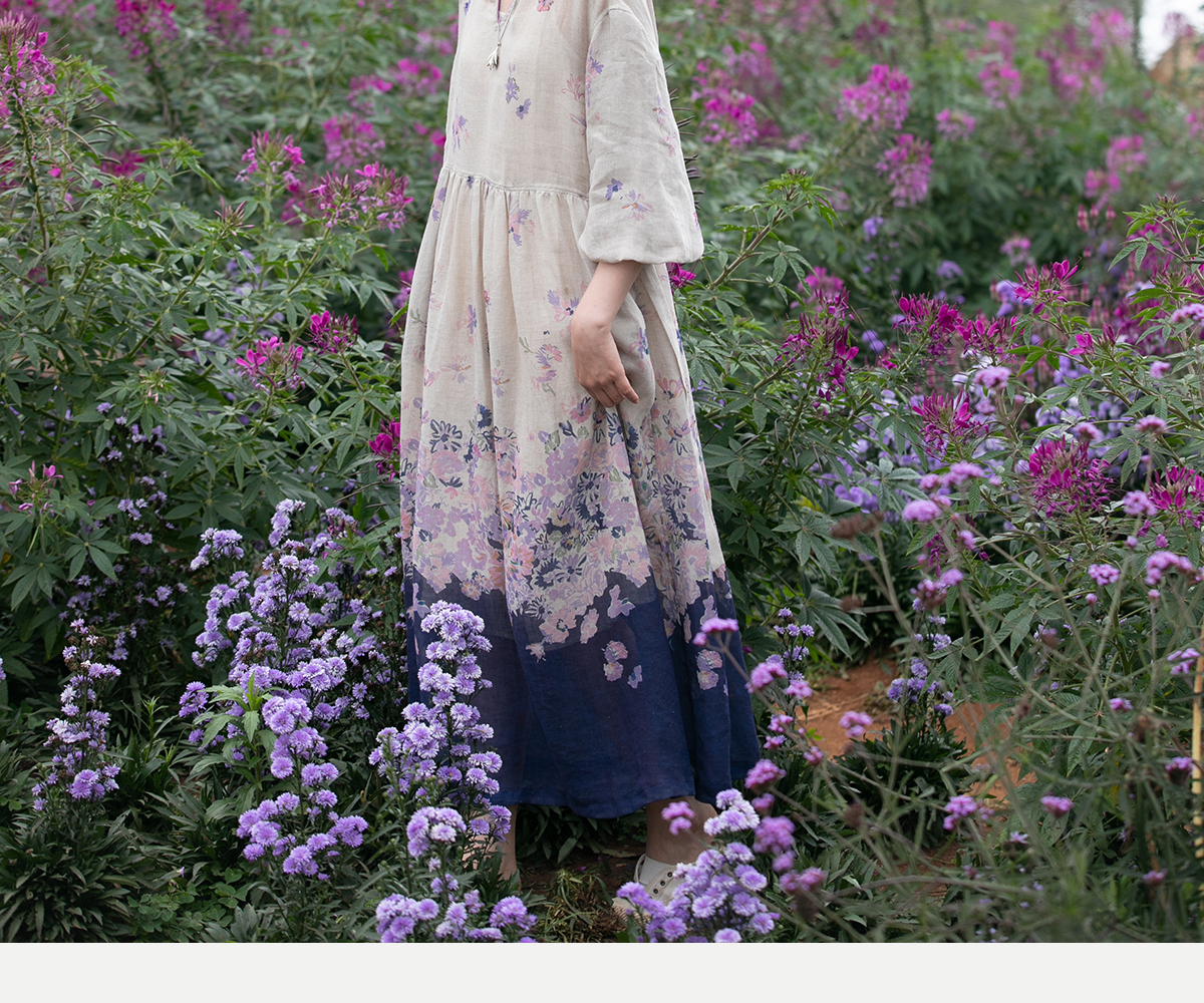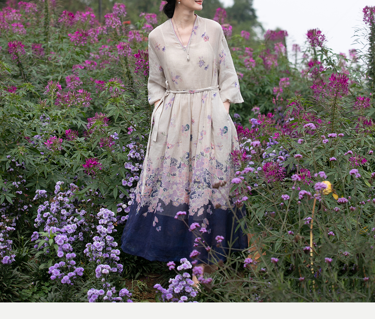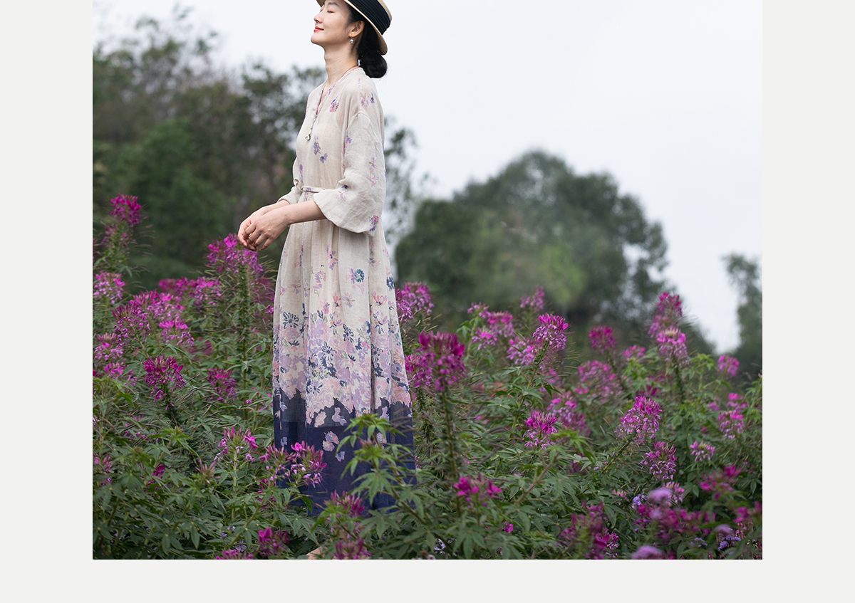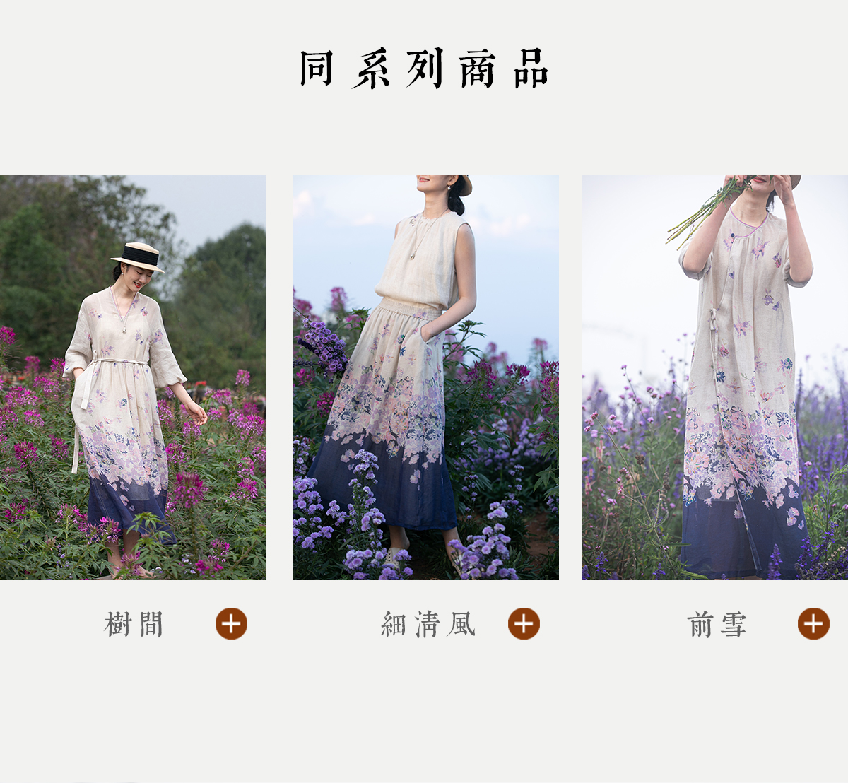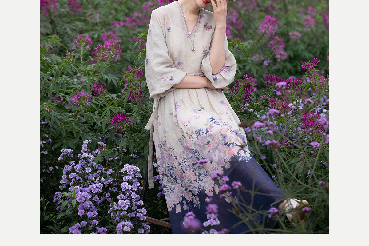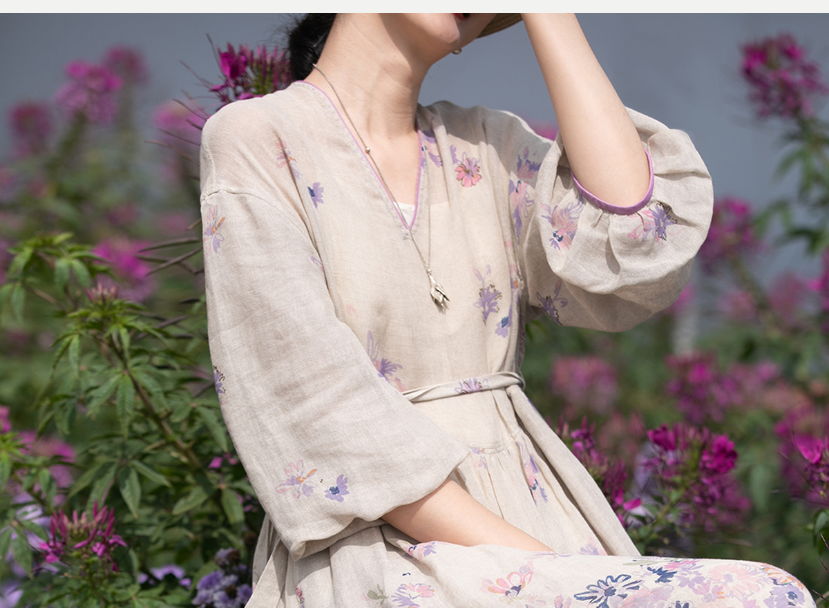 牧衣游原创 印花进口麻连衣裙女新款别致小众设计感长裙气质 树间