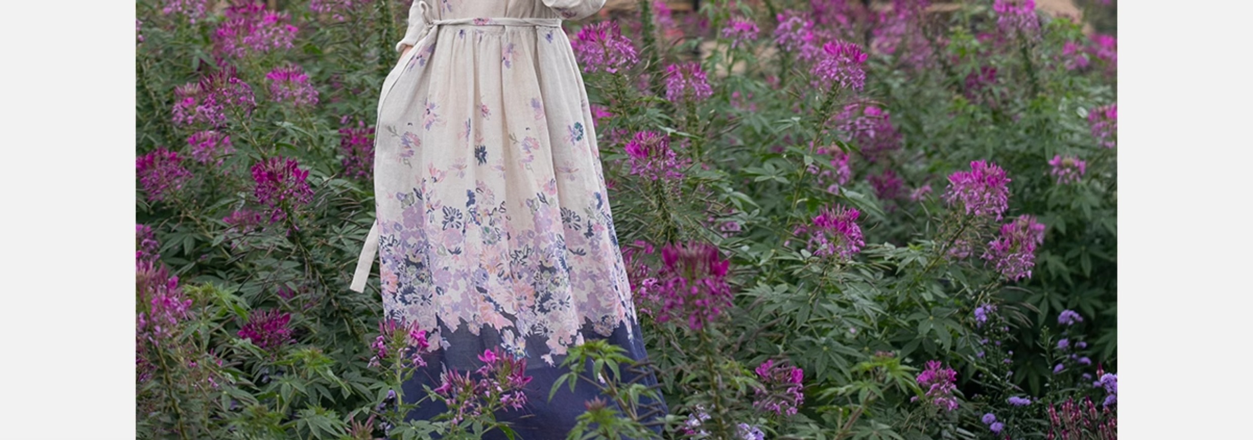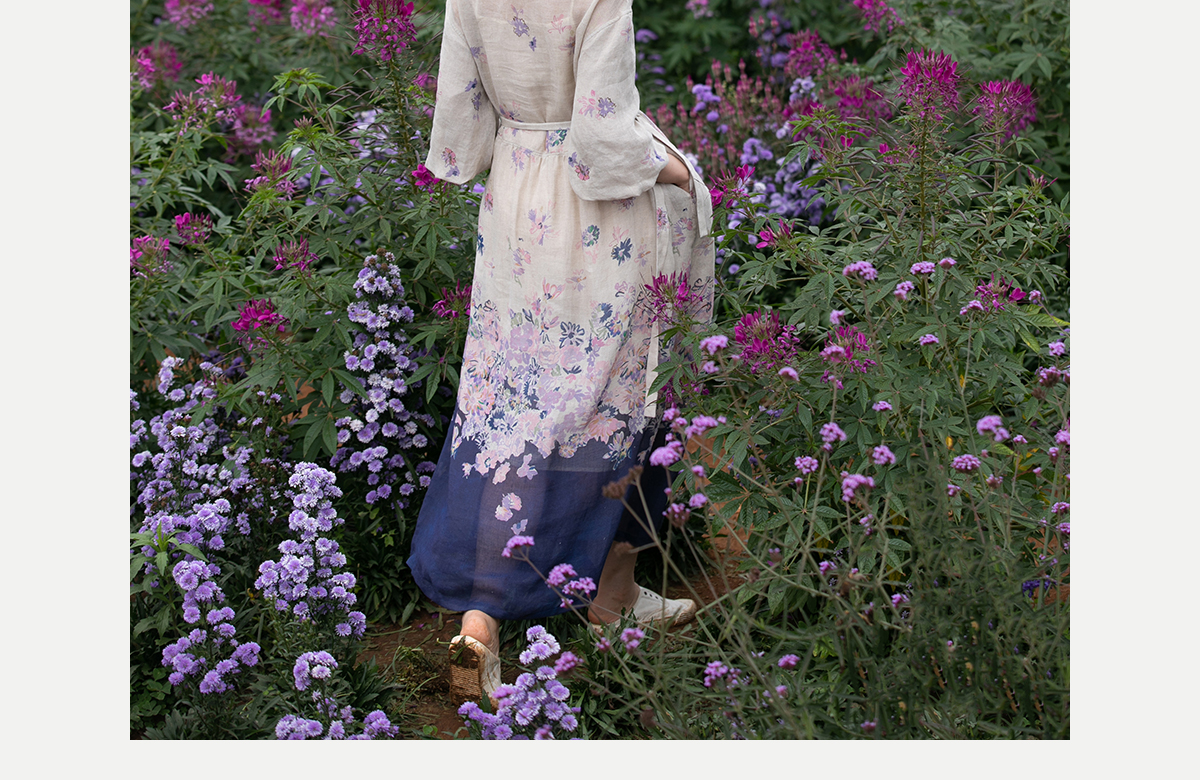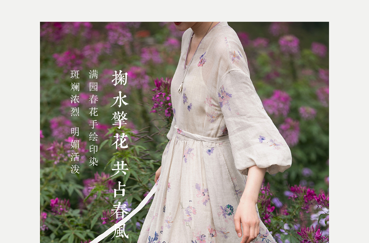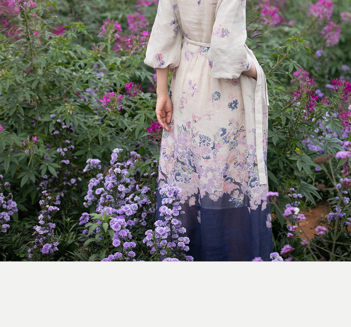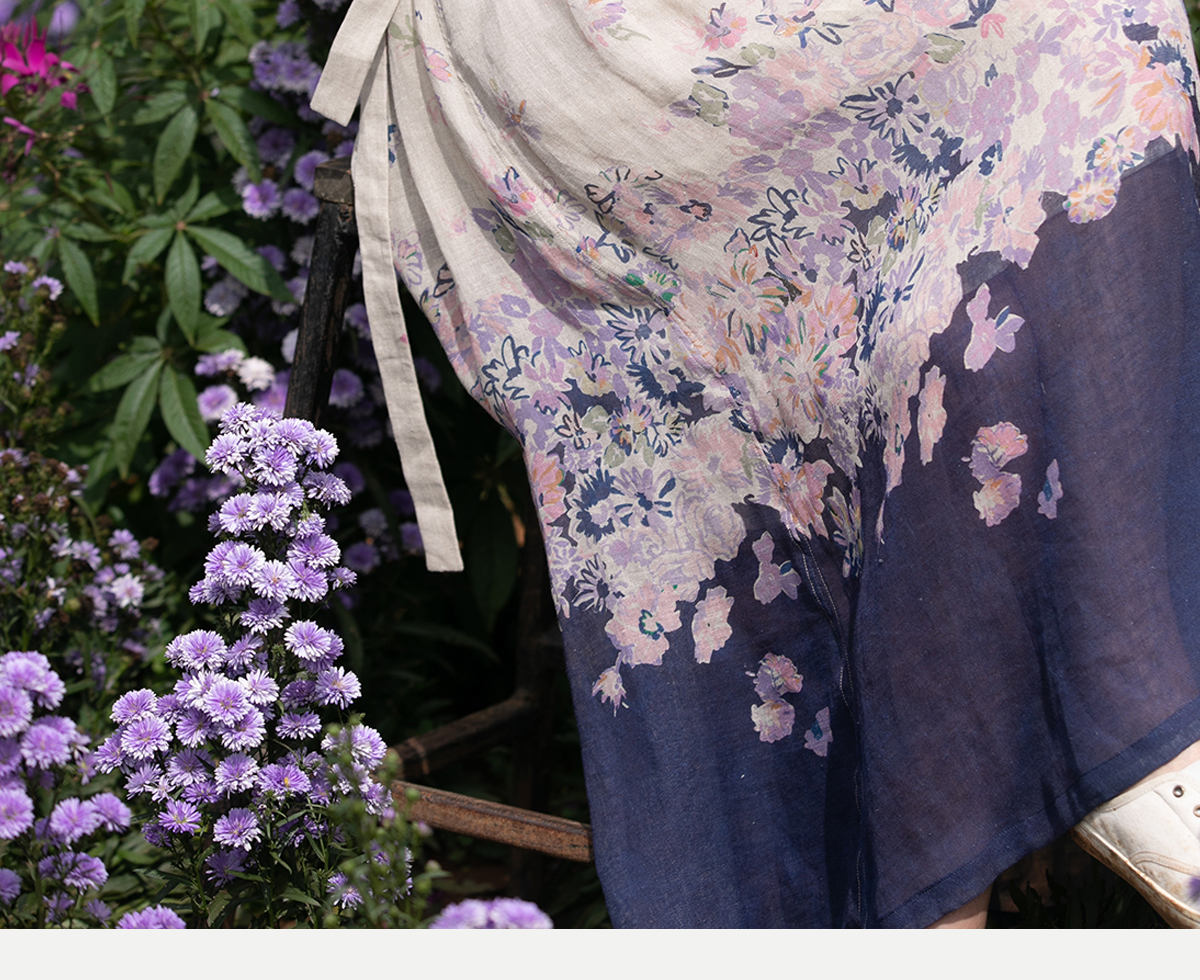 牧衣游原创 印花进口麻连衣裙女新款别致小众设计感长裙气质 树间