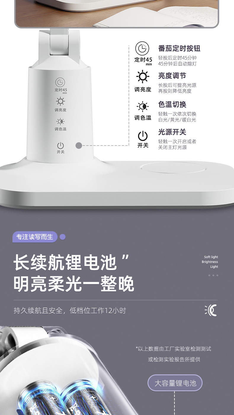 【led折叠台灯】学生学习护眼专用阅读灯 宿舍充电床头灯卧室定时夜灯