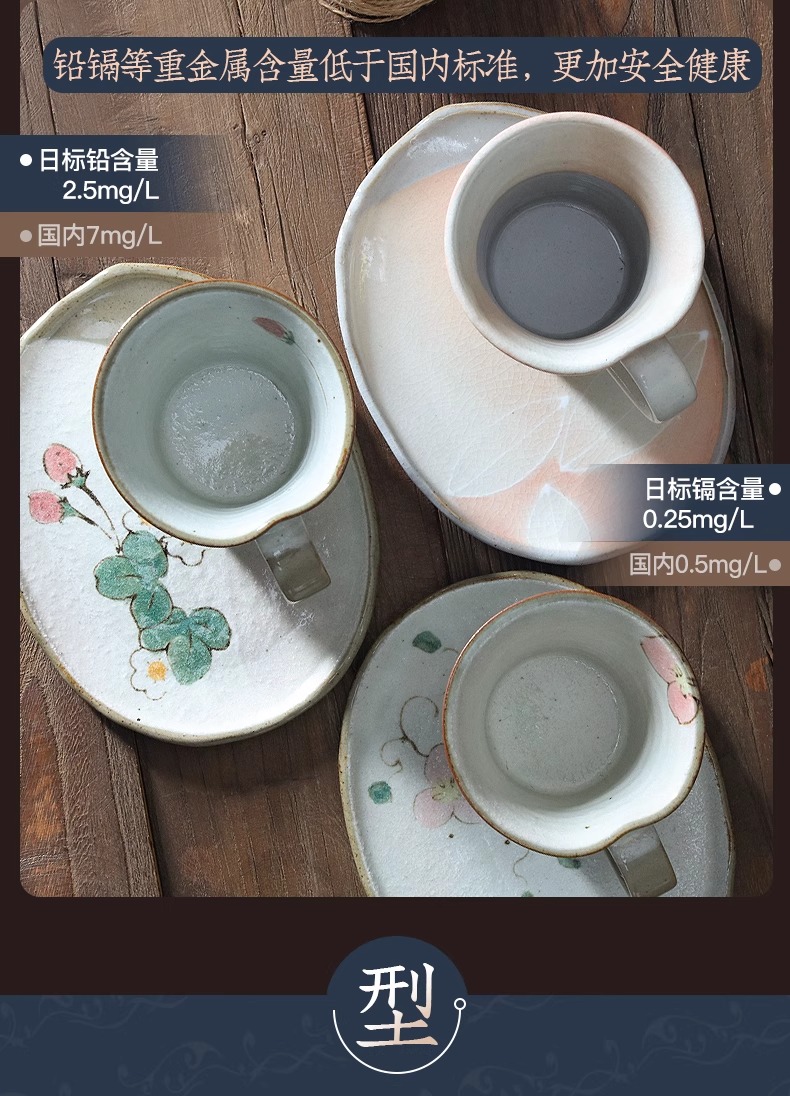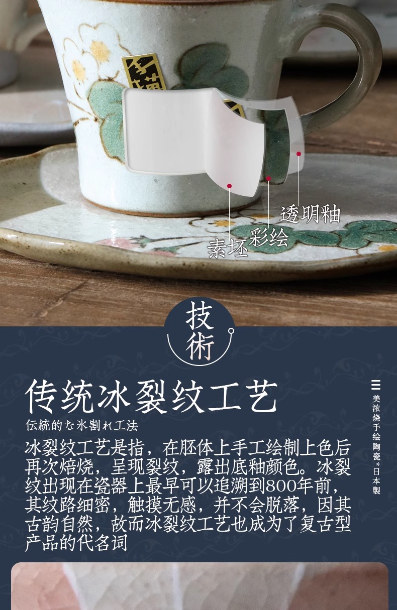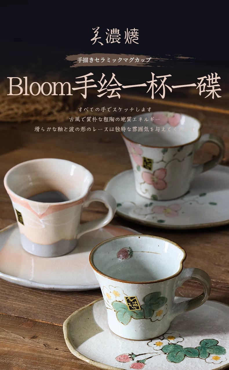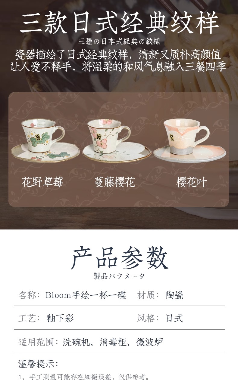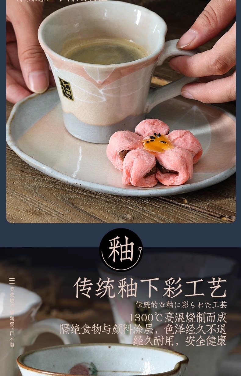 日本进口手绘陶瓷咖啡杯樱花日式复古带碟茶杯水杯美浓烧藤曼花粉引手绘杯碟