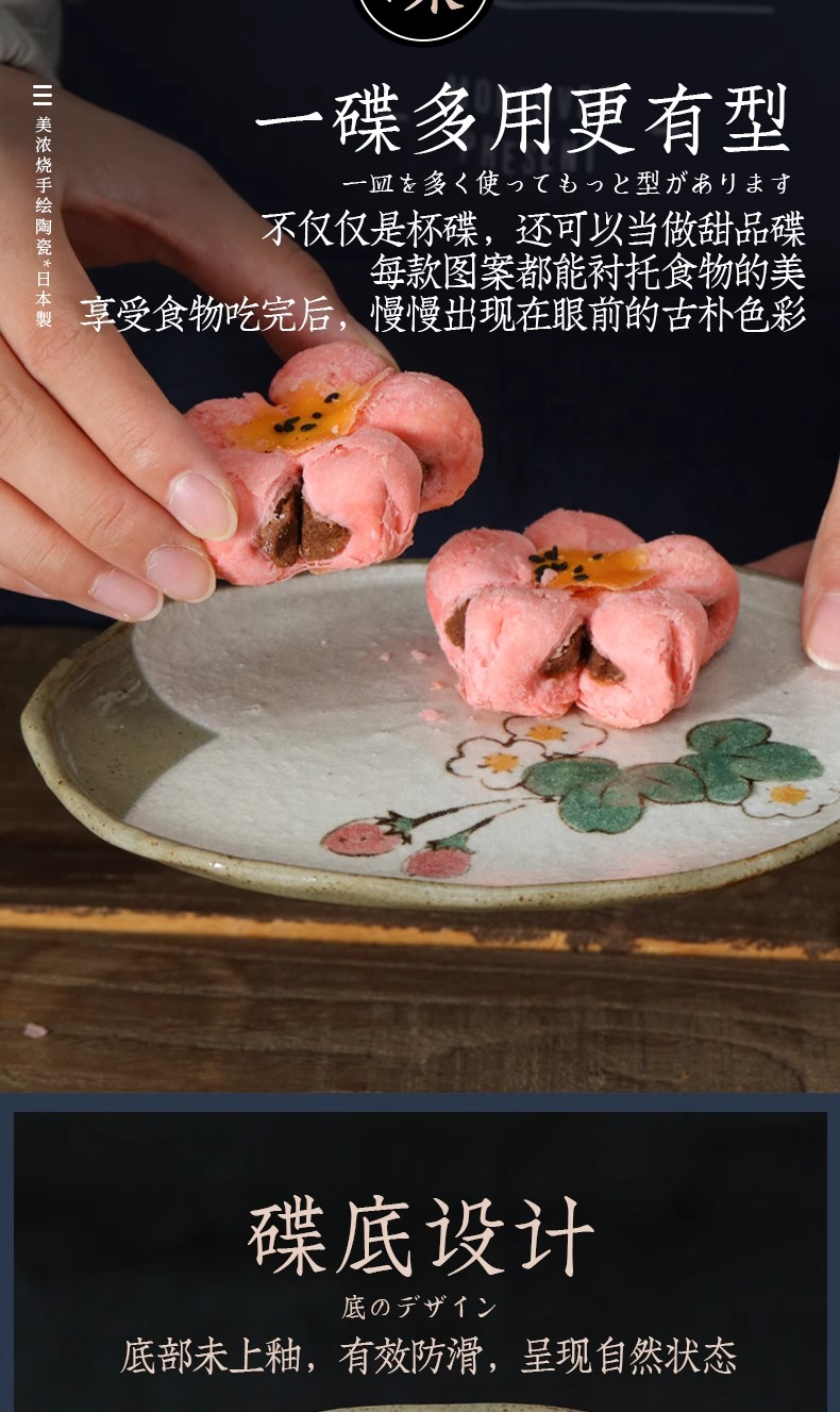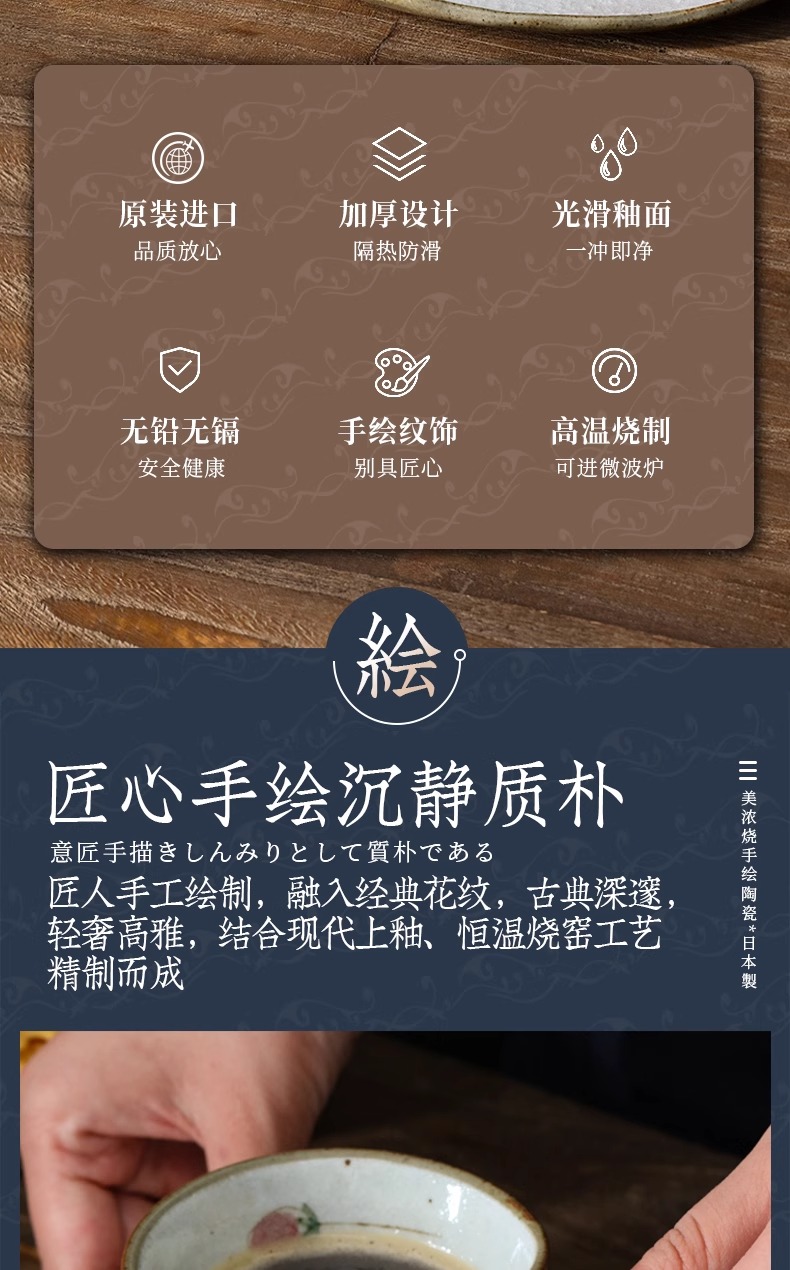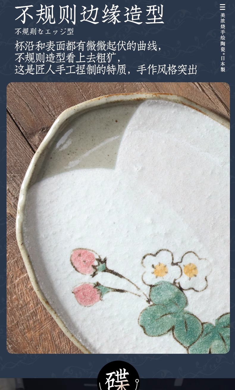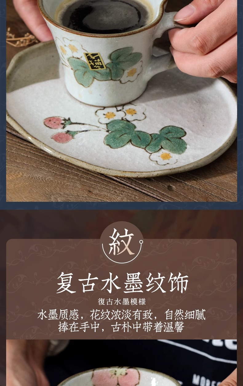 日本进口手绘陶瓷咖啡杯樱花日式复古带碟茶杯水杯美浓烧藤曼花粉引手绘杯碟