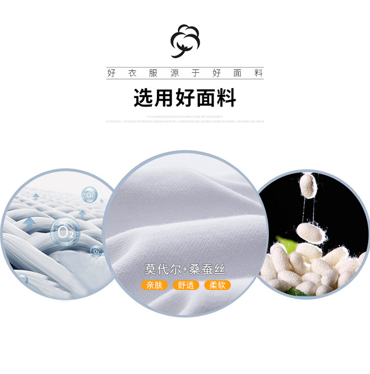 面料:41.7%聚酯纤维 27.1%莫代尔 26.2%棉 5.0%桑蚕丝