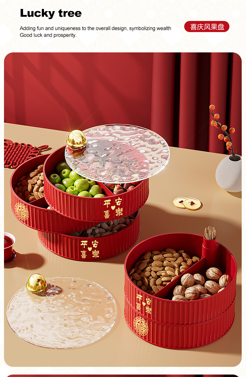 新年糖果盘 干果盒 家用客厅茶几零食摆放盘瓜子收纳盒 元旦圣诞轻奢果盘
